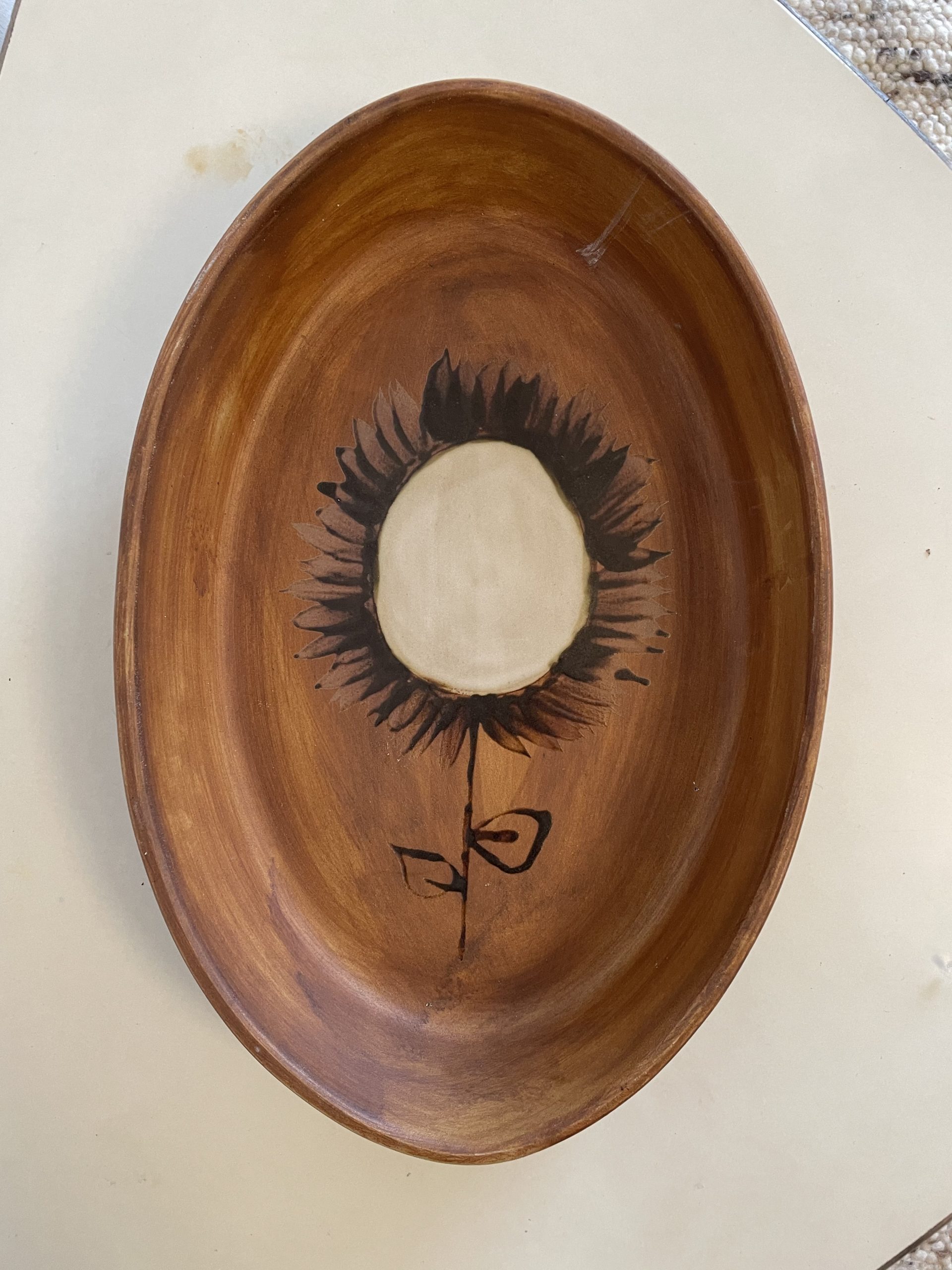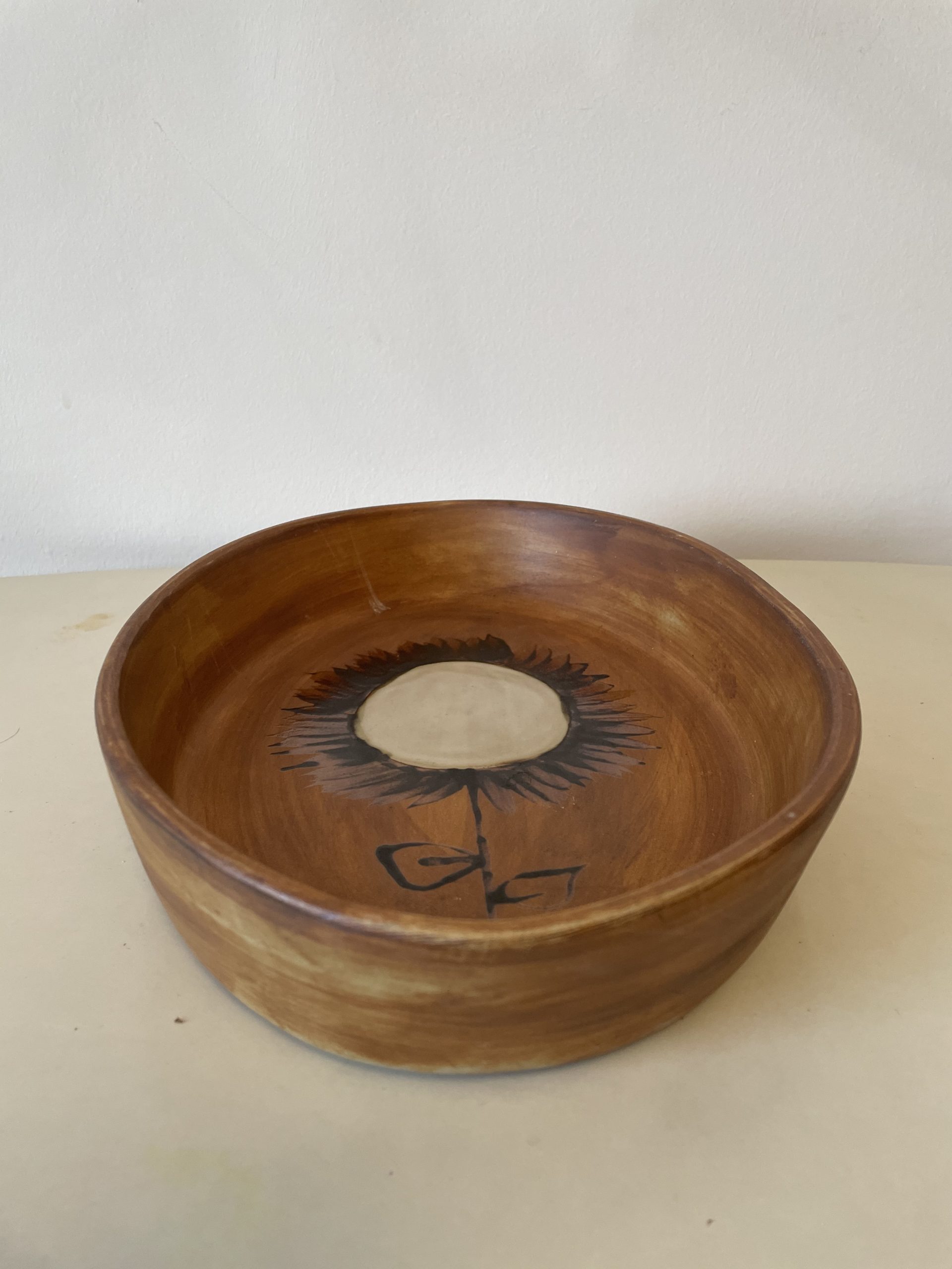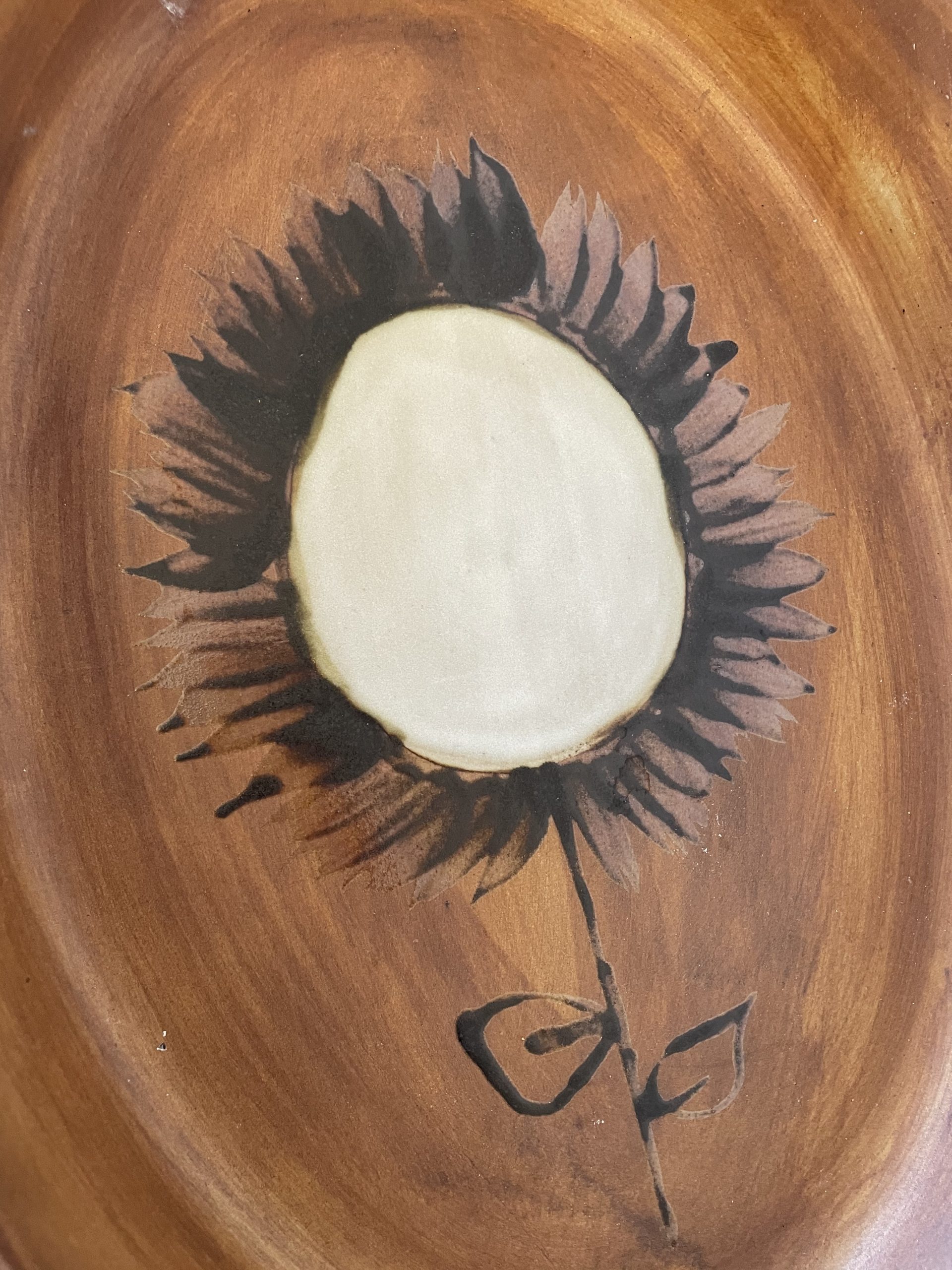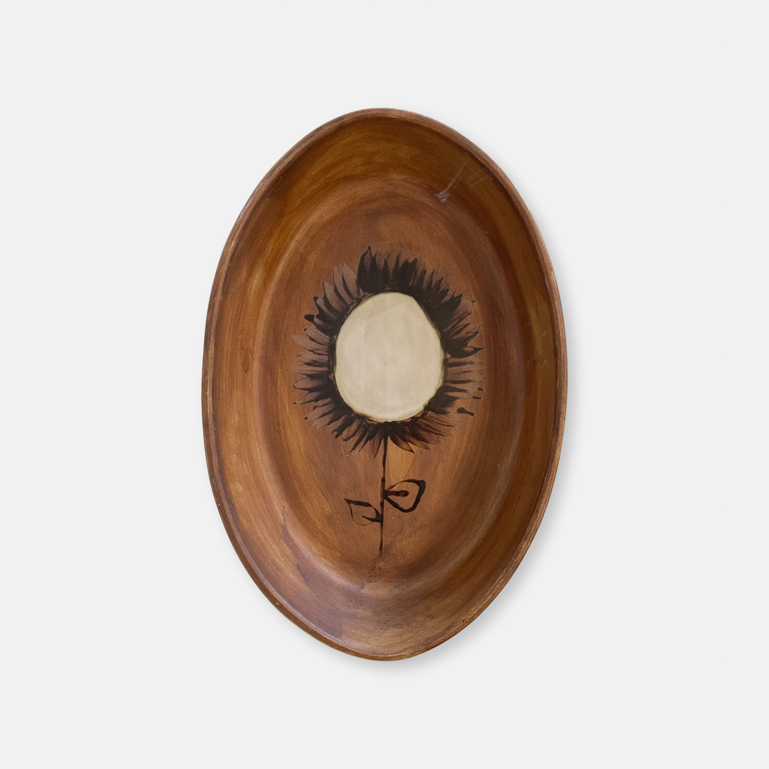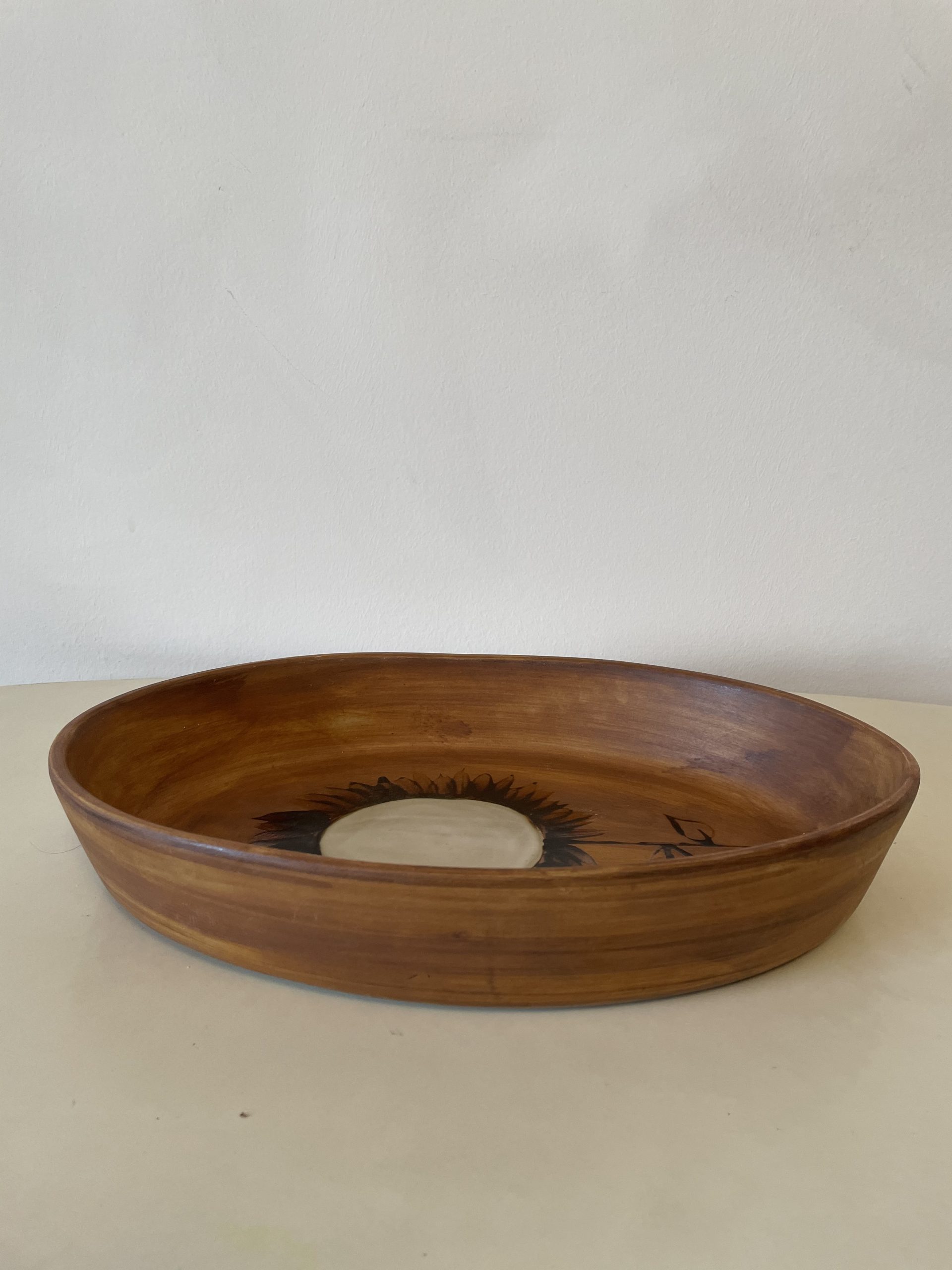 Au décor de couleur ocre avec un grand dessin de fleur en son centre, le plat peut être utilisé pour servir ses convives, mais il n’est pas conseillé de l’utiliser pour les cuissons.
