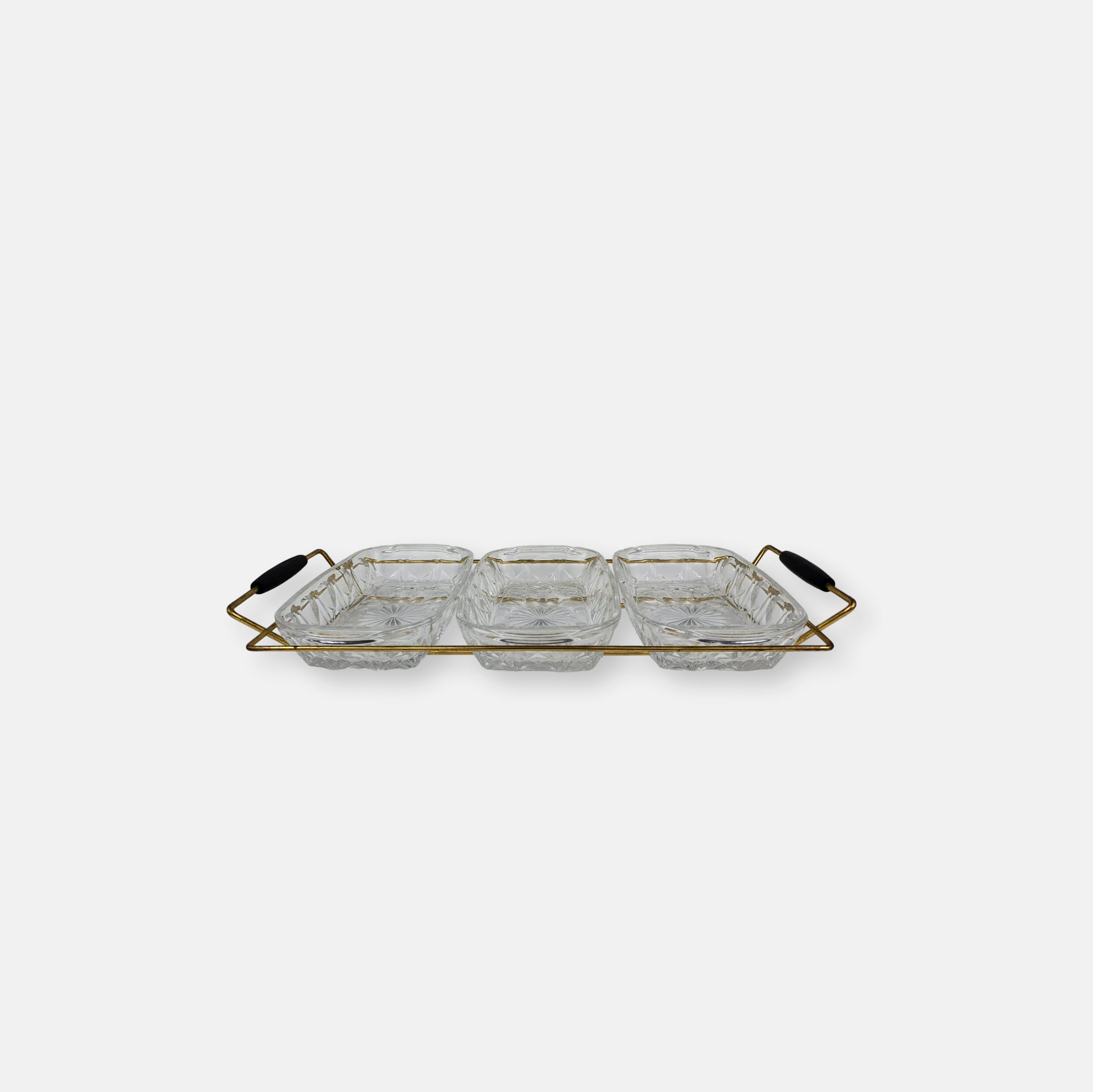 Produit venduJoli service apéritif sixties et ses trois raviers en verre.