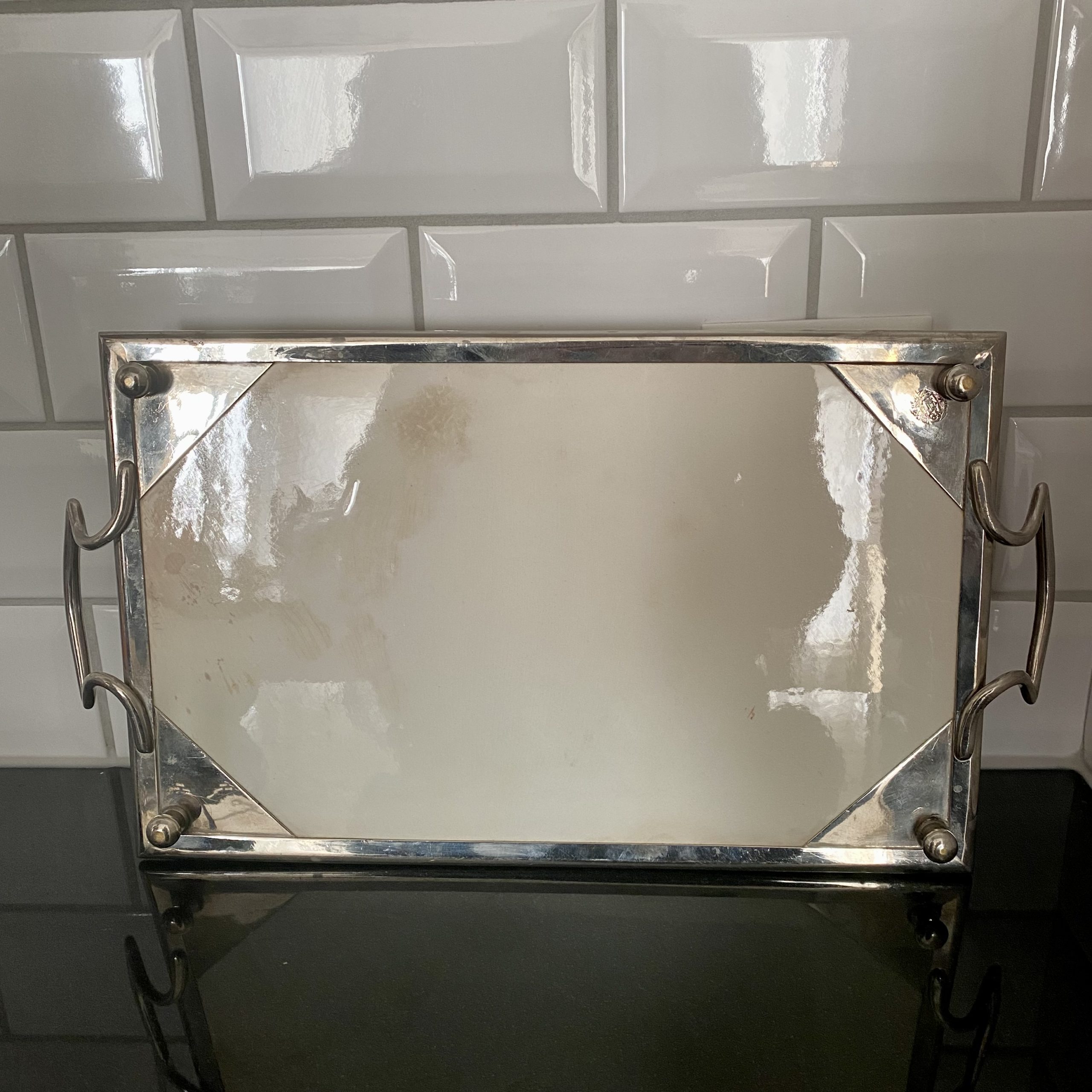 Produit venduPlateau sur pieds en porcelaine et argent.