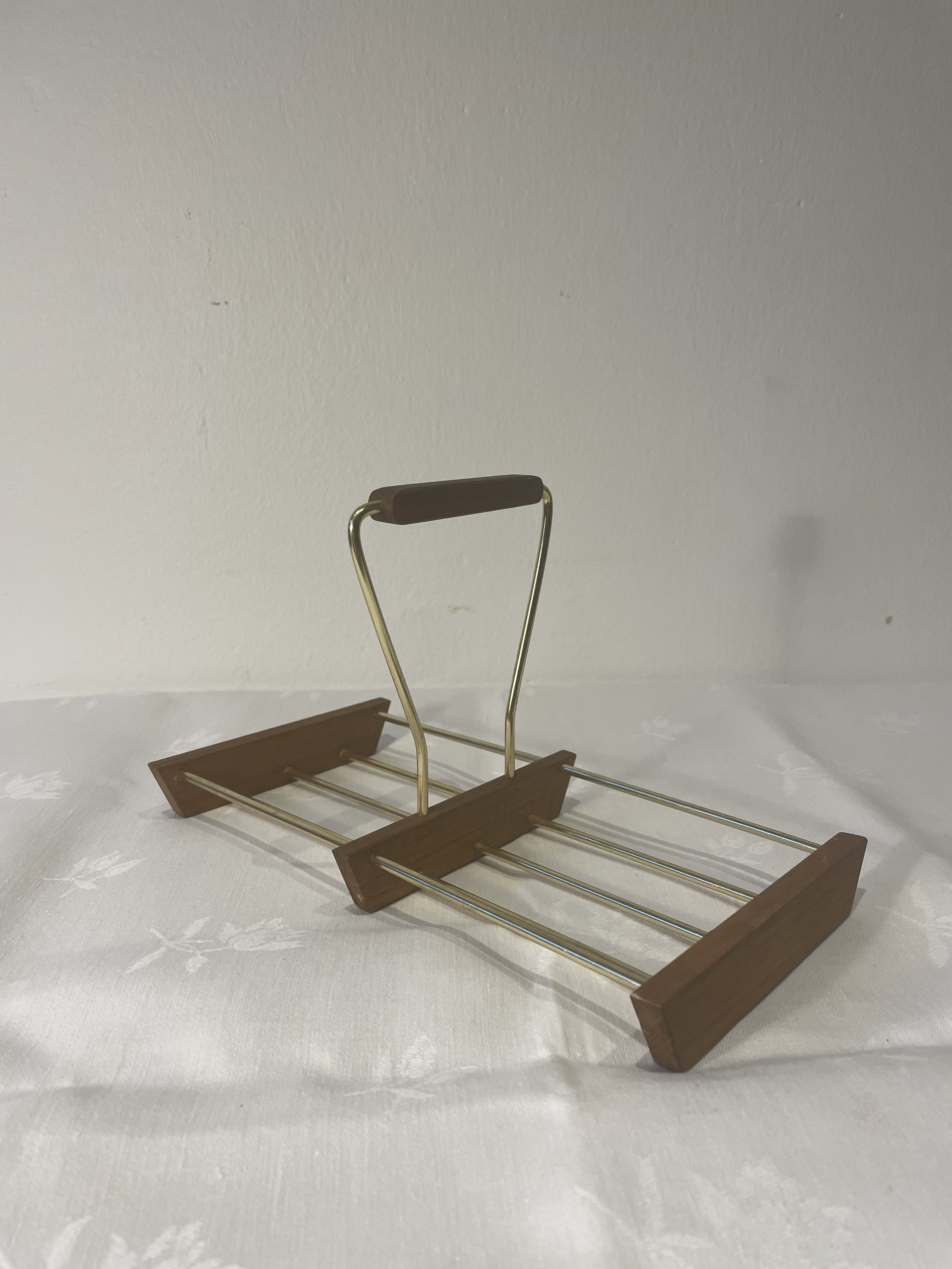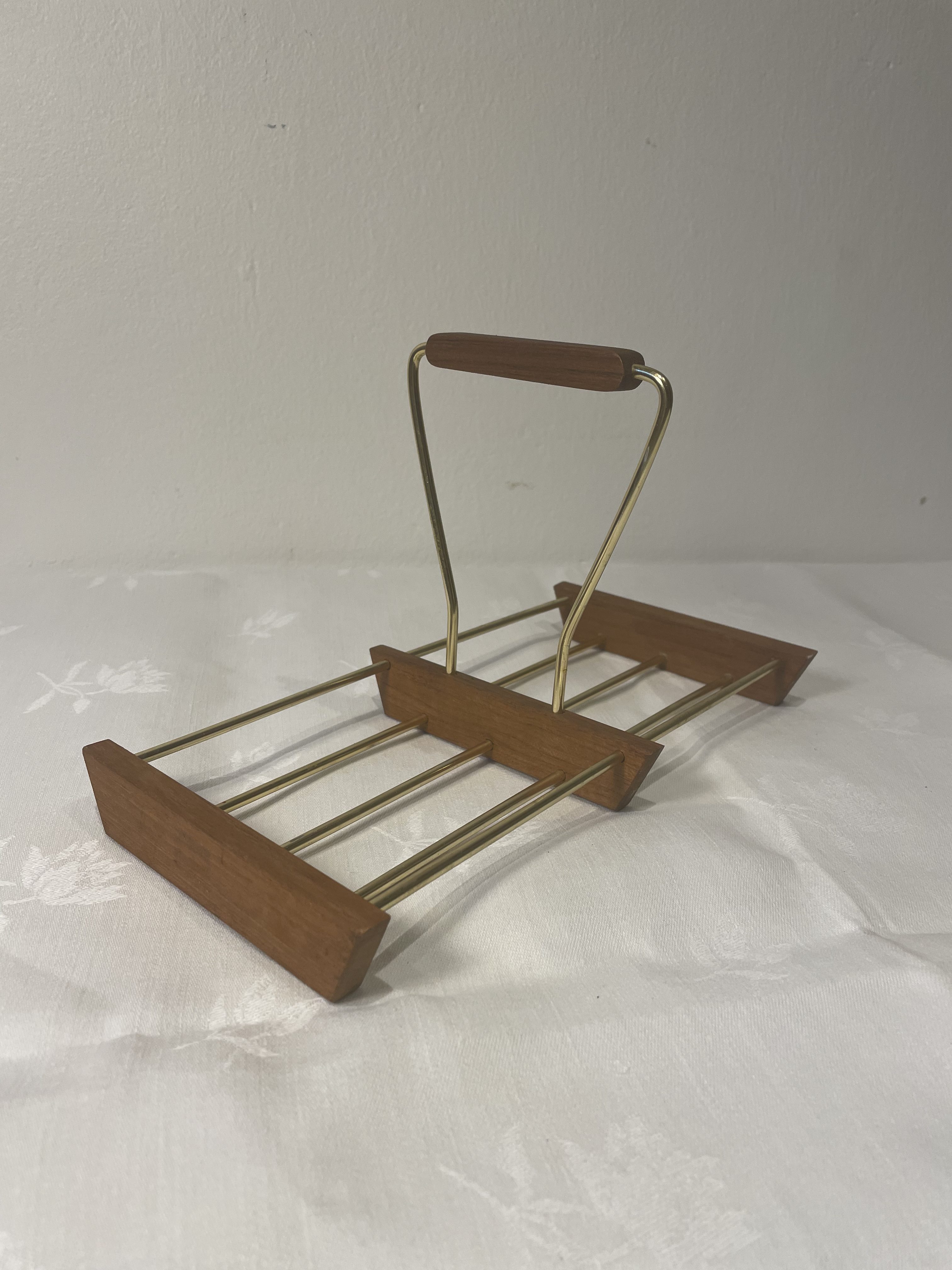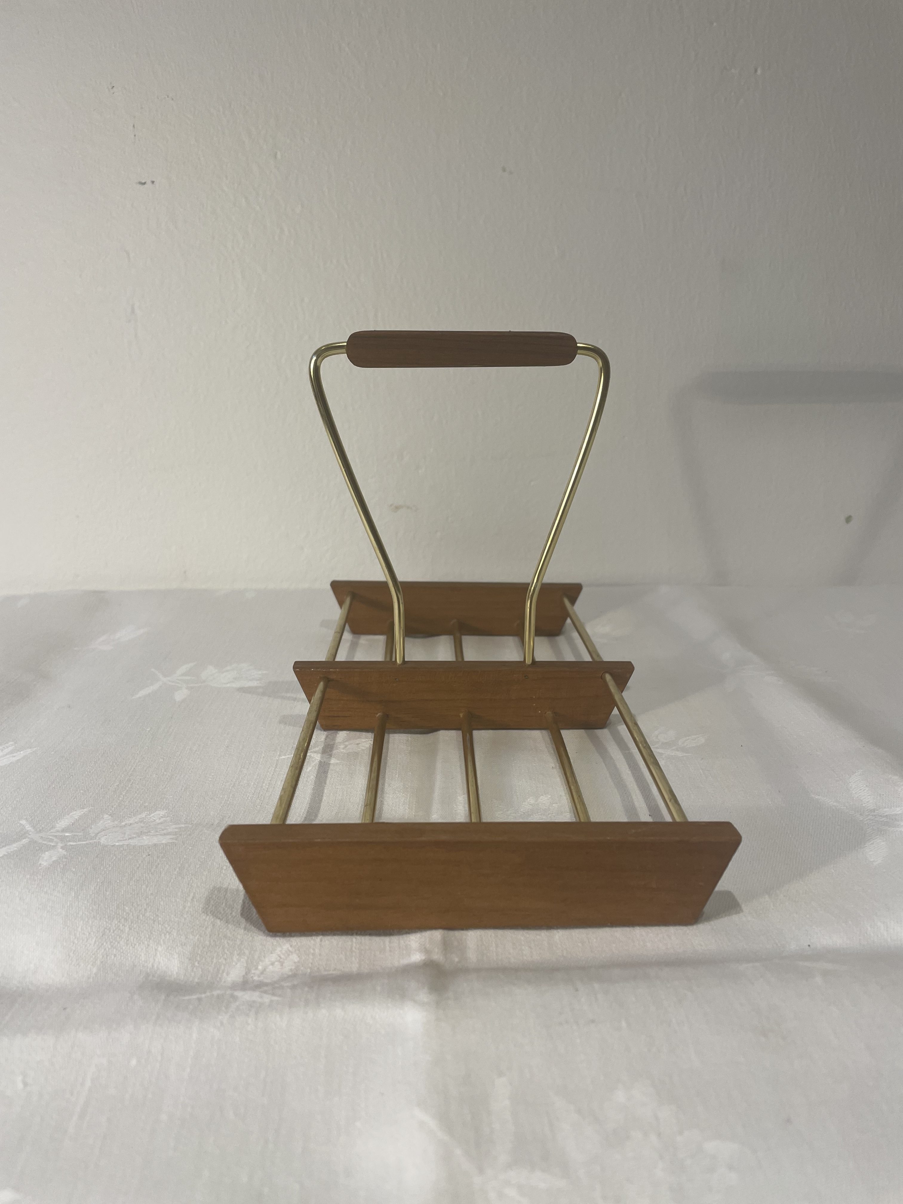 Produit venduPorte-toasts rétro en bois et laiton circa années 60, en parfait état