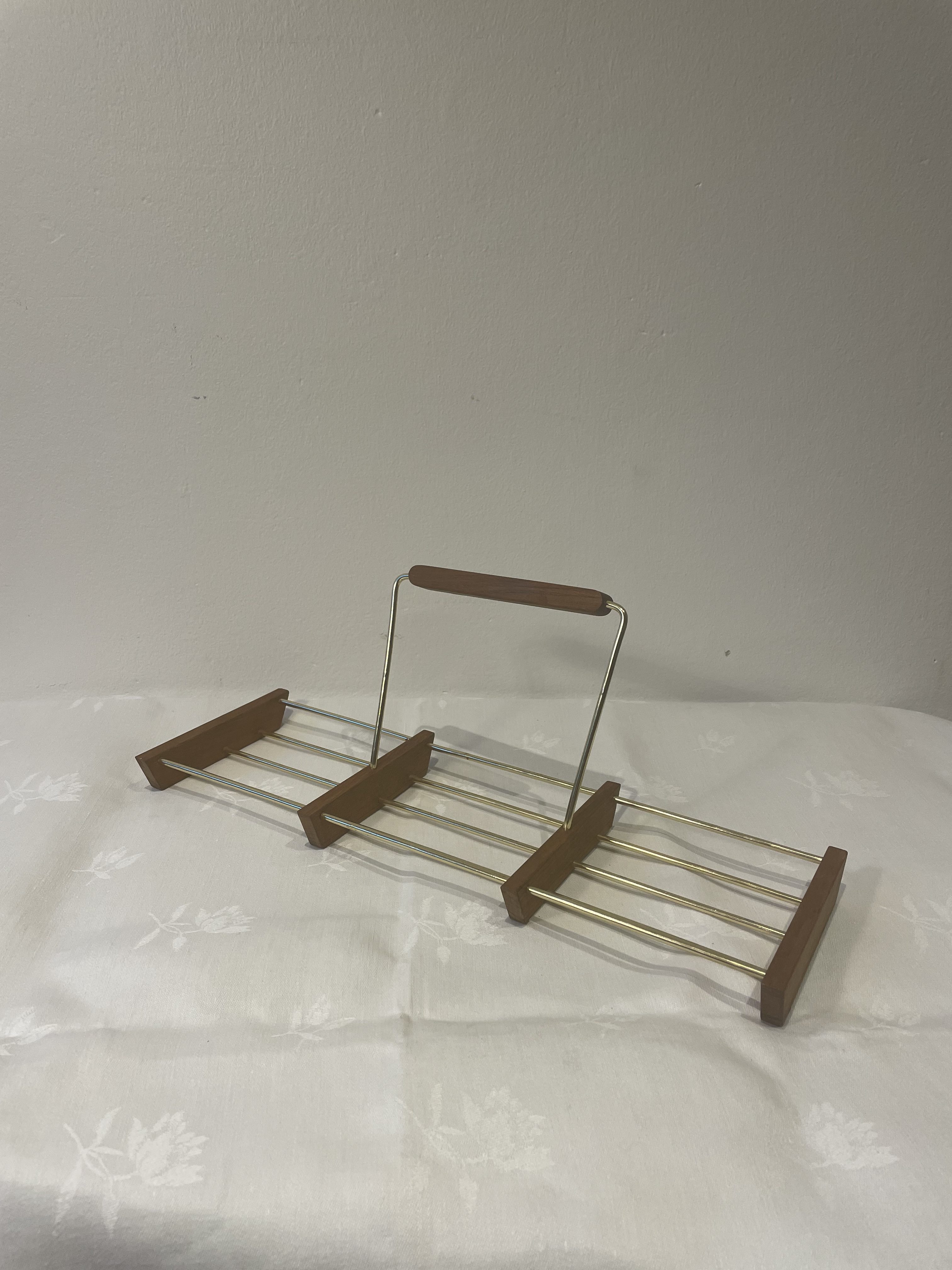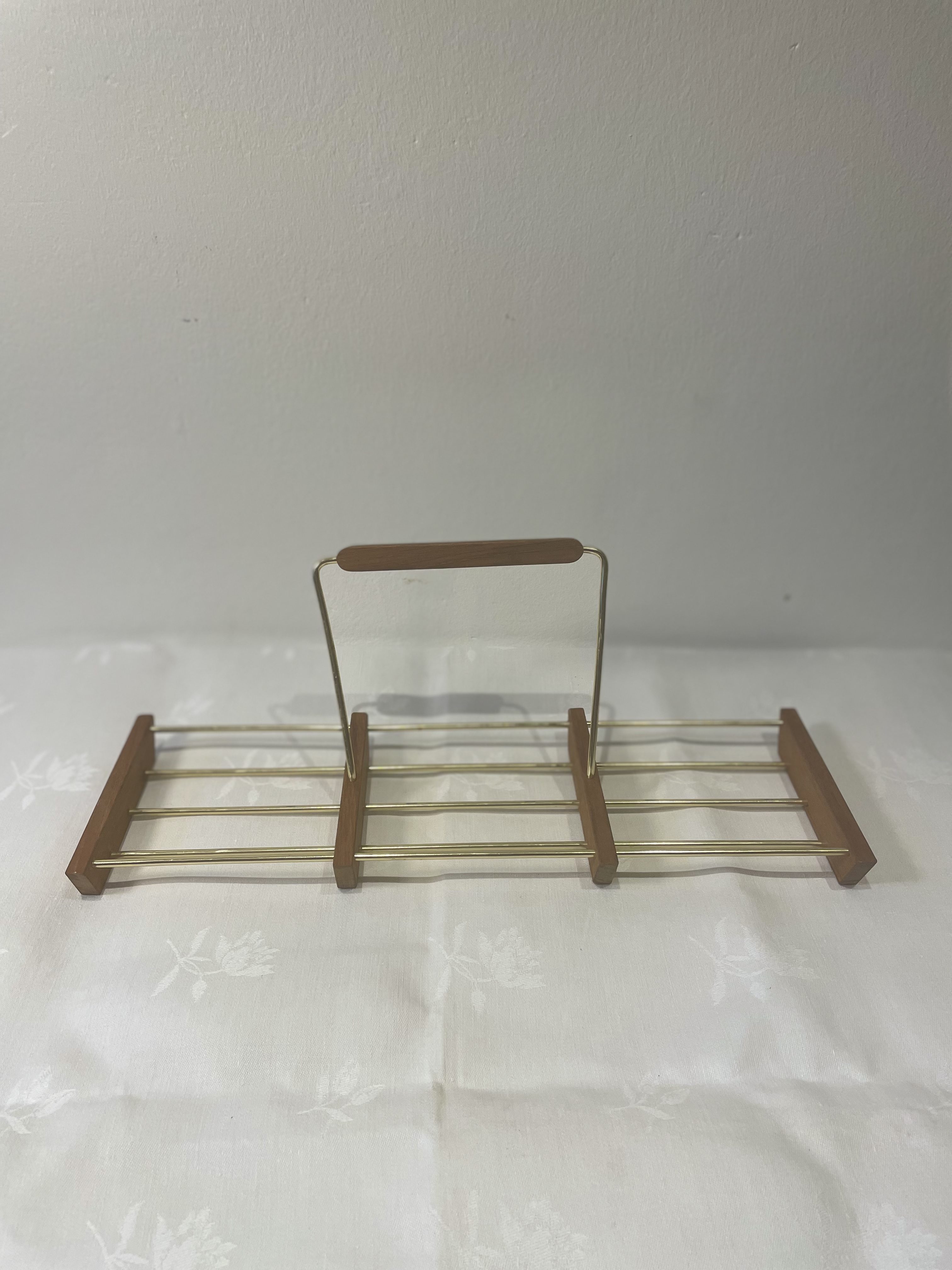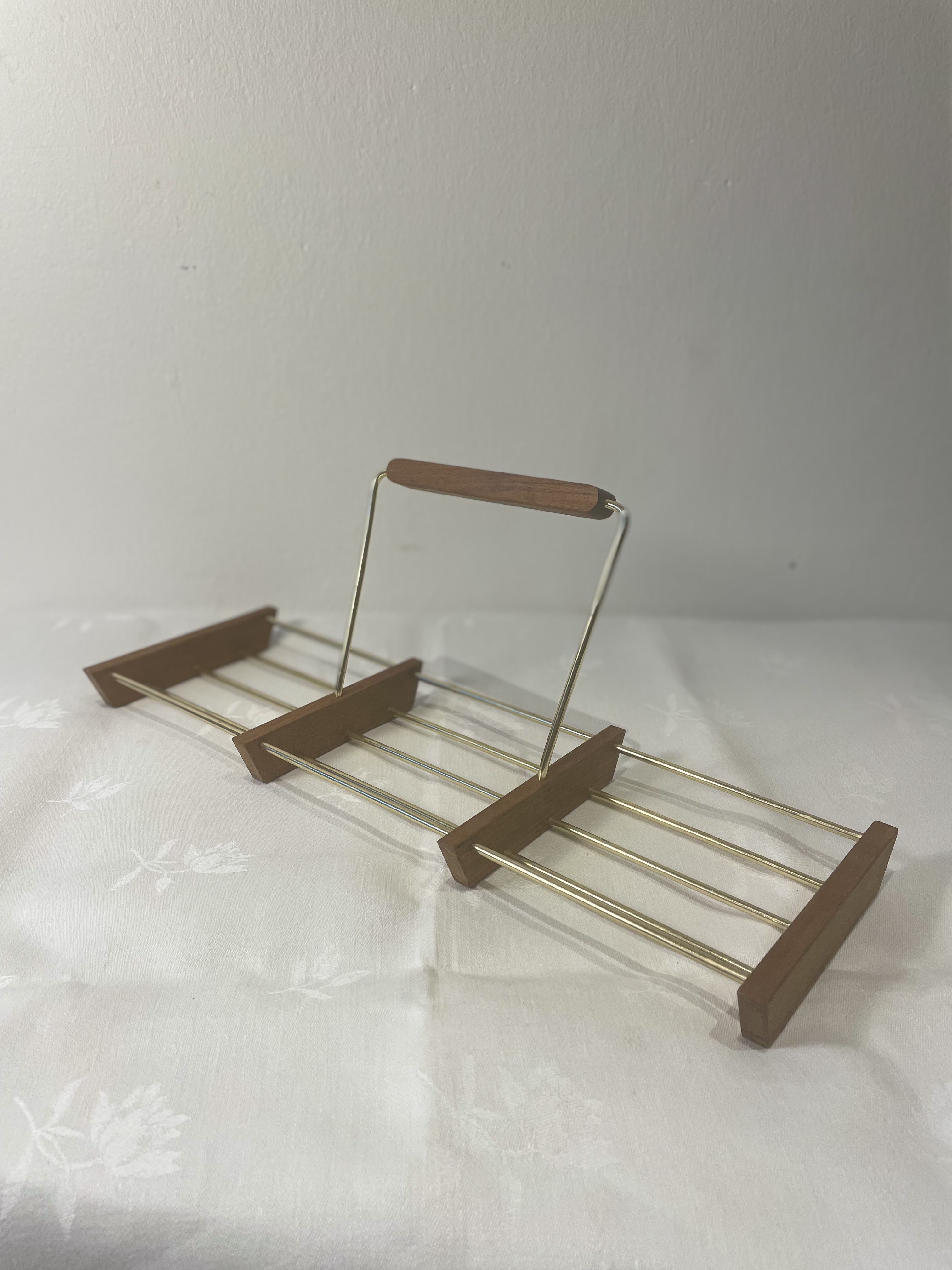 Porte-toasts rétro en bois et laiton circa années 60, en parfait état