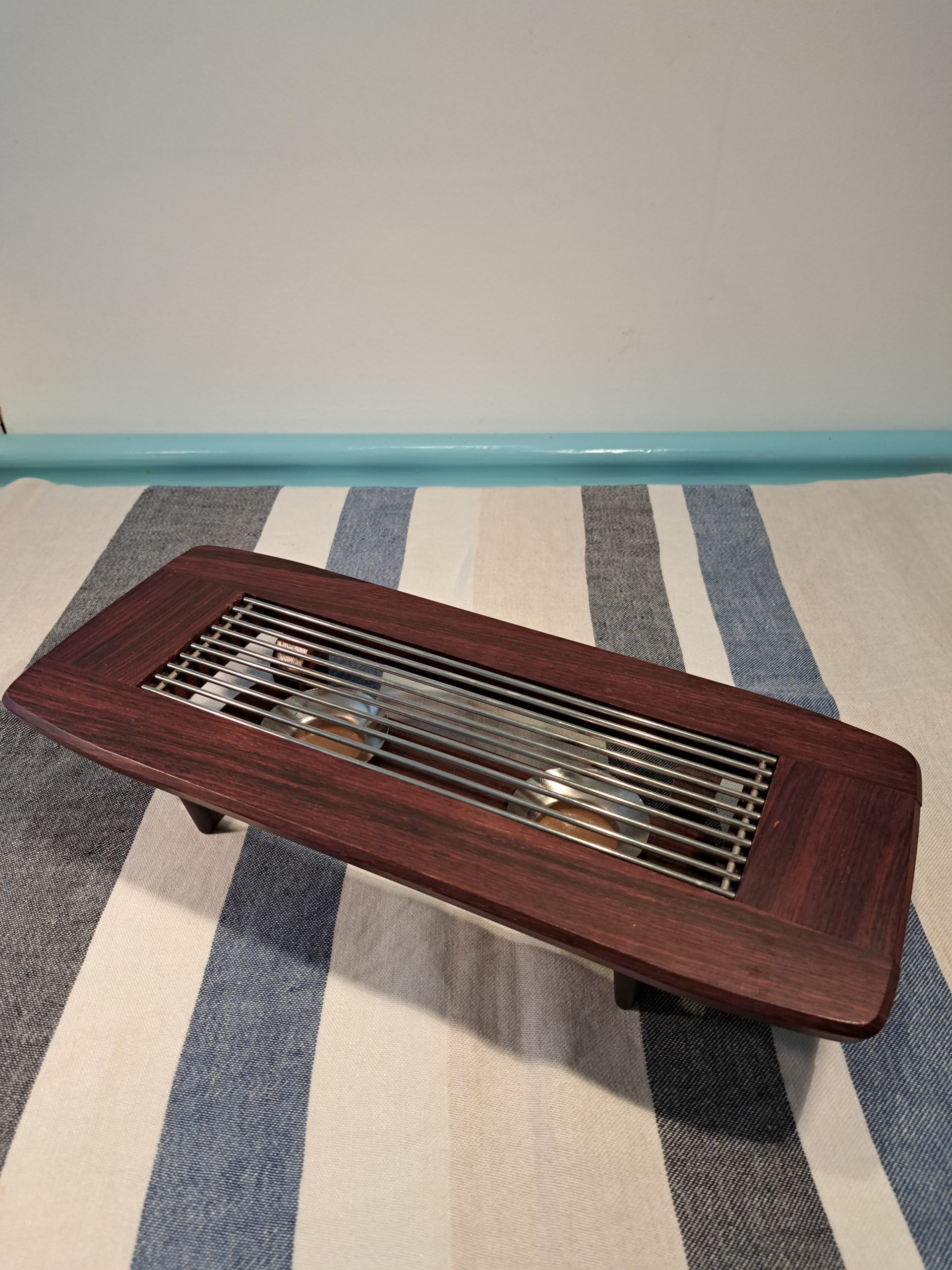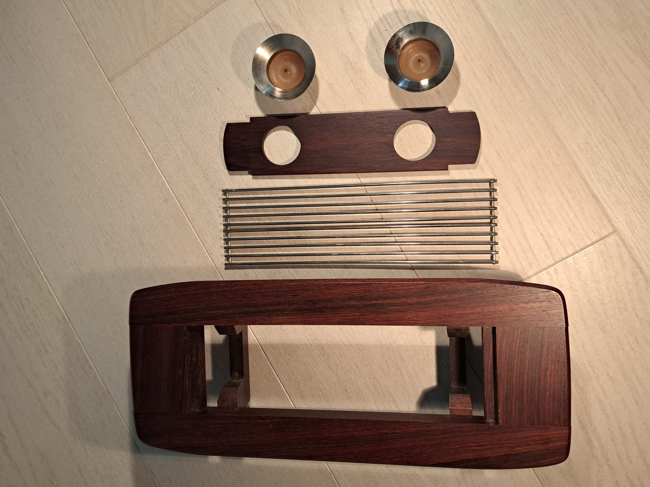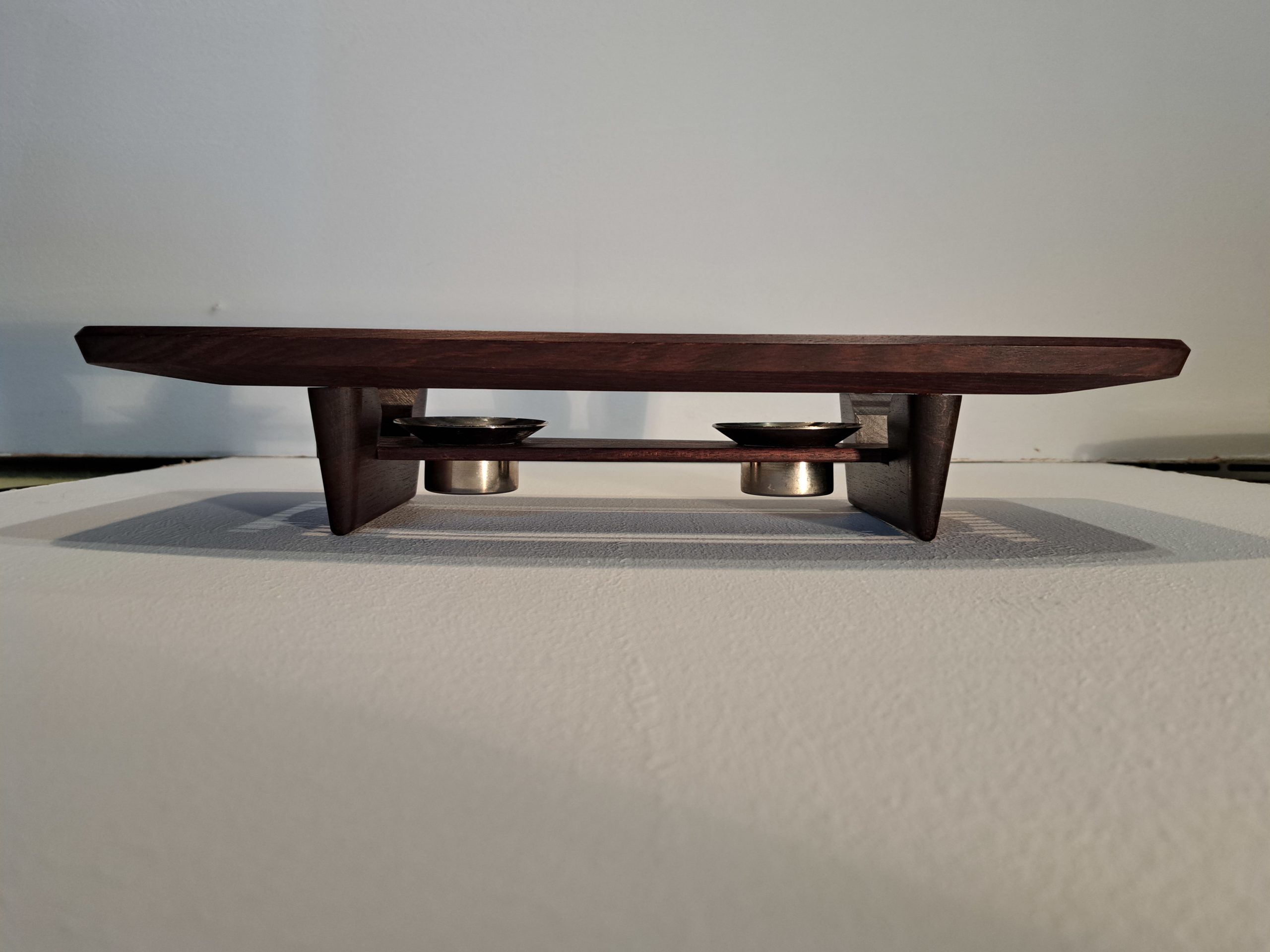 Réchaud design pour la table en palissandre massif, à deux bougies.