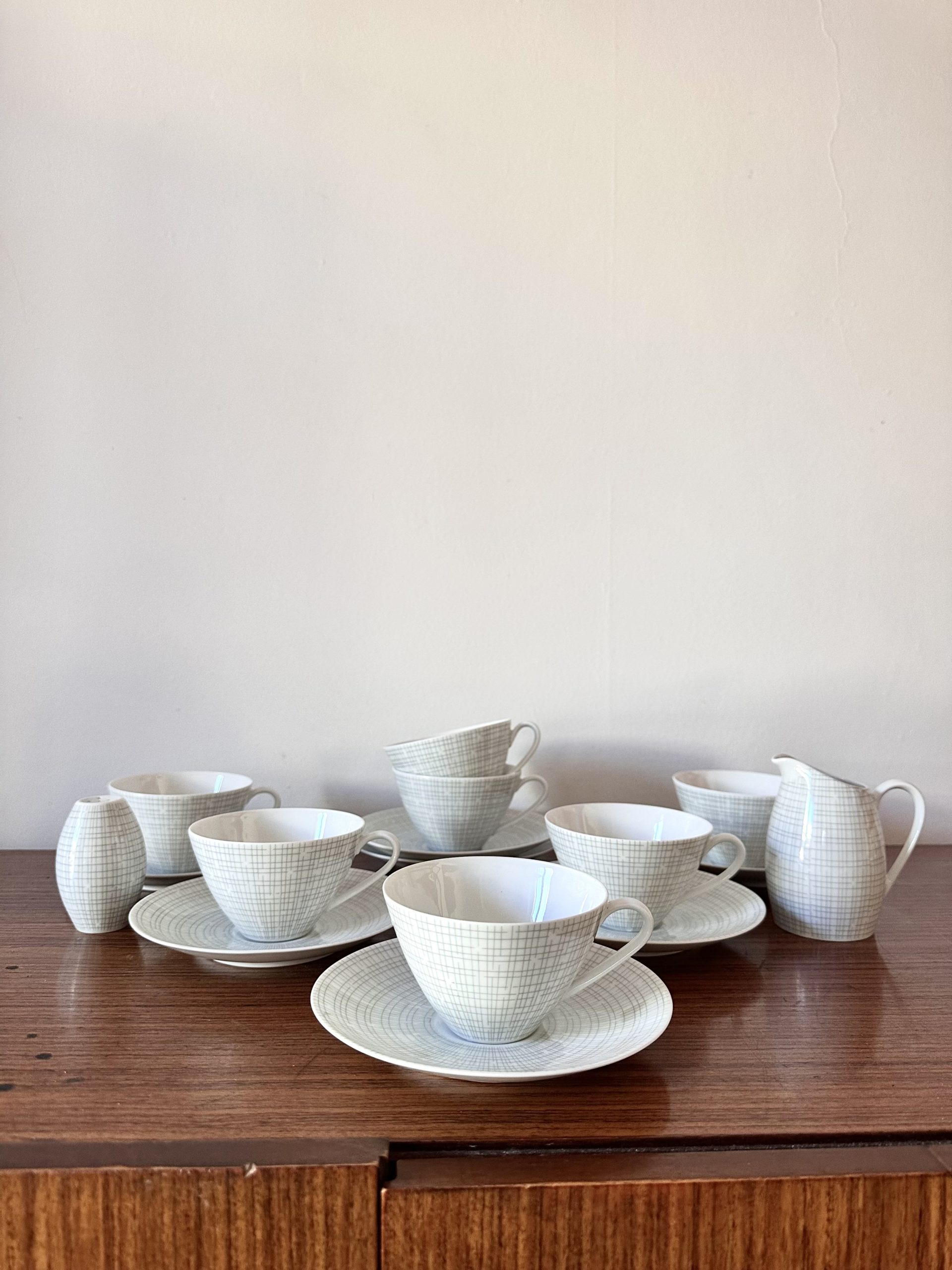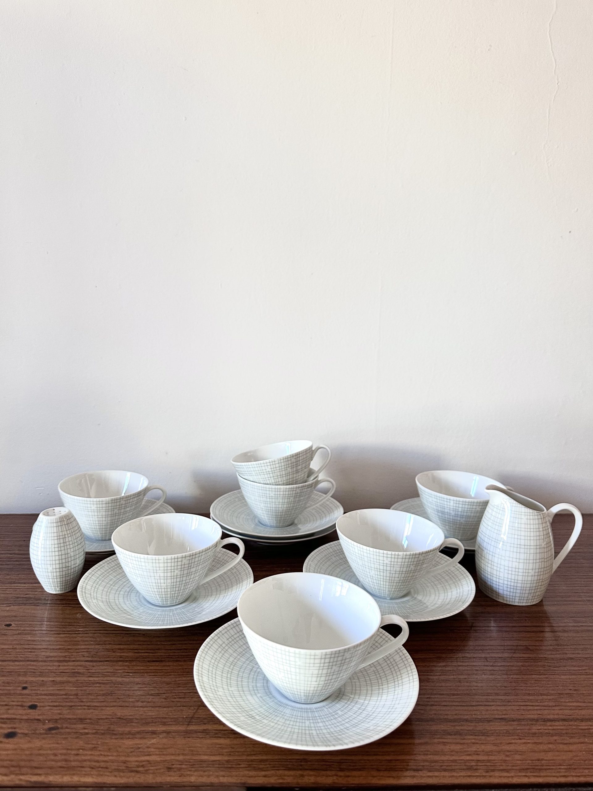 Service à café et à thé Arzberg, modèle Form 2025, en porcelaine allemande de haute qualité. Ce modèle emblématique a été dessiné par Heinrich Löffelhardt et a reçu une distinction internationale lors de la Triennale de Milan à la fin des années 1950. Il s’inscrit dans l’histoire du design moderne d’après-guerre, pour la justesse de ses proportions et son usage fonctionnel.