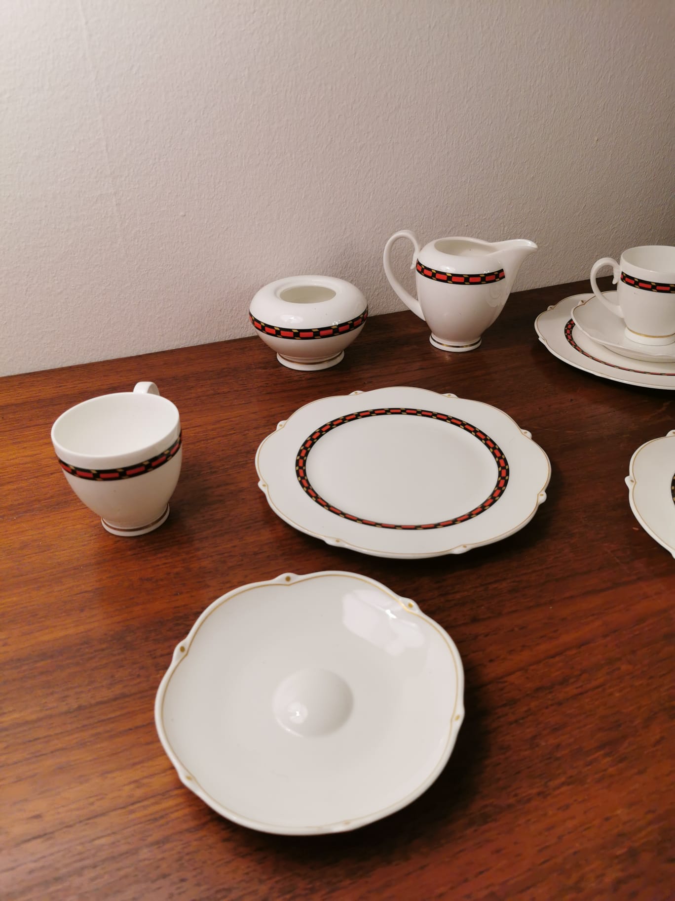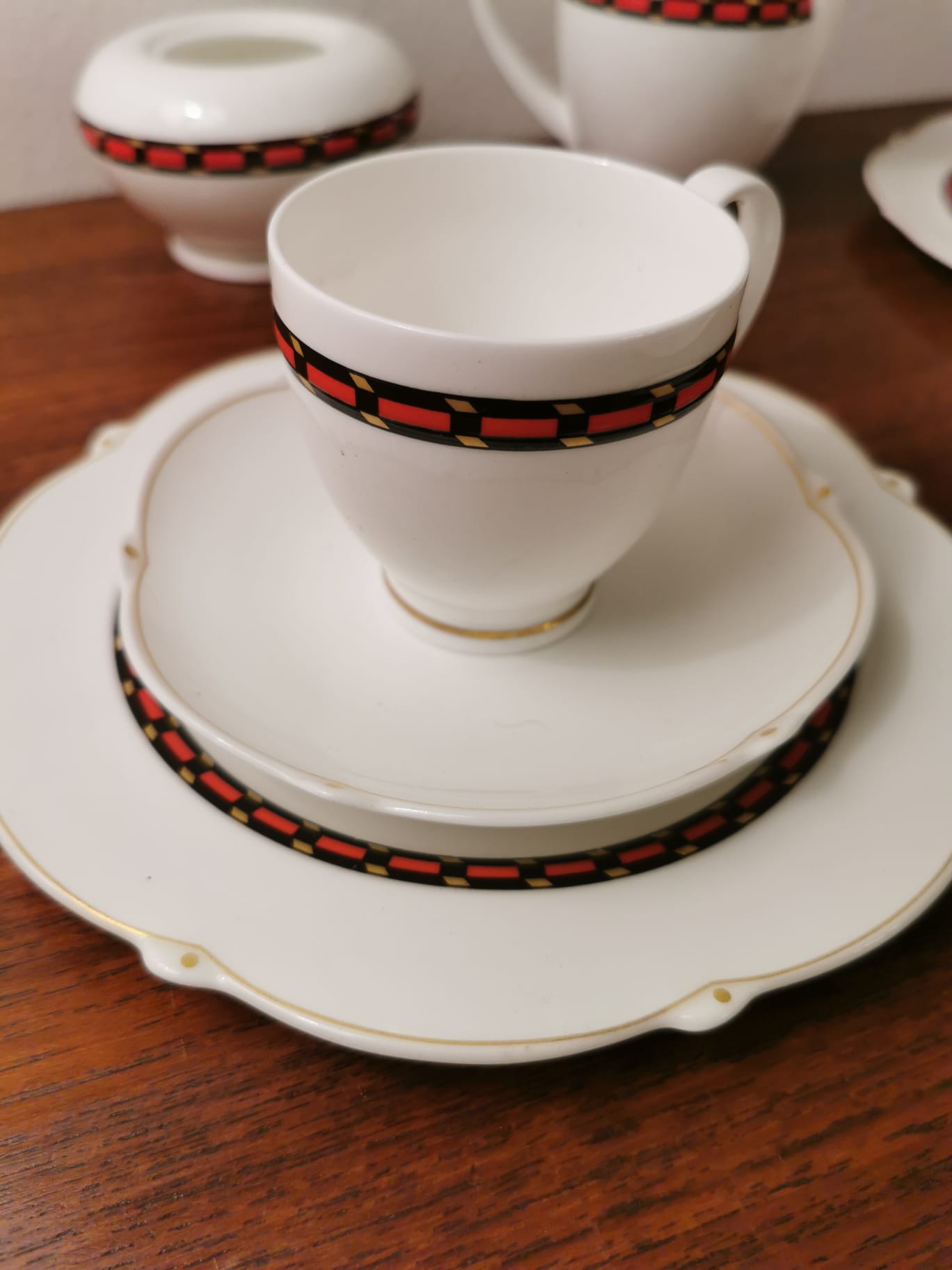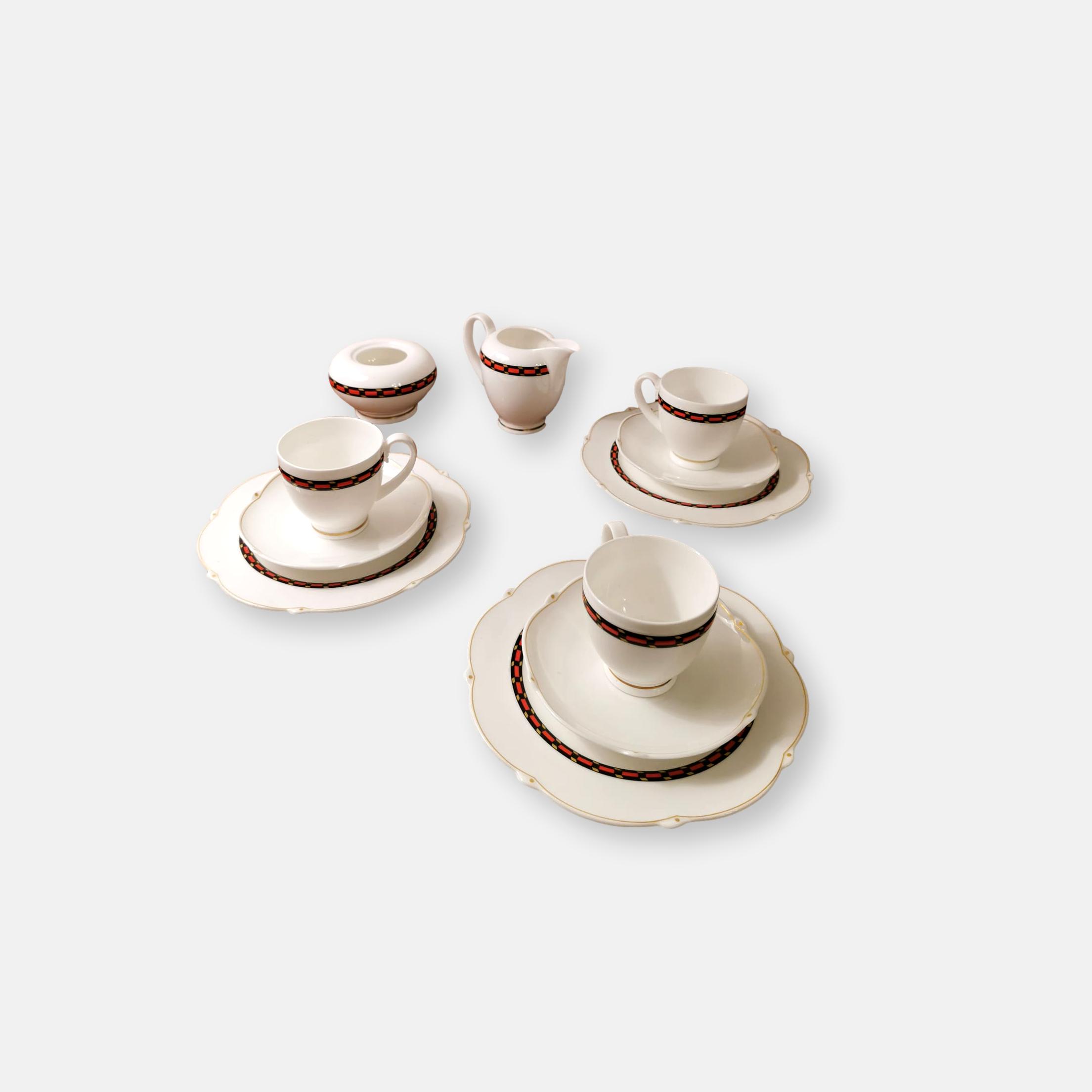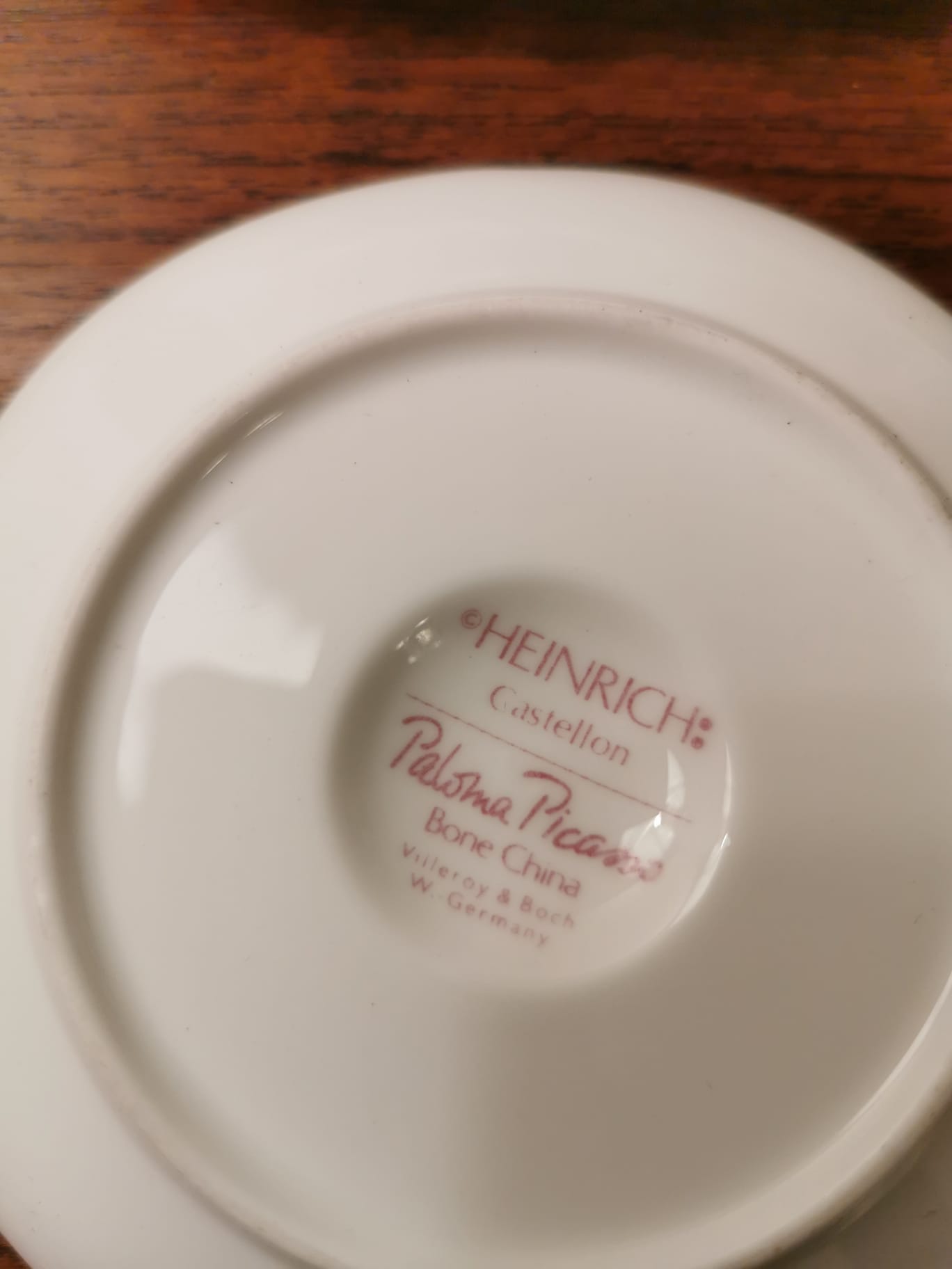 Produit venduService a café Paloma Picasso pour Villeroy & Boch composé de 3 tasses, 3 soucoupes et 3 assiettes à desserte ainsi qu’un pot à crème et un sucrier.