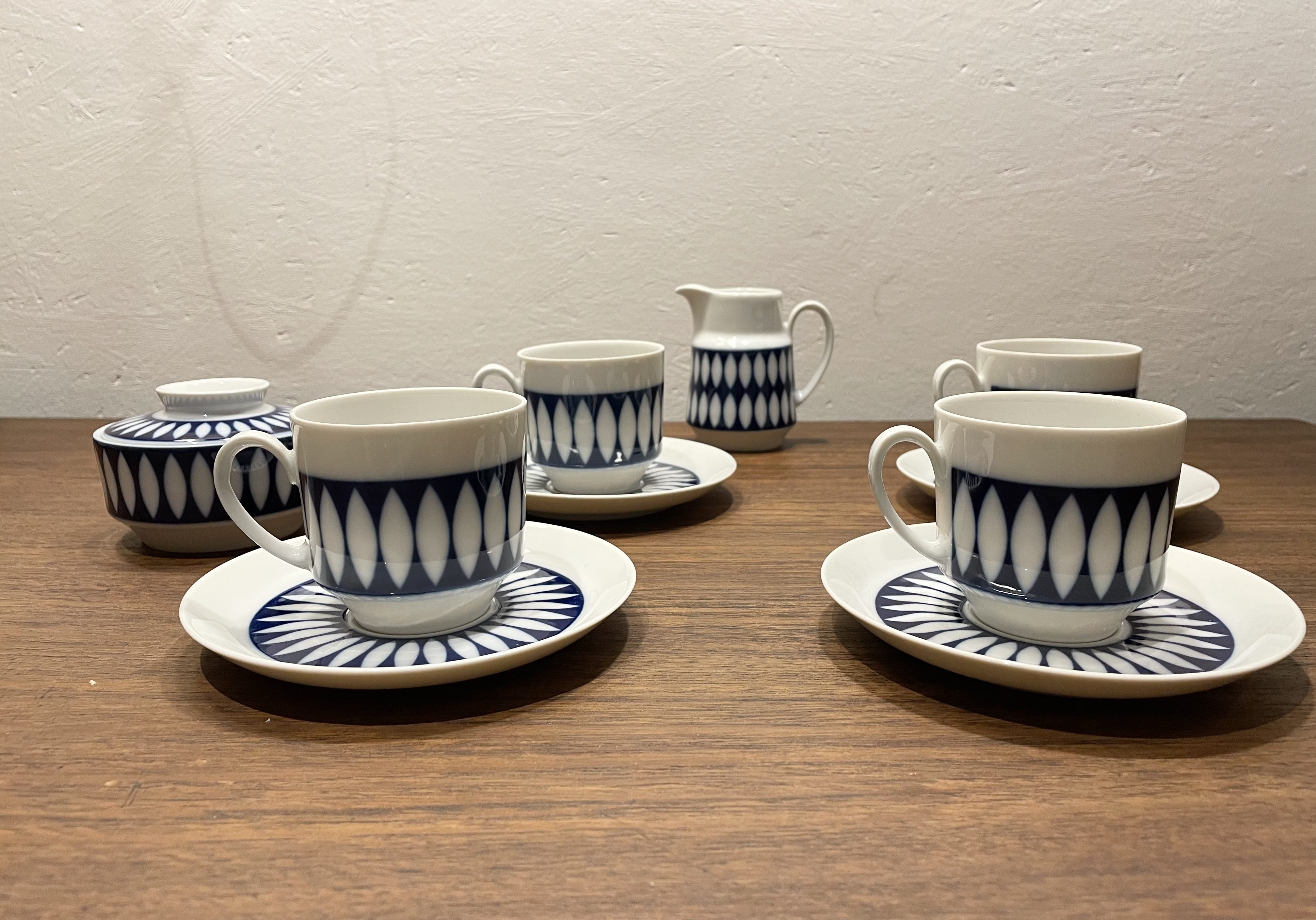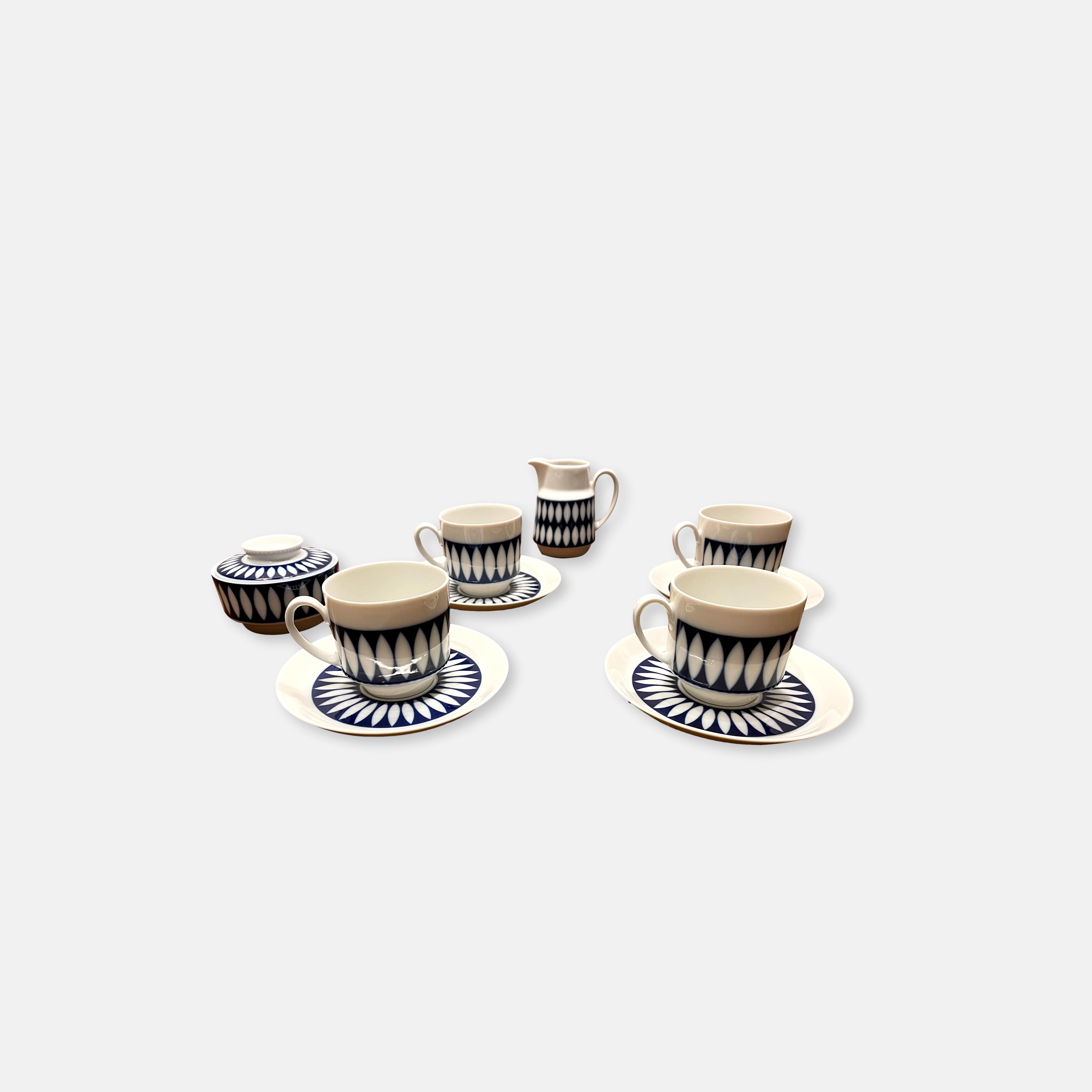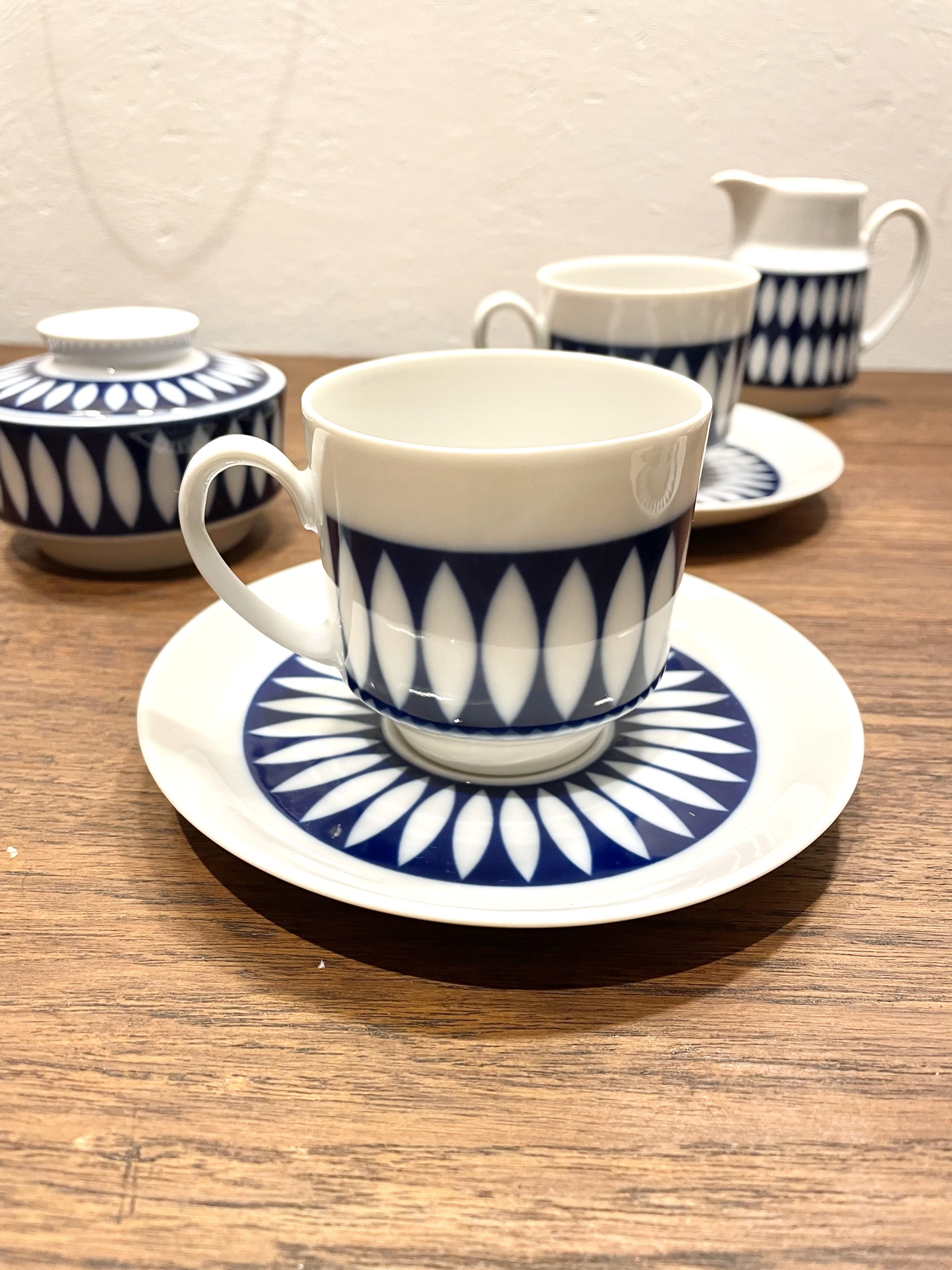 Produit venduJoli service à café en porcelaine au décor géométrique bleue de Winterling en parfait état