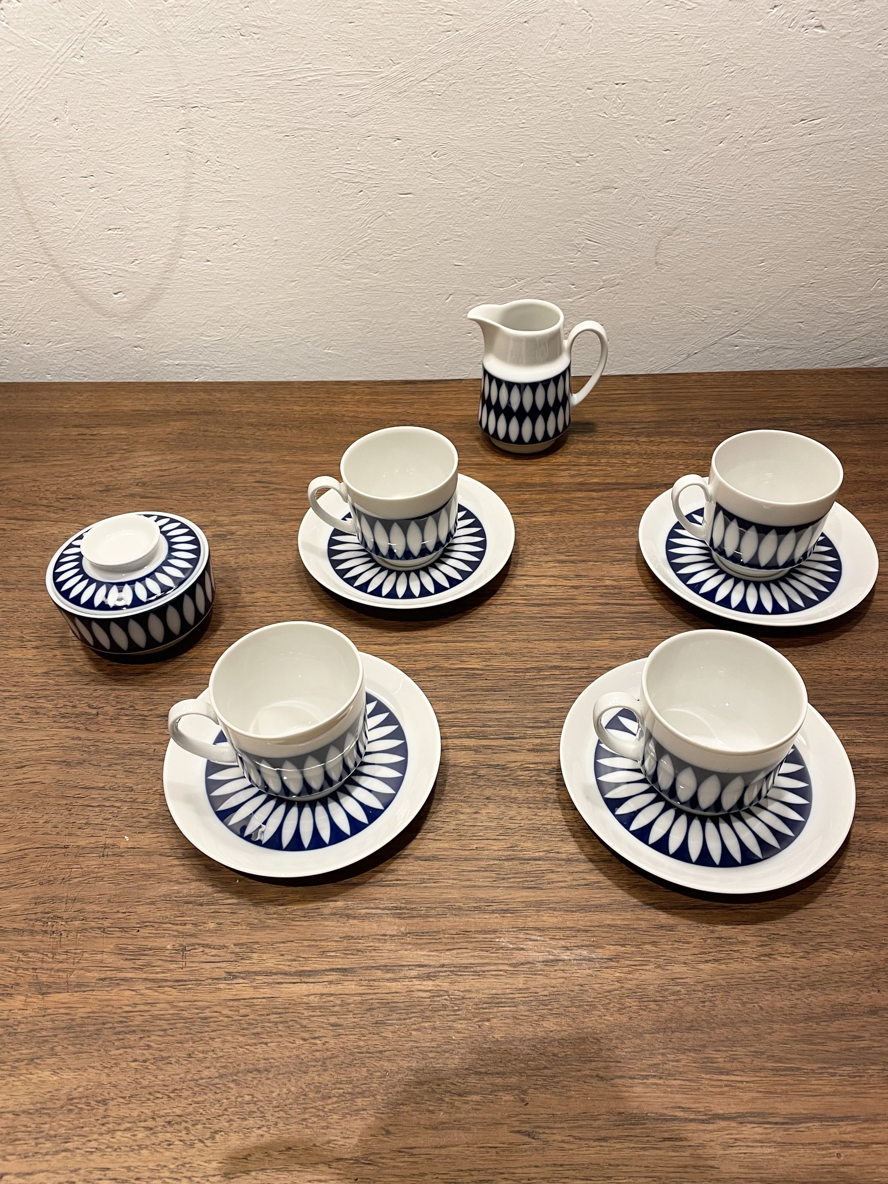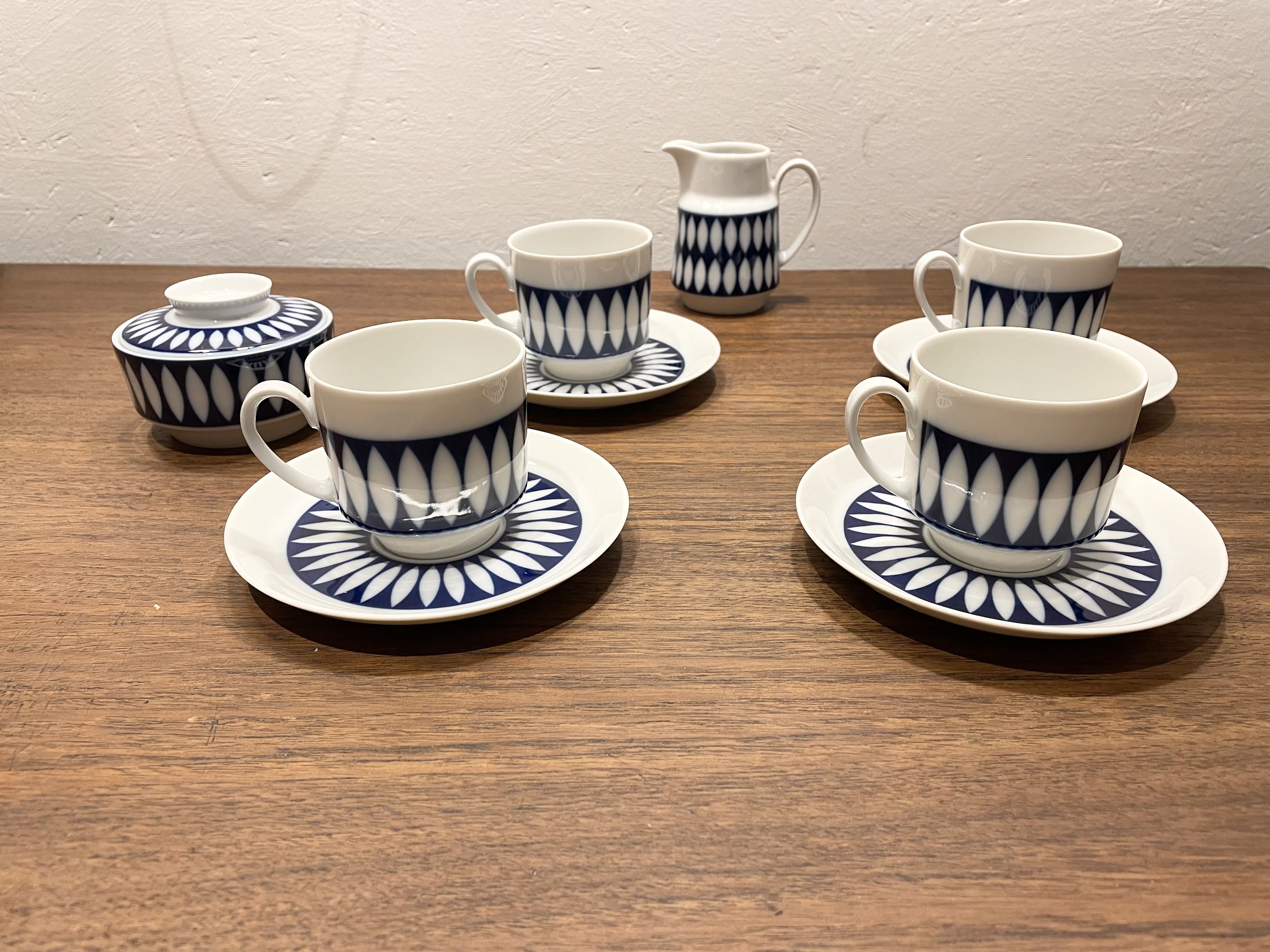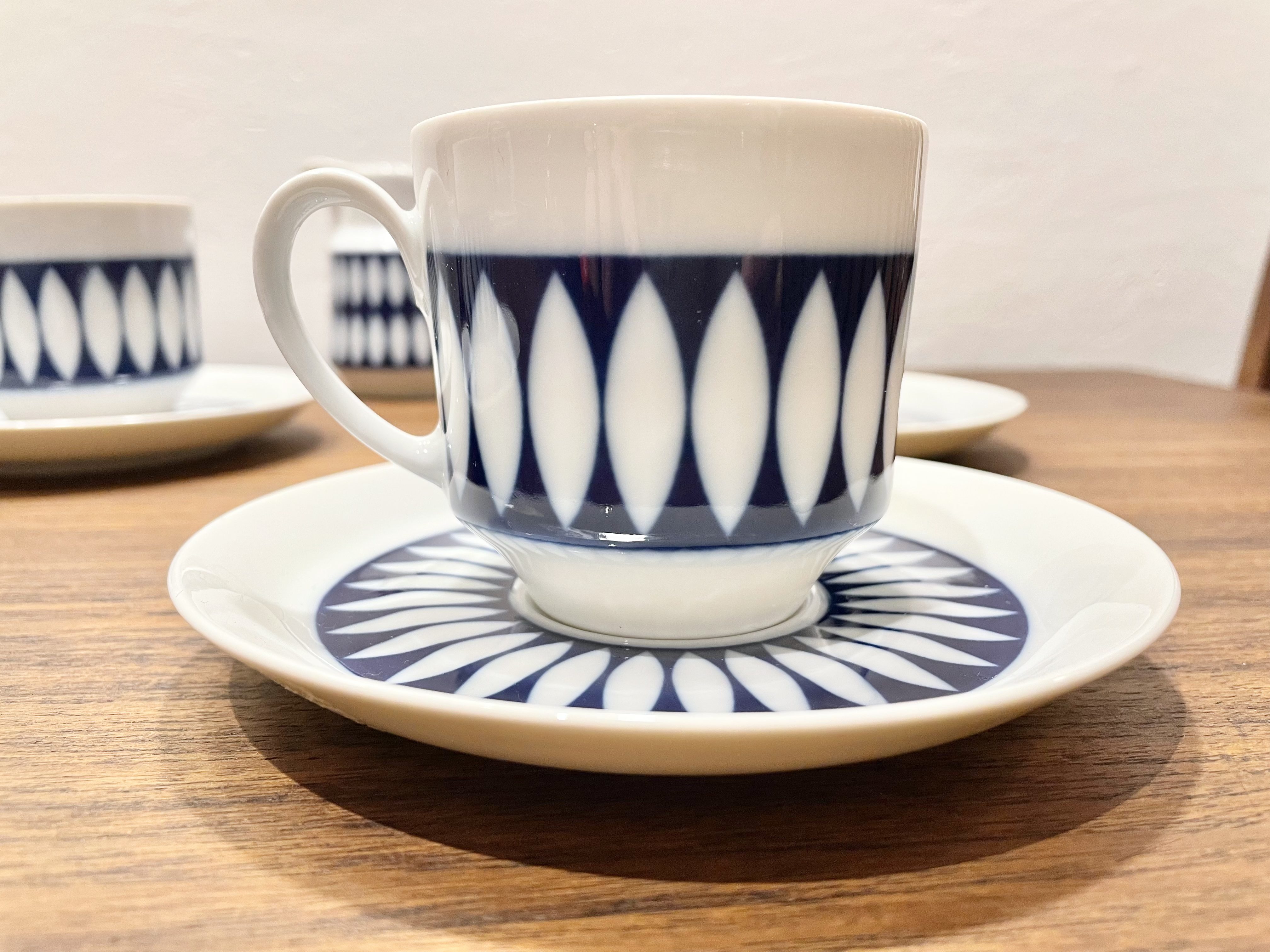 Produit venduJoli service à café en porcelaine au décor géométrique bleue de Winterling en parfait état