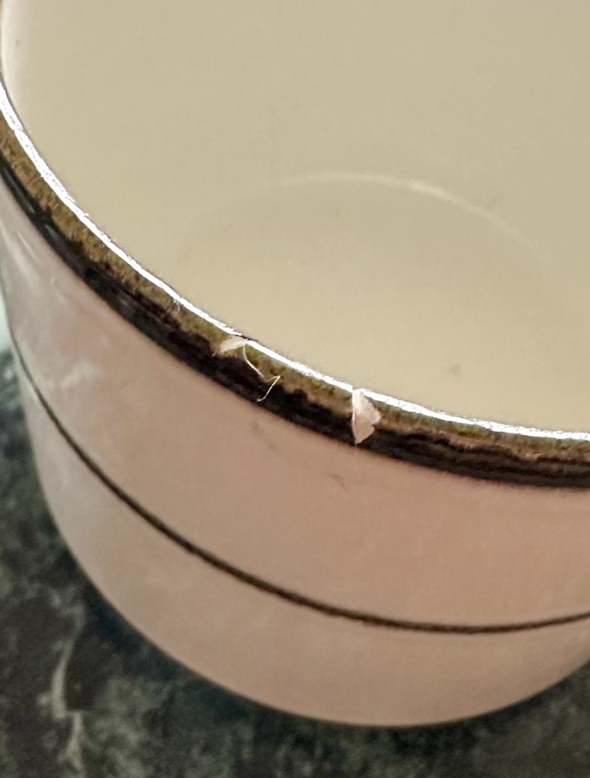 Très bon état. Sauf une tasse avec un petit éclat: voir derrière photo