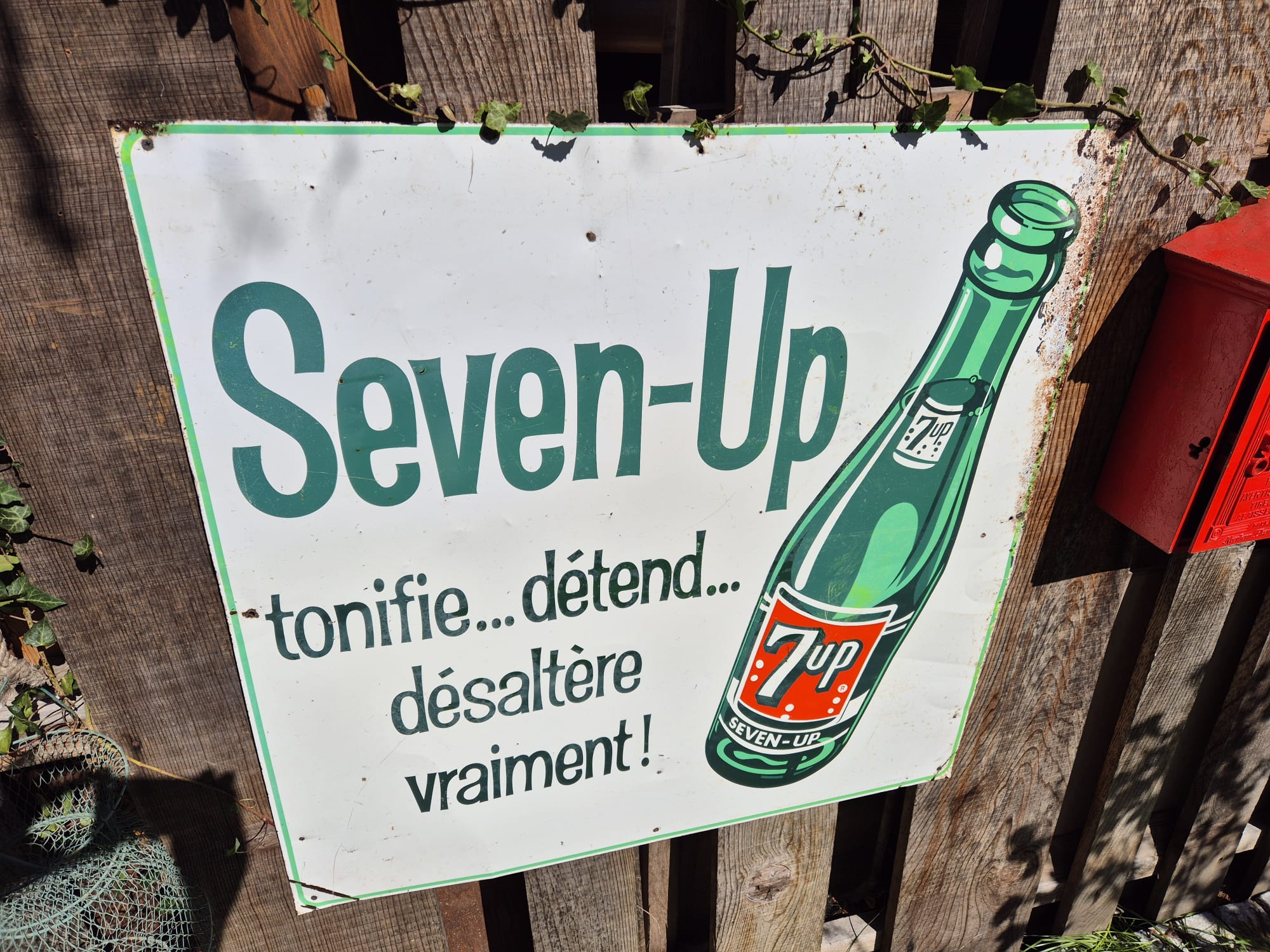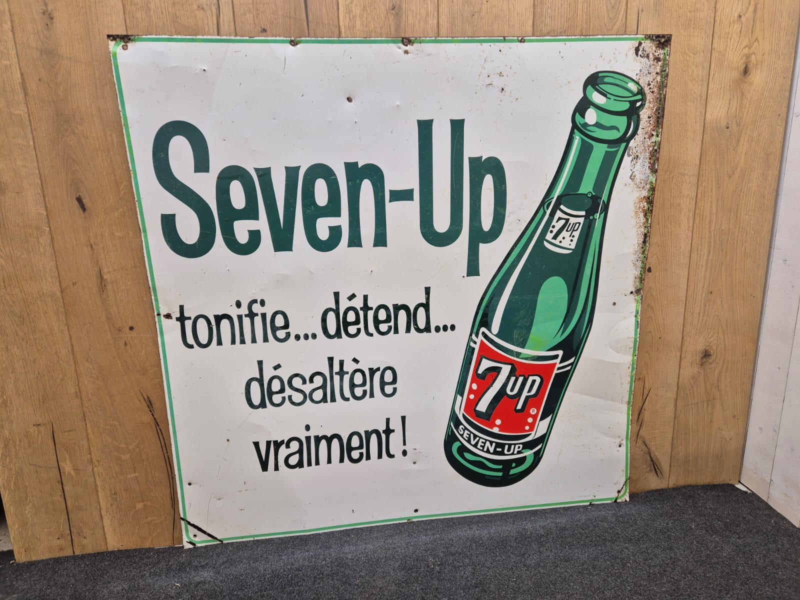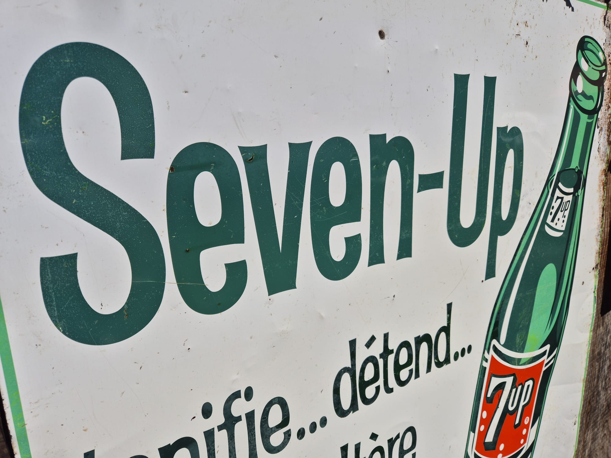 Magnifique grande tôle publicitaire sérigraphié “Seven Up”. Années 50.