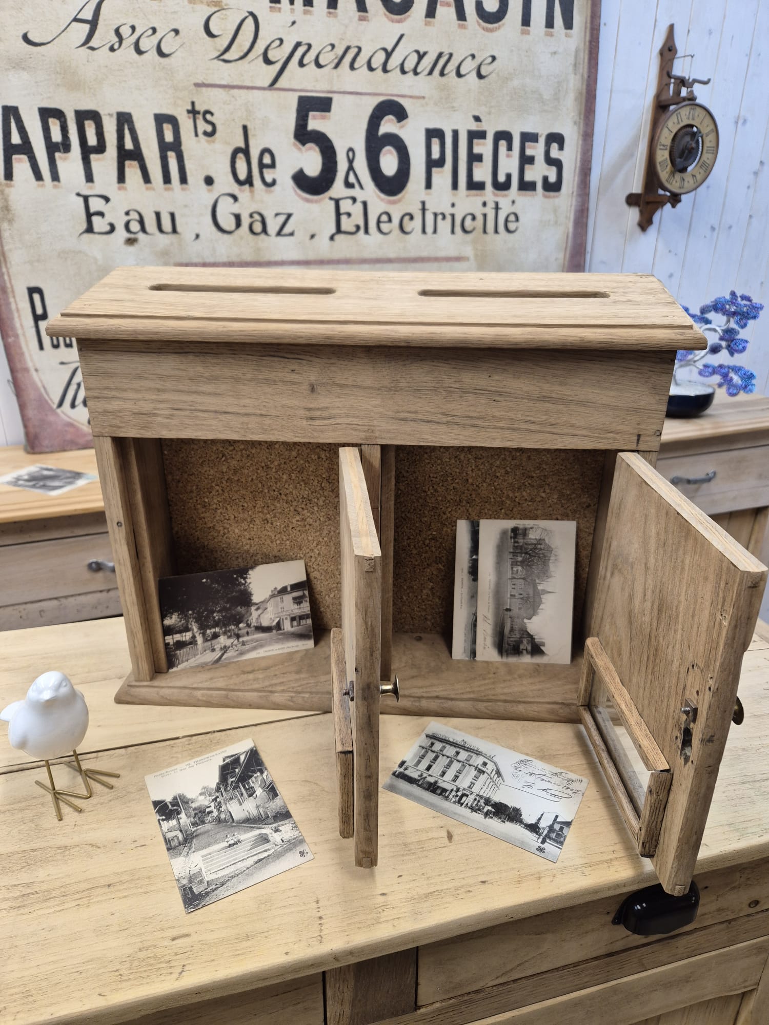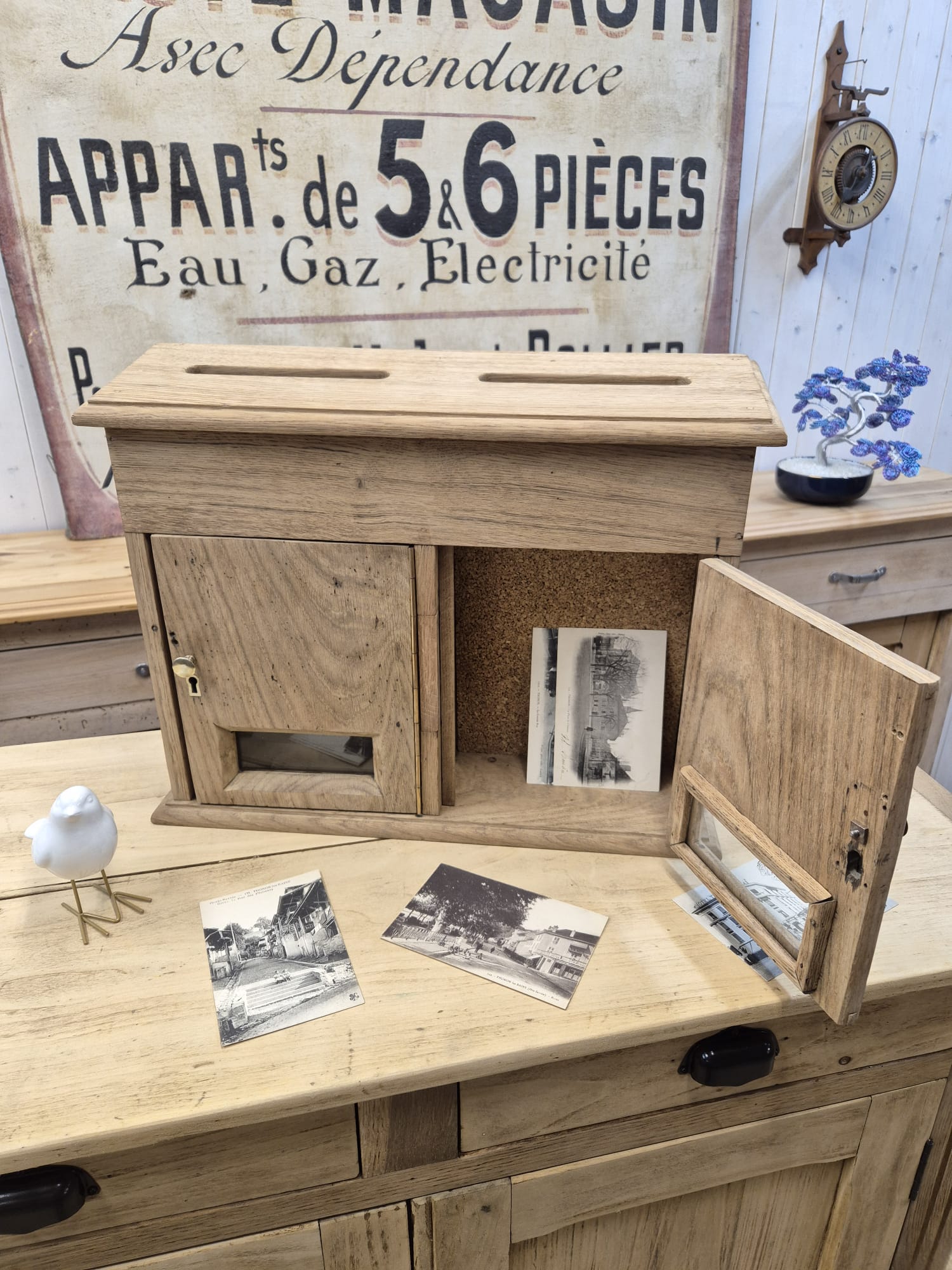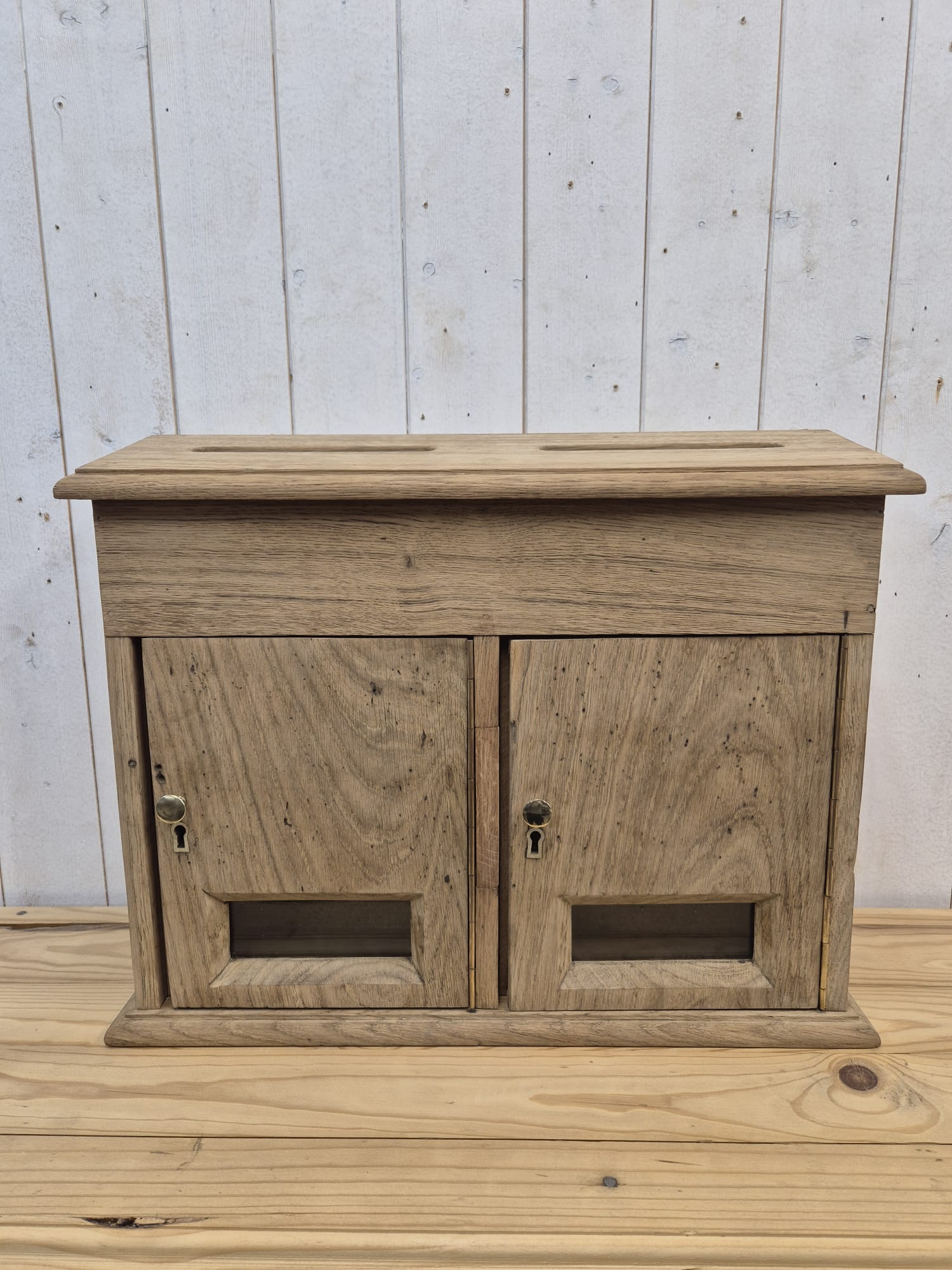 Très joli petit bloc de deux boîtes aux lettres en chêne massif avec ses poignées laiton.