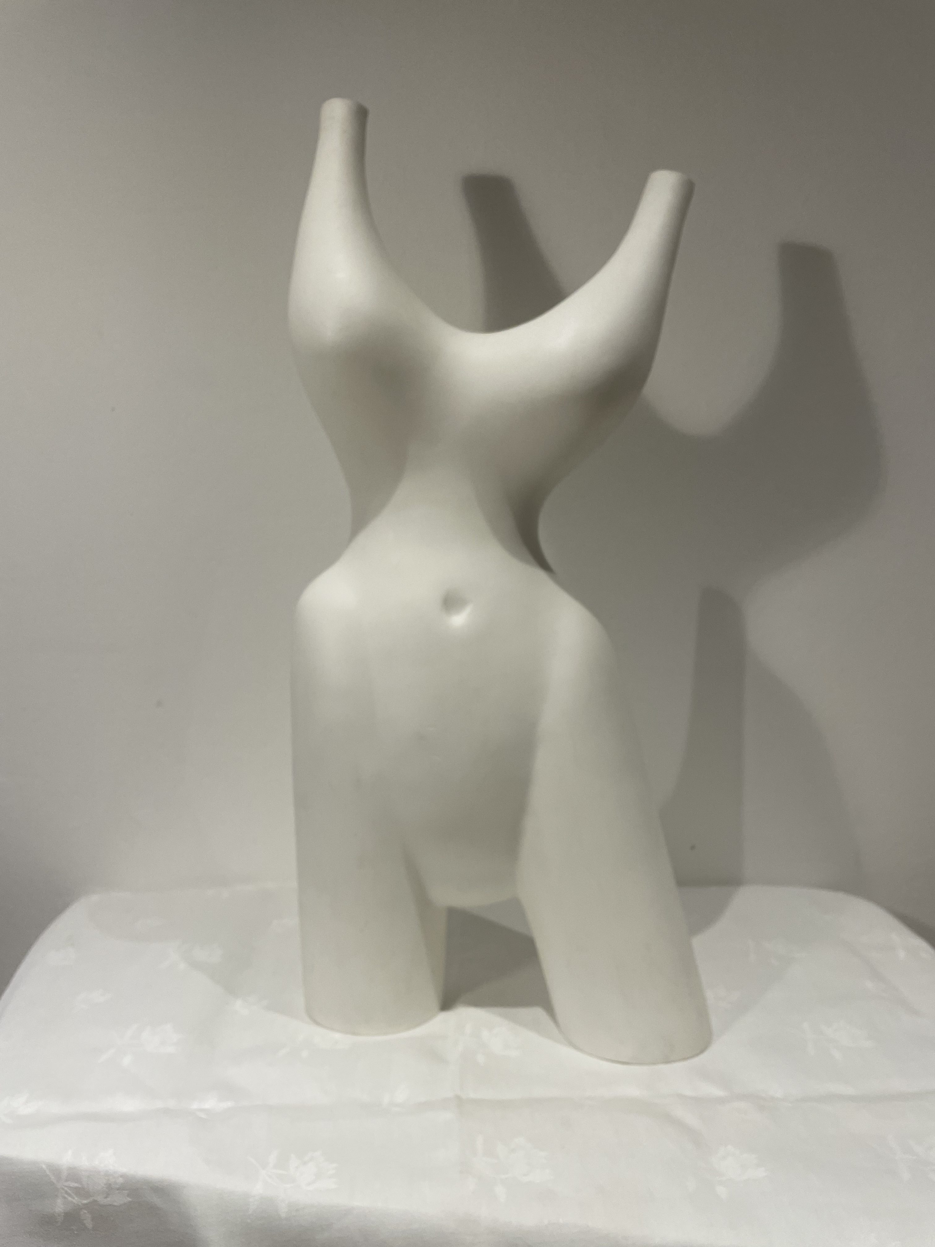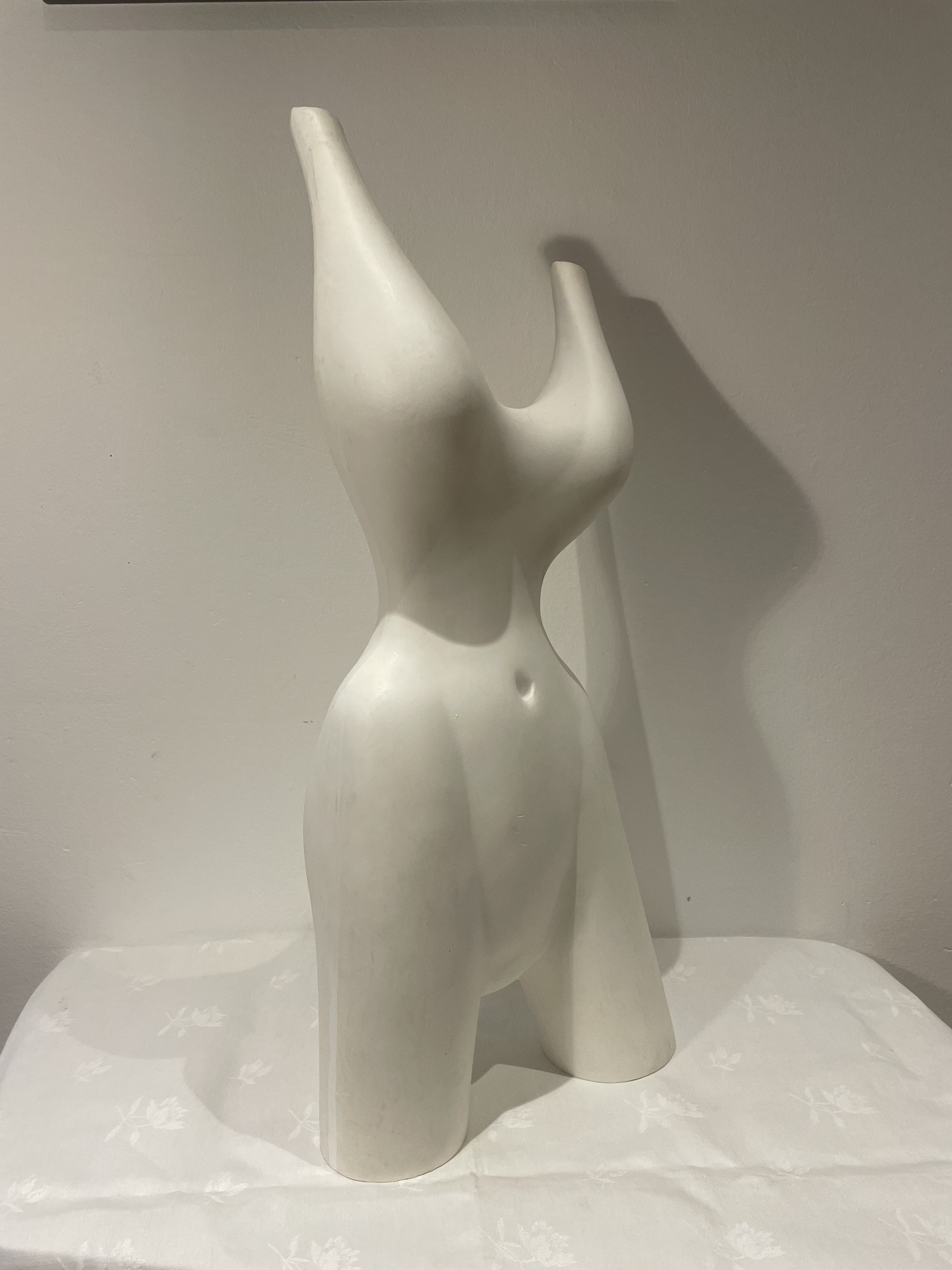 Buste de présentation de lingerie vintage en fibre plastique, et aux lignes sculpturales.
