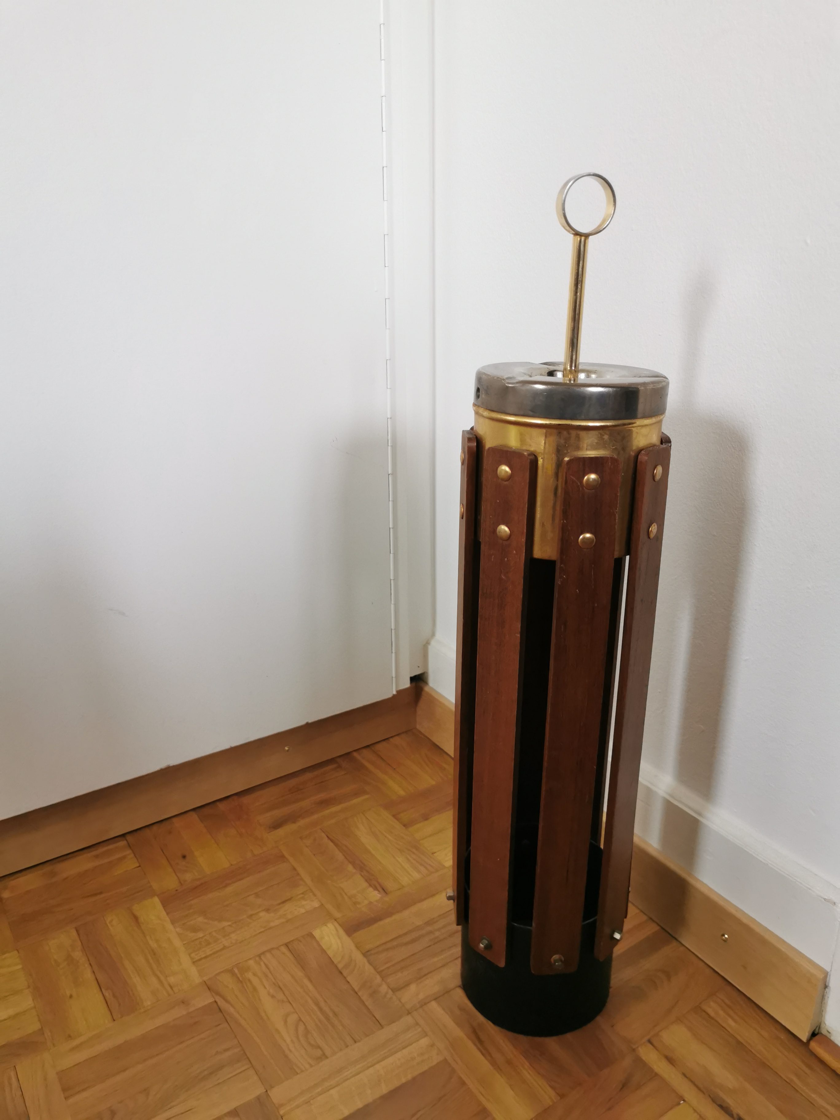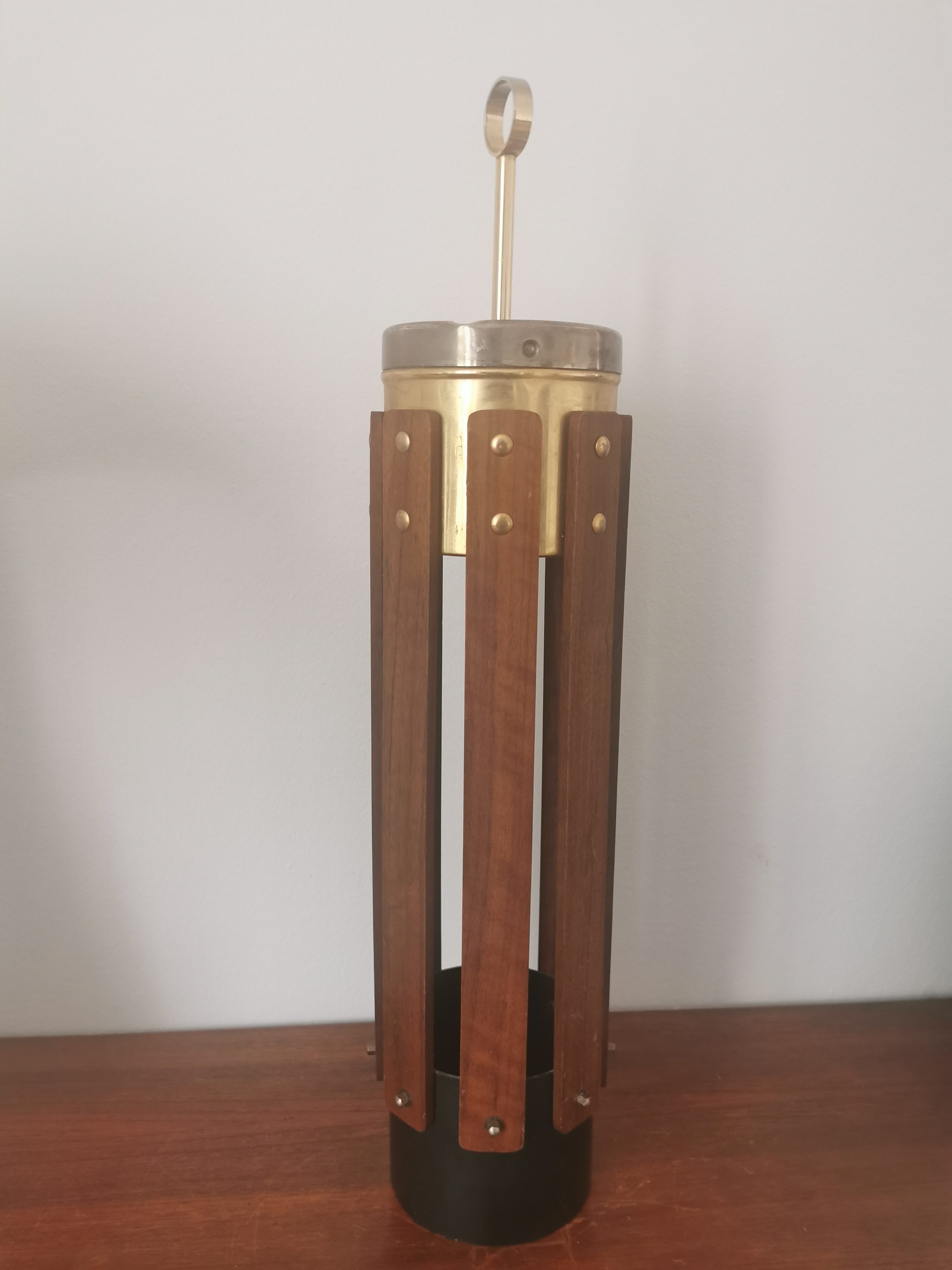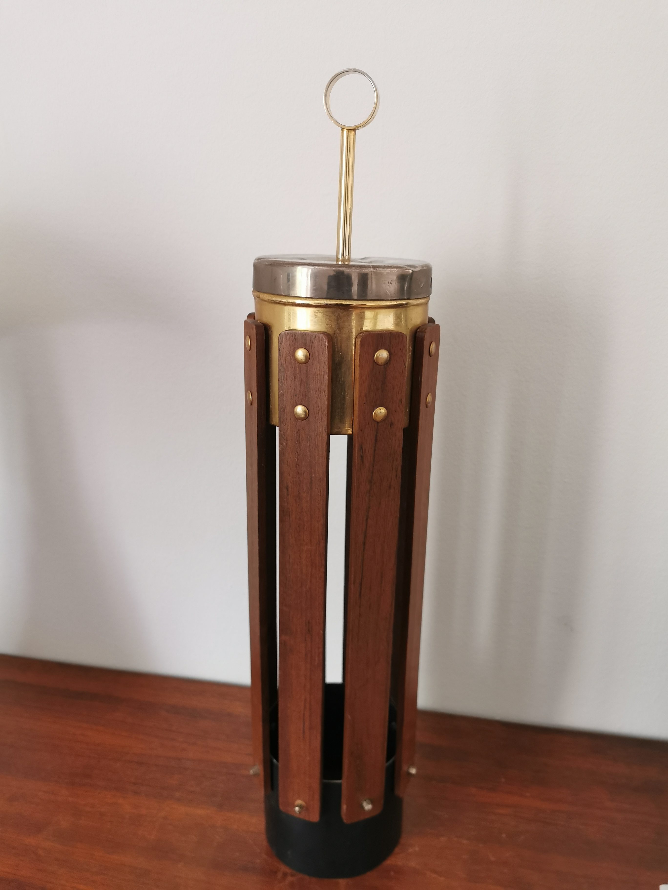 Produit venduBeau cendrier sur pied des années 60 en teck et laiton