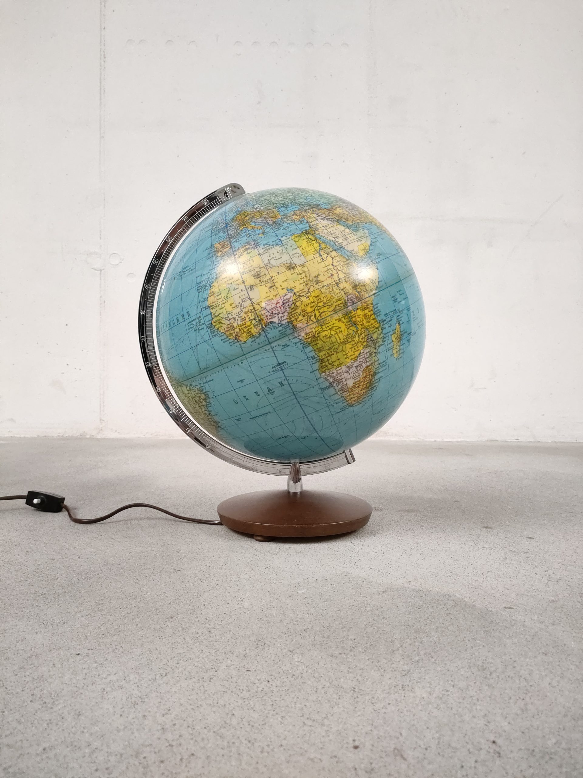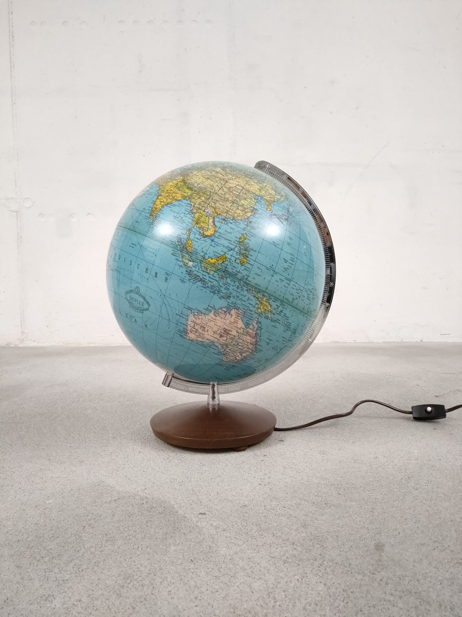 Produit venduGlobe terrestre lumineux en plastique avec socle en bois. Produit dans les années 80 par Columbus Verlag Paul Ostergaard. Il fonctionne parfaitement.