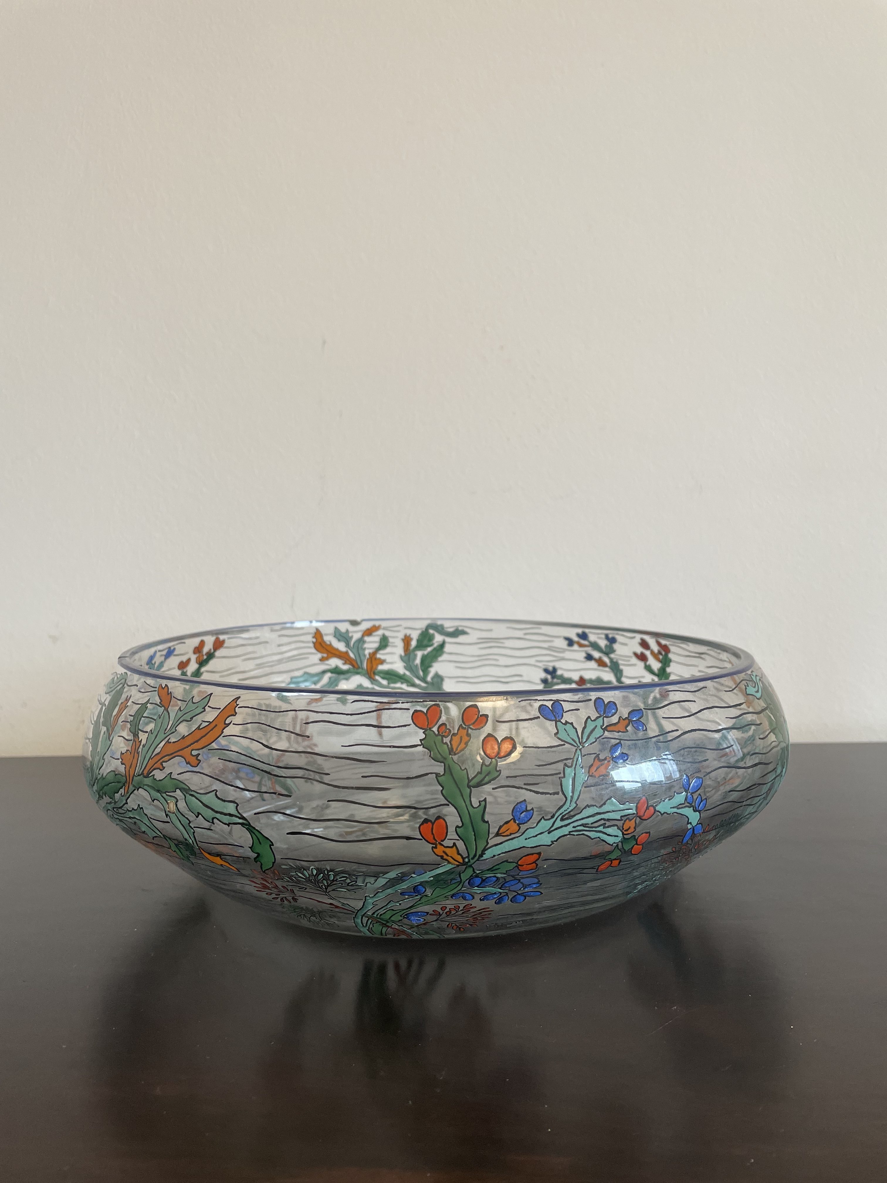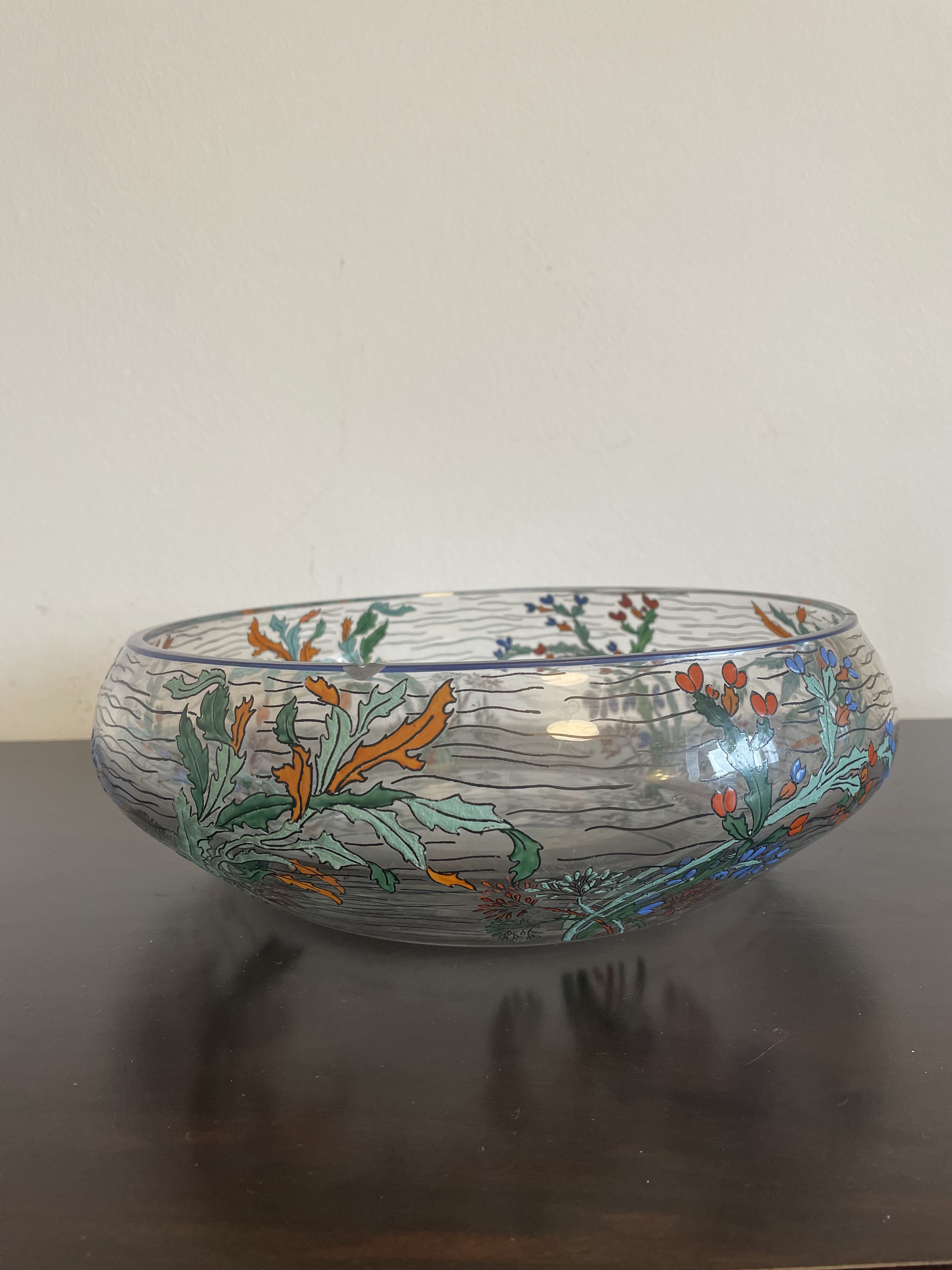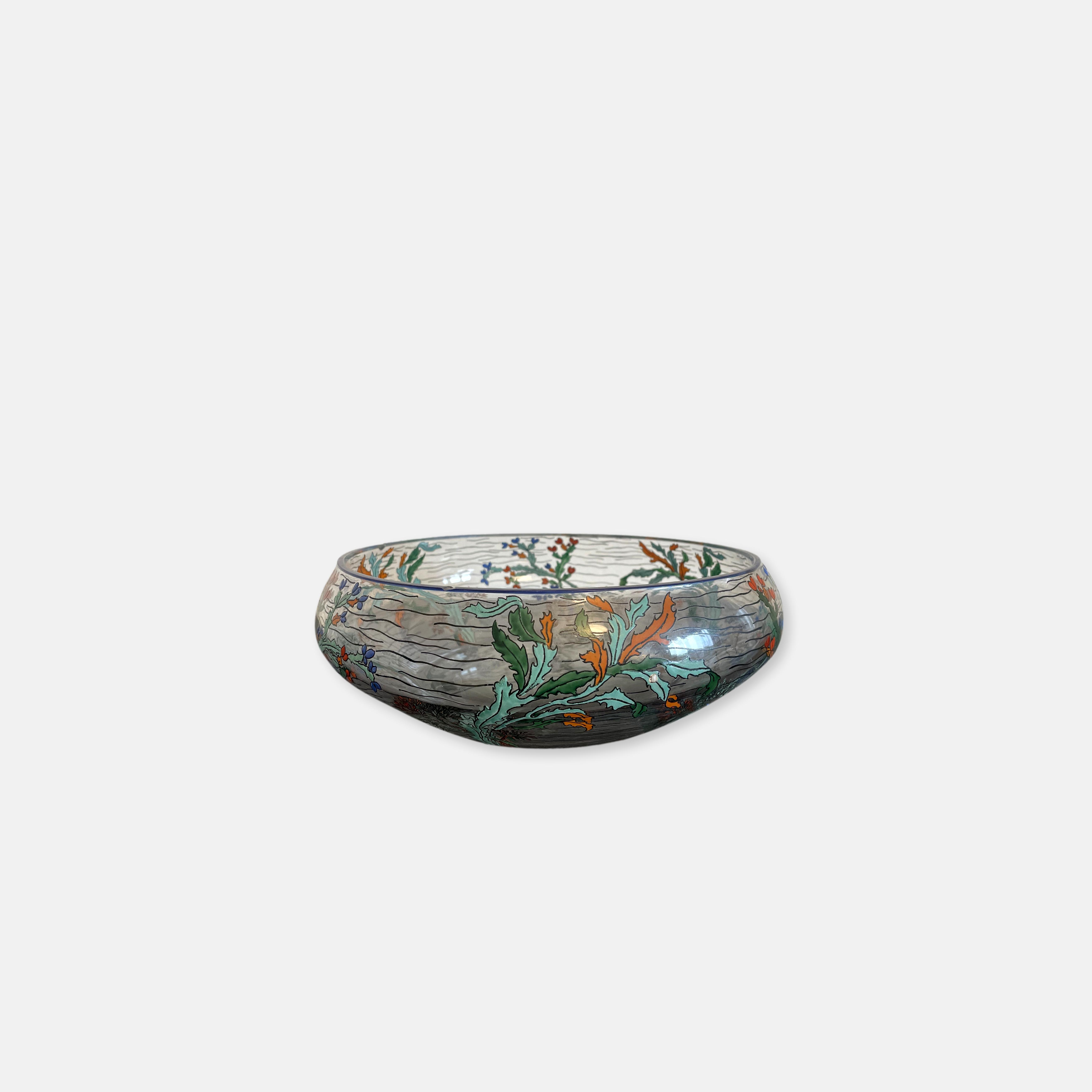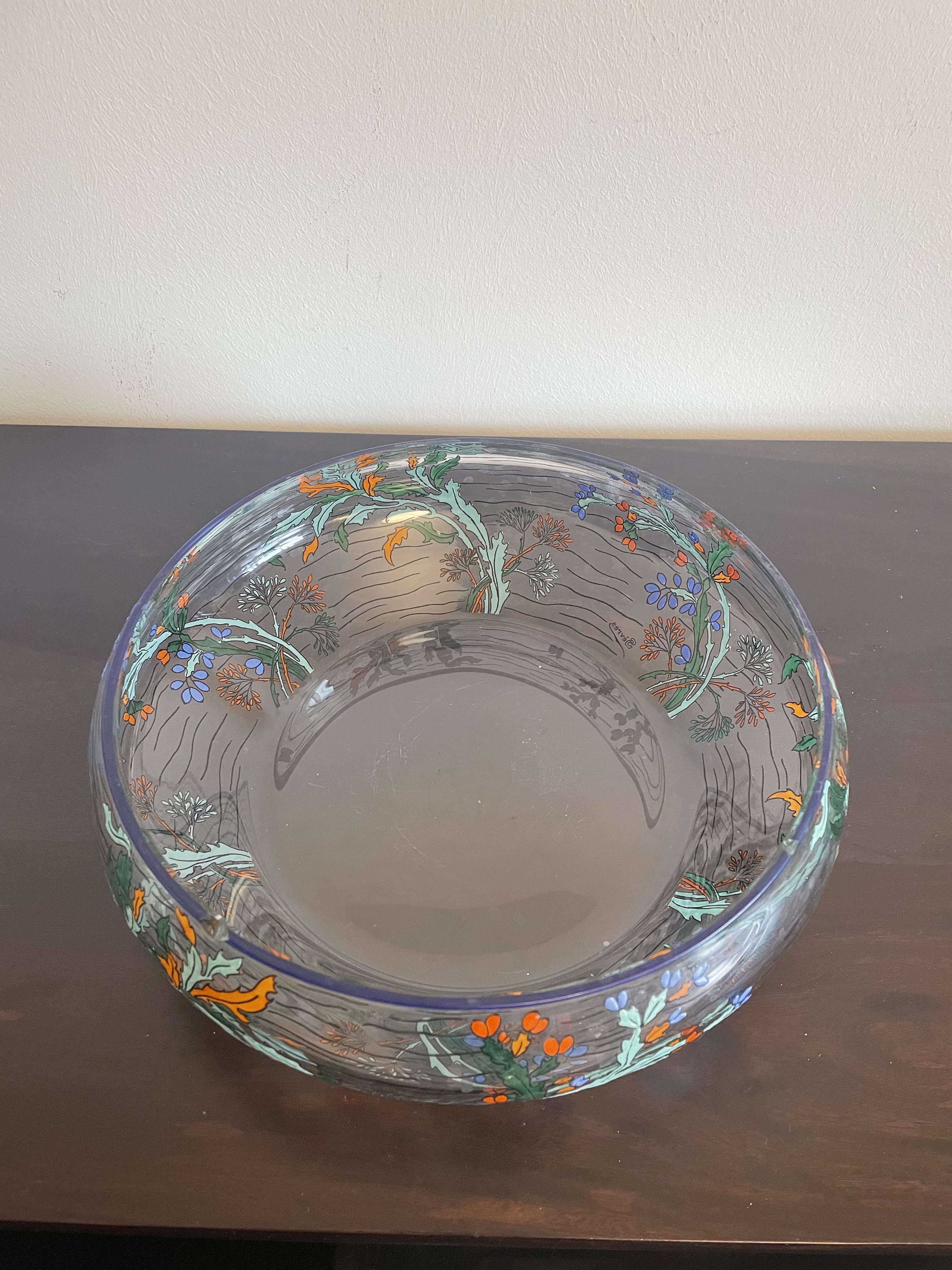 Produit venduGrande coupe en verre de la manufacture de Sèvres en France, avec décor végétal.