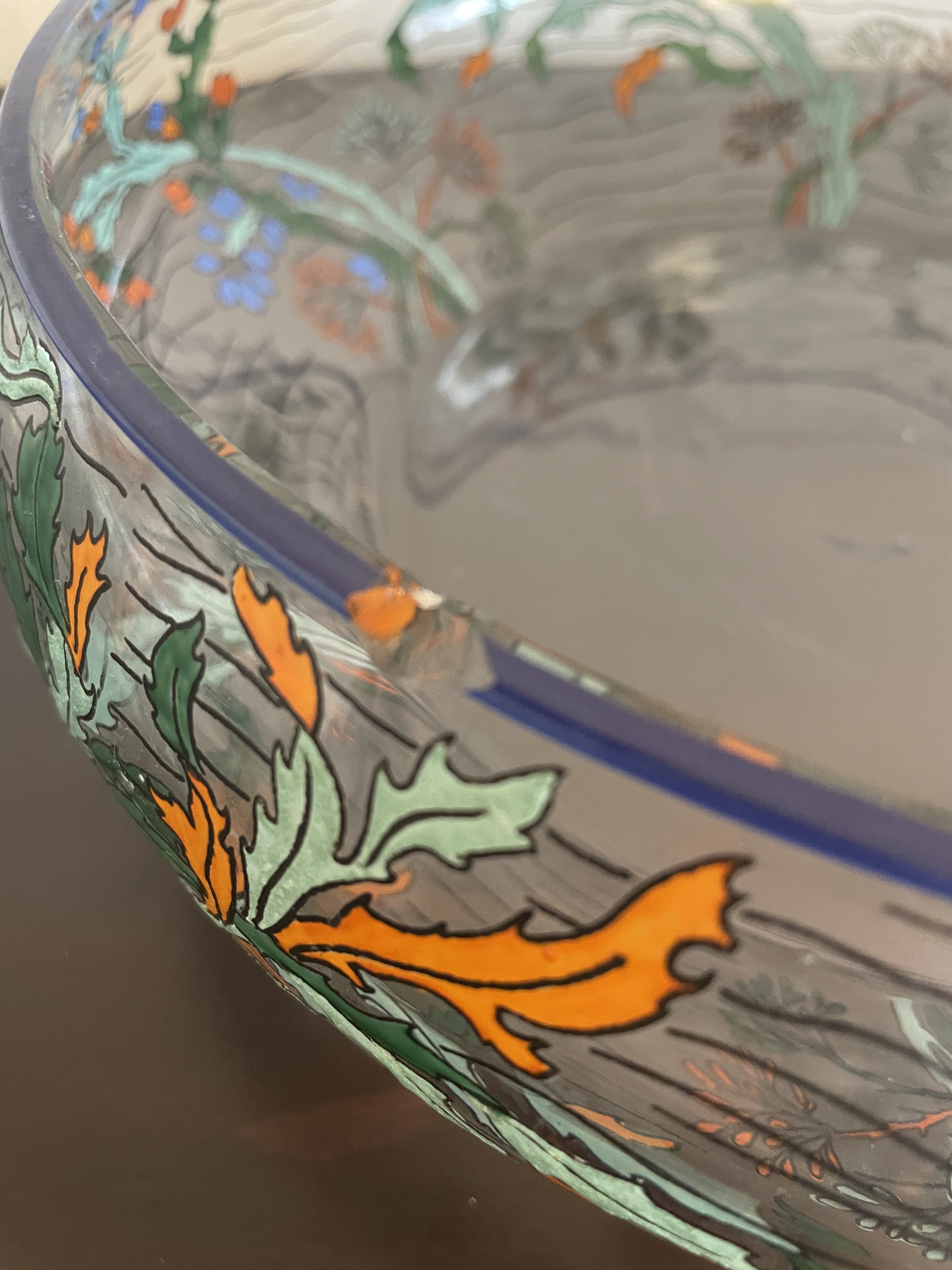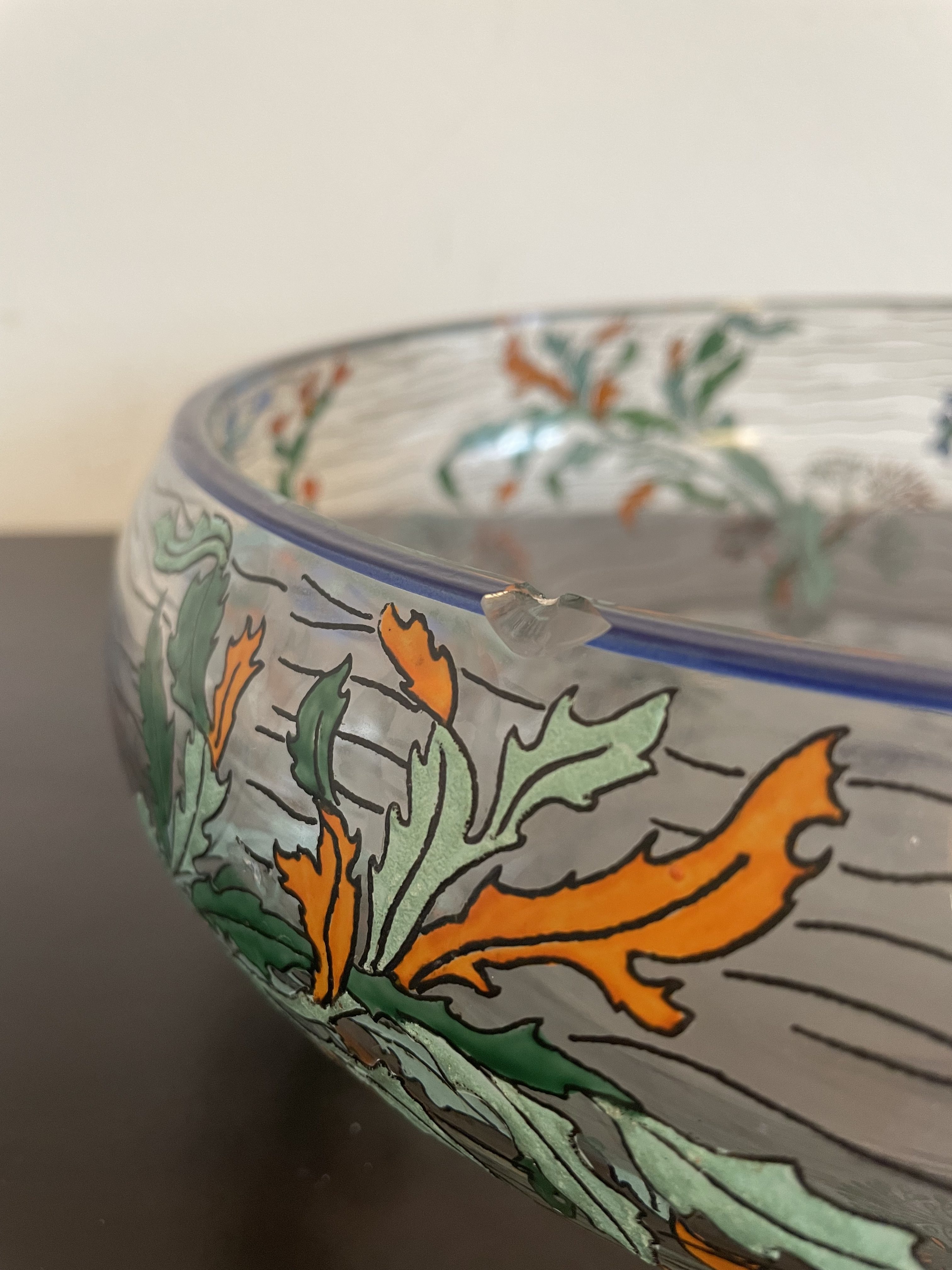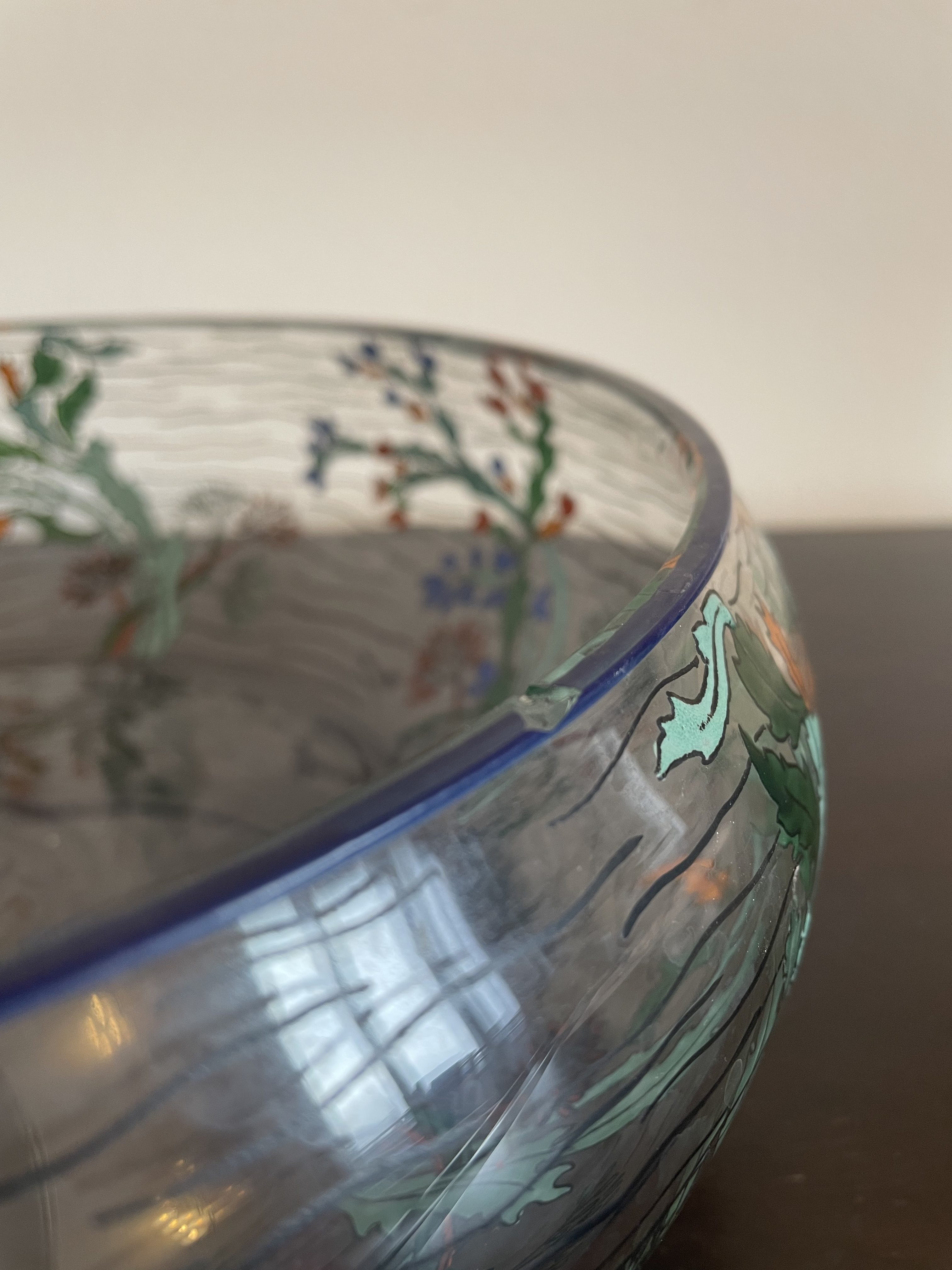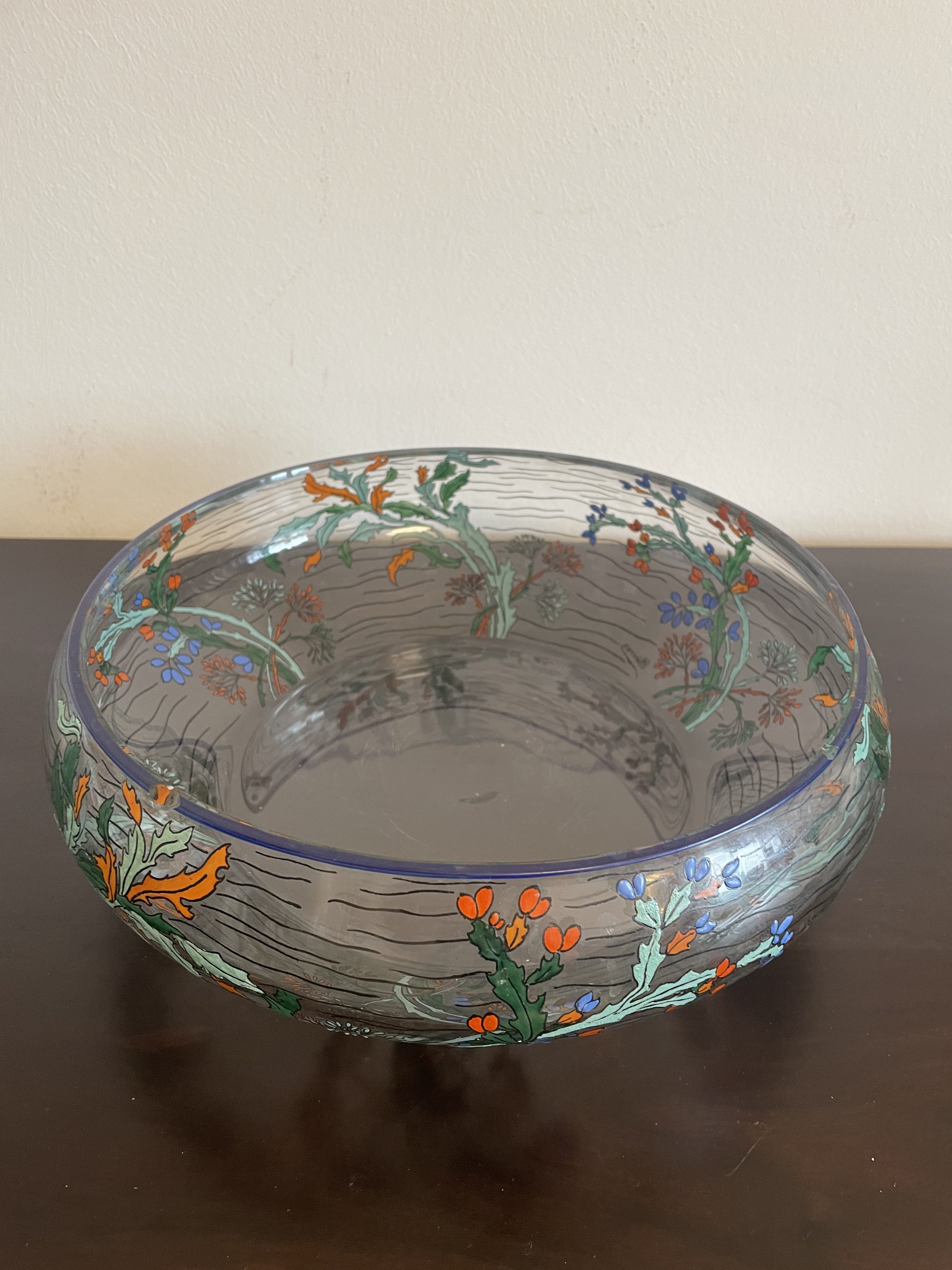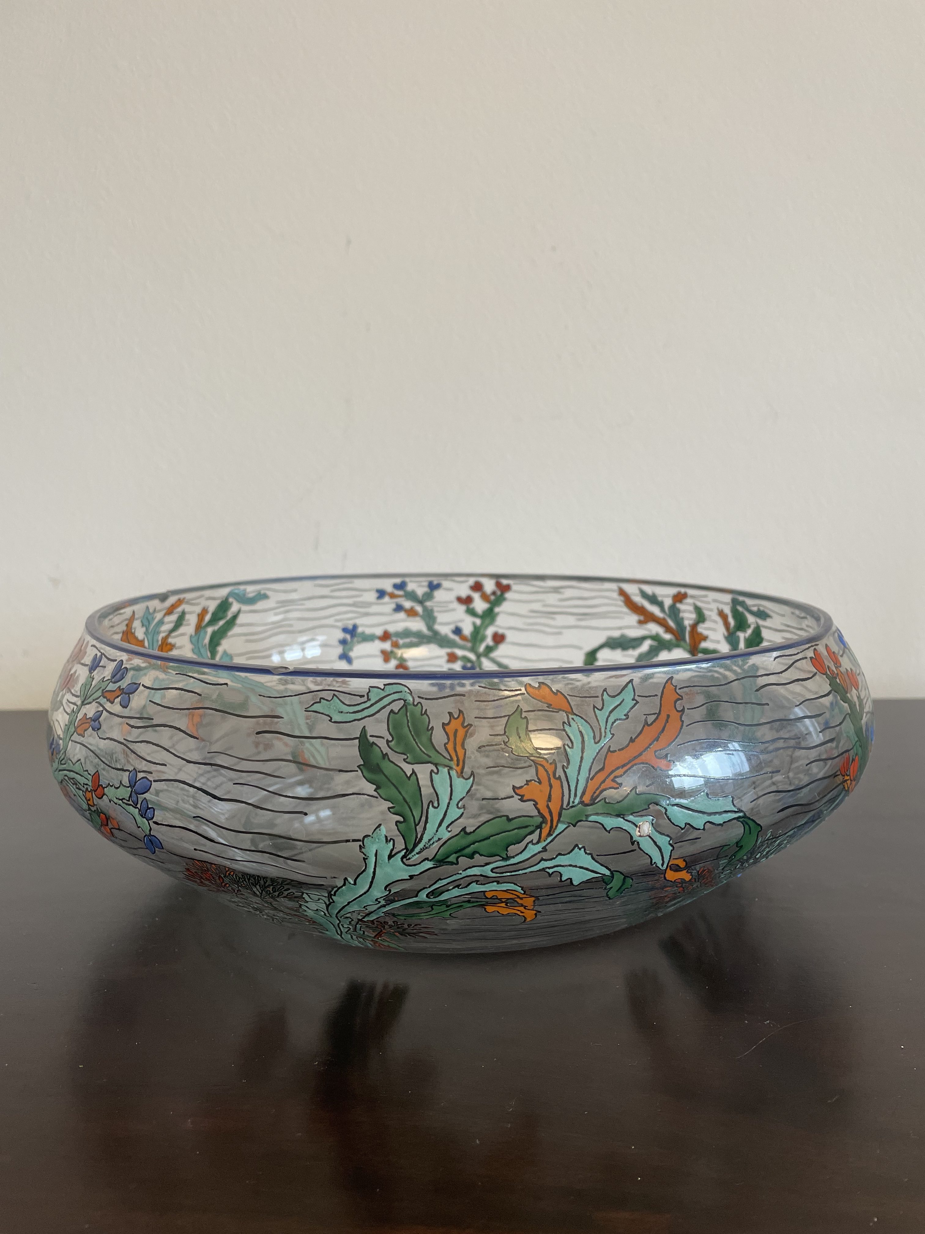 Produit venduGrande coupe en verre de la manufacture de Sèvres en France, avec décor végétal.