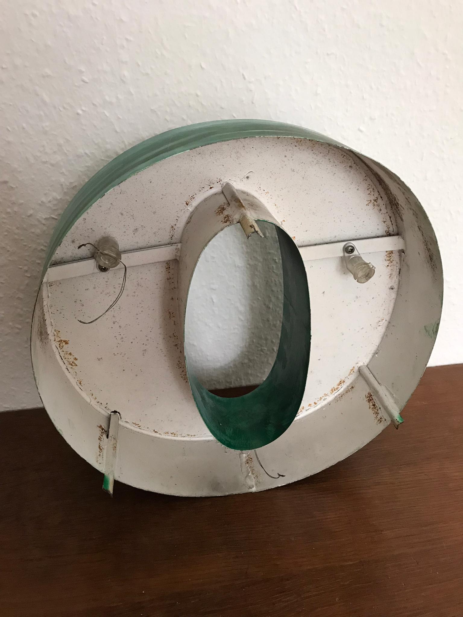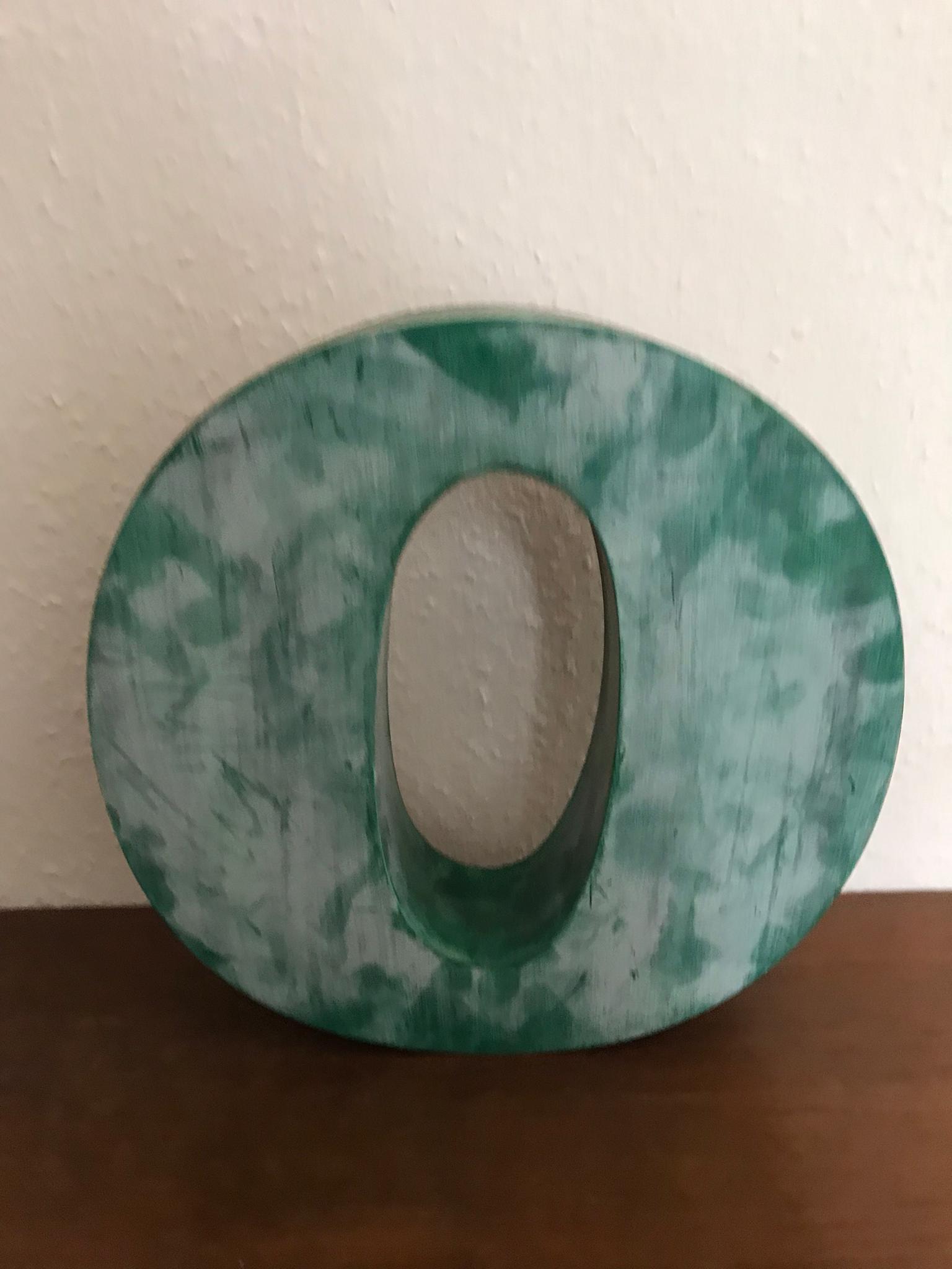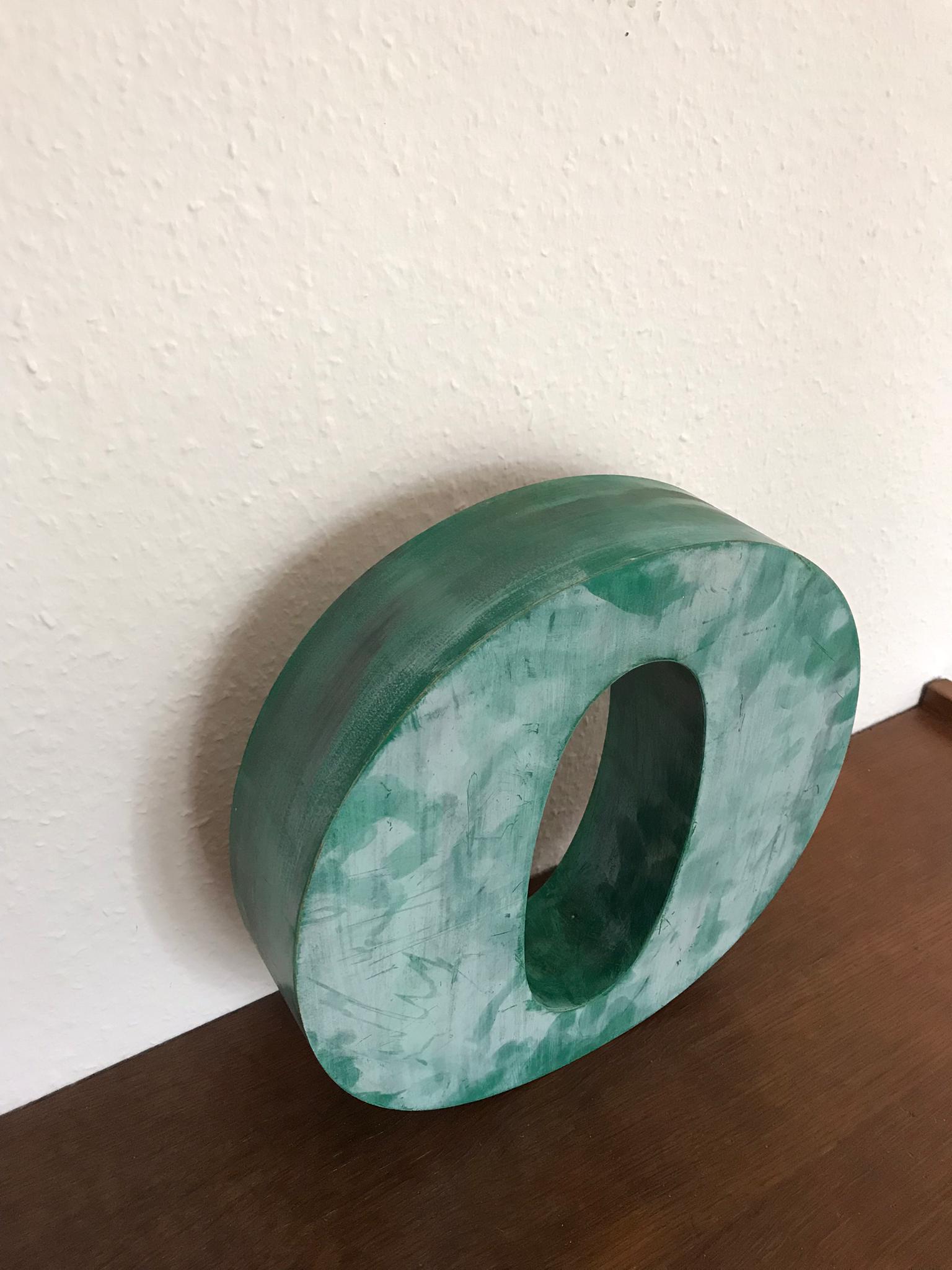 Produit venduLettre “O” d’ancienne enseigne de couleur verte. La lettre est creuse de l’autre côté.