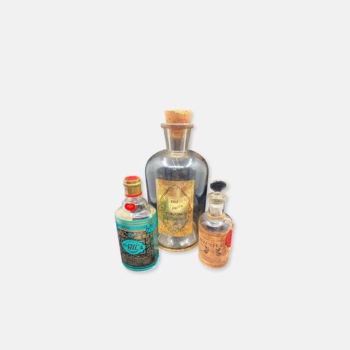 Joli lot de 3 flacons anciens. Parfum et alcool.