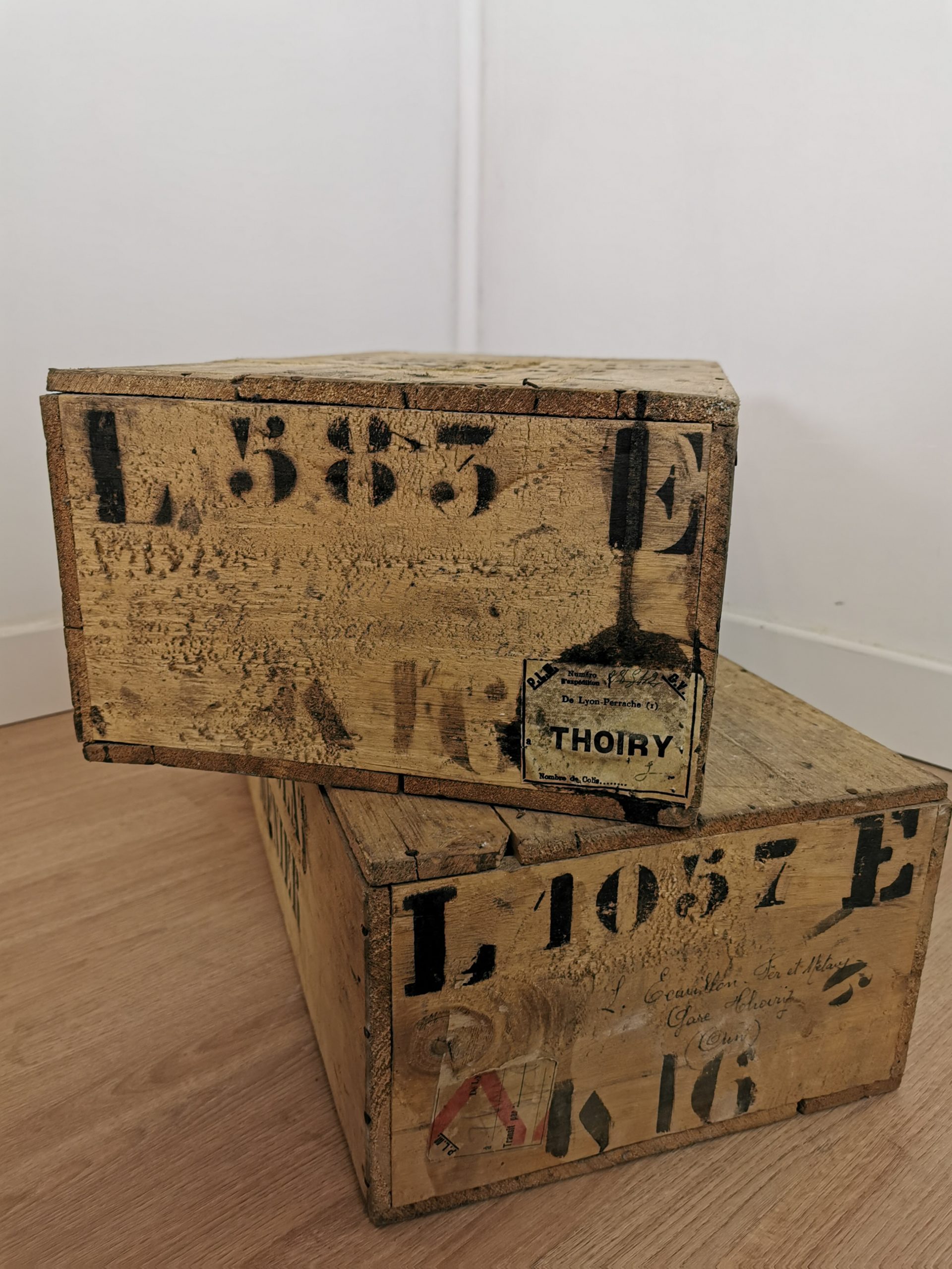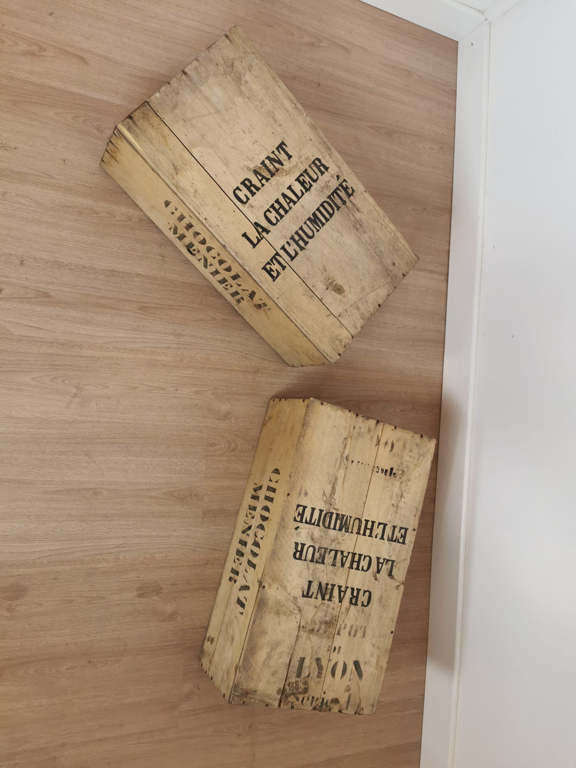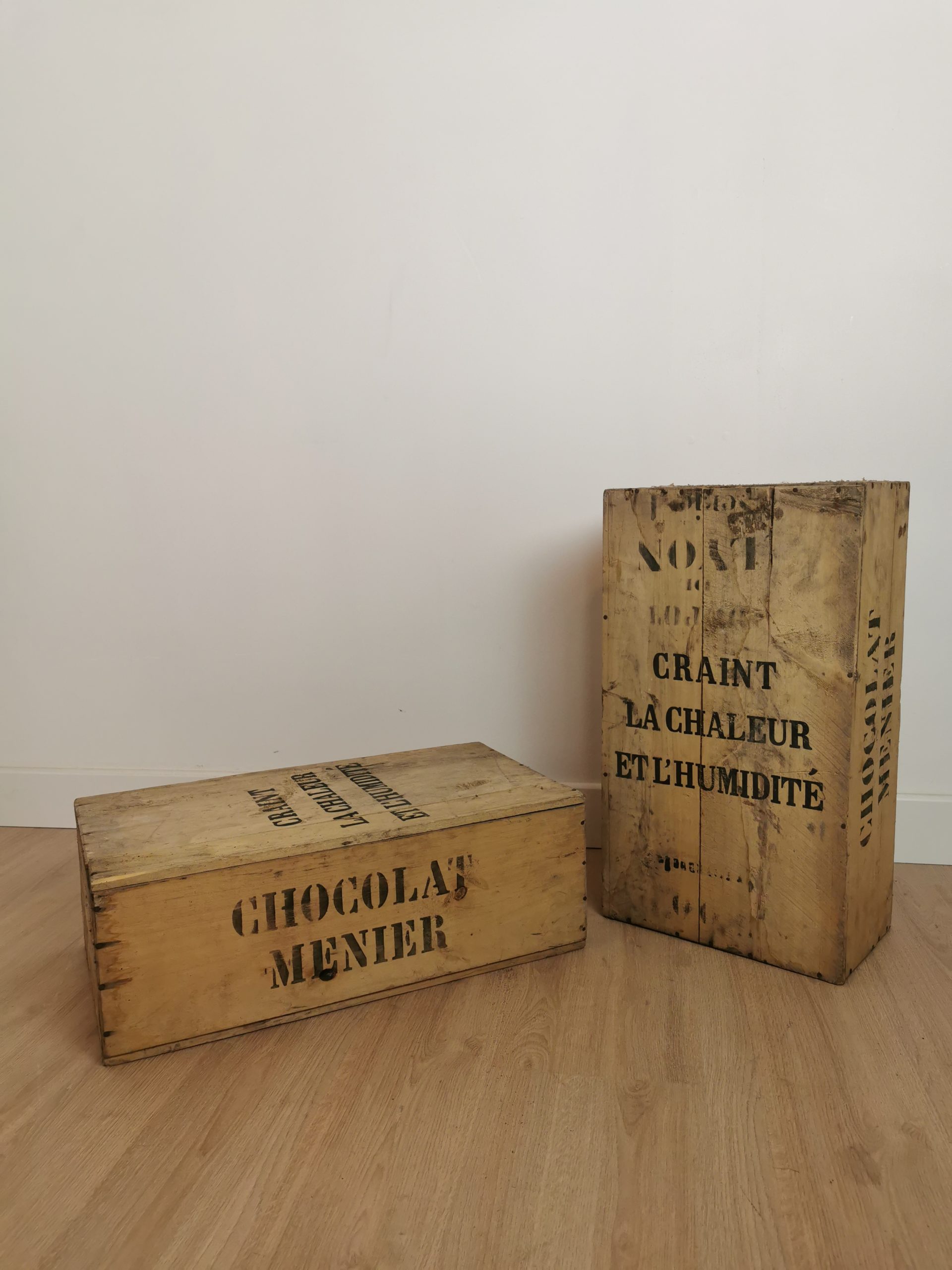 Paire d’anciennes caisses Chocolat Menier