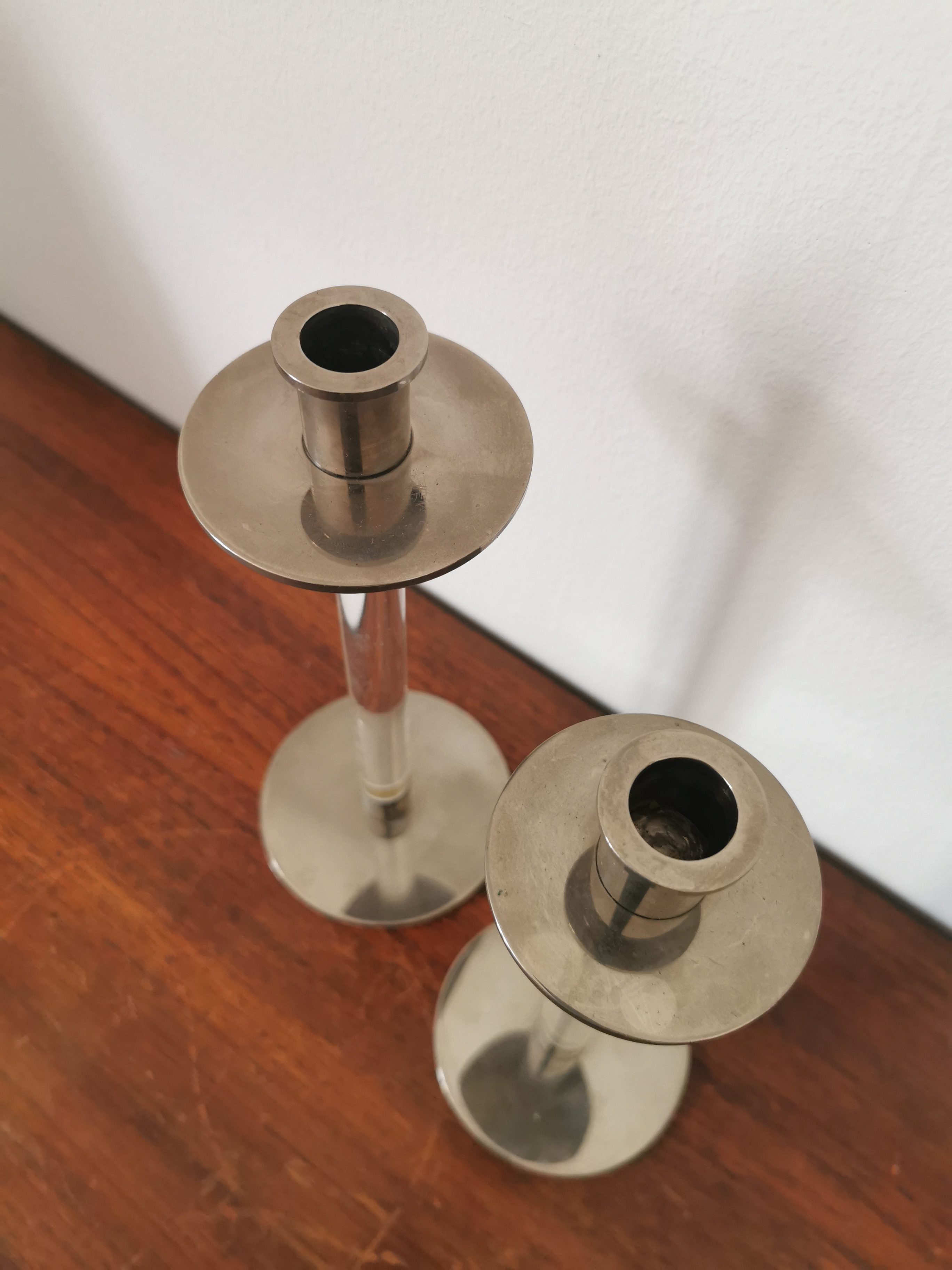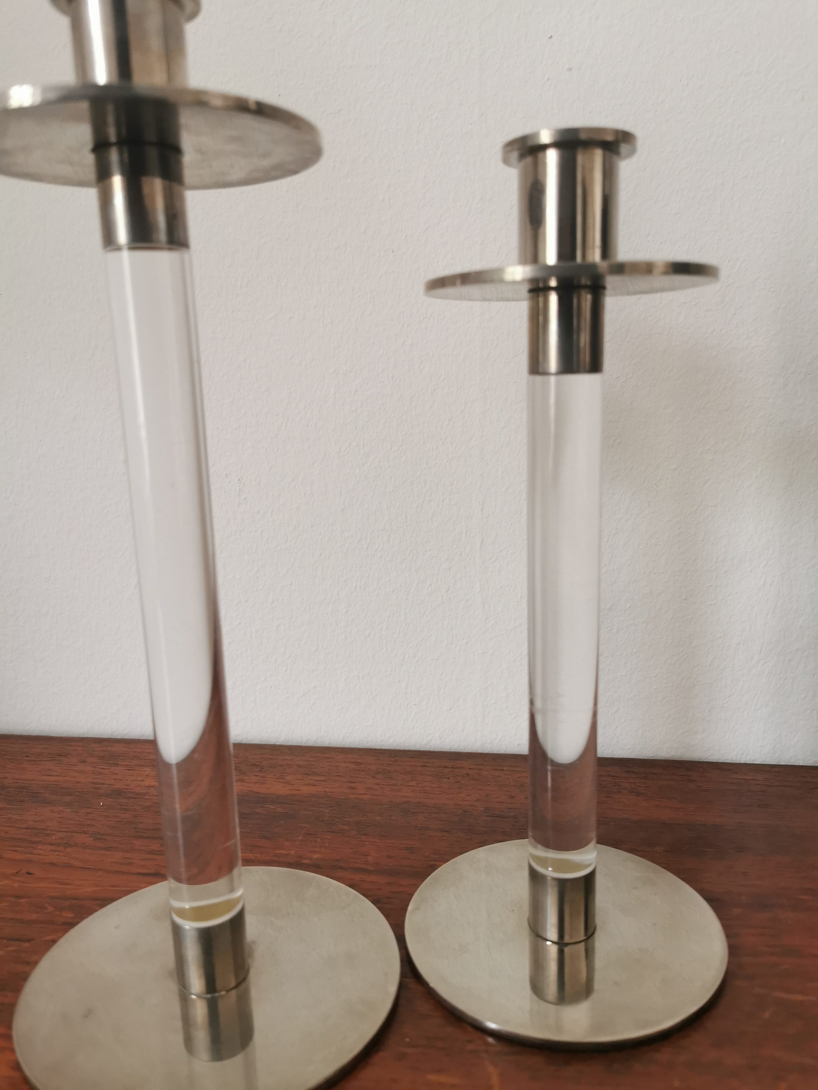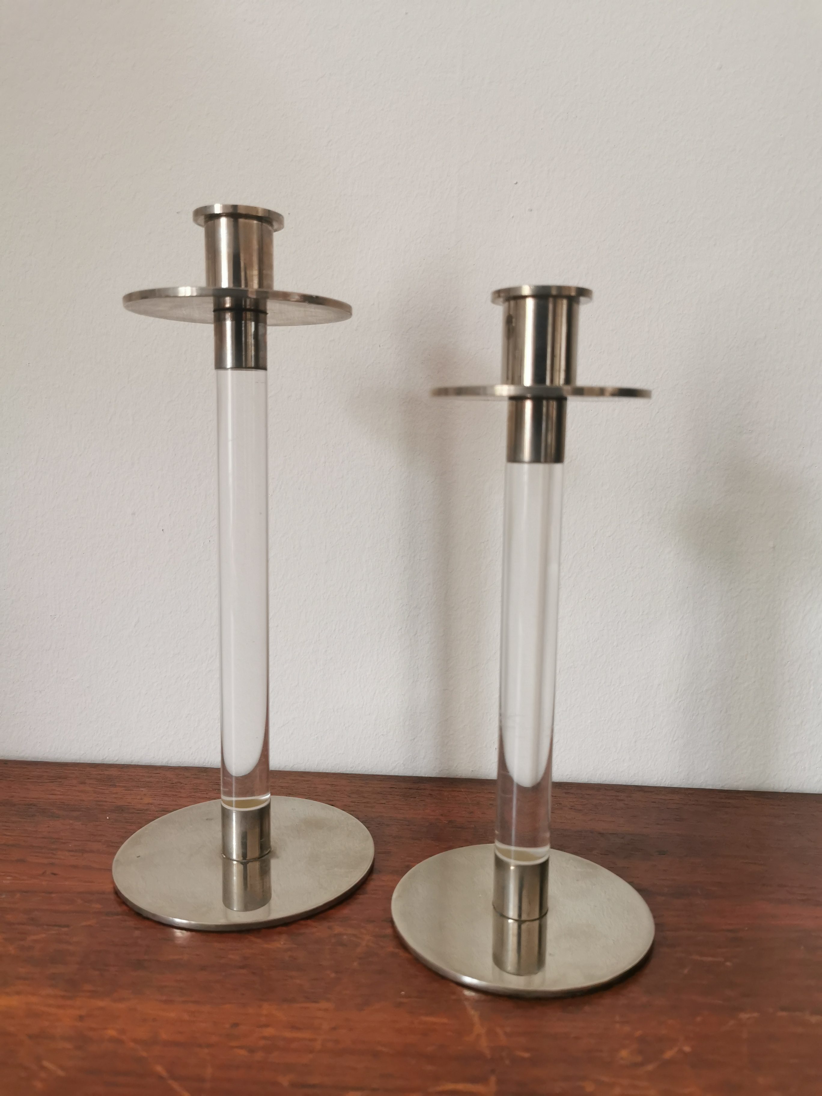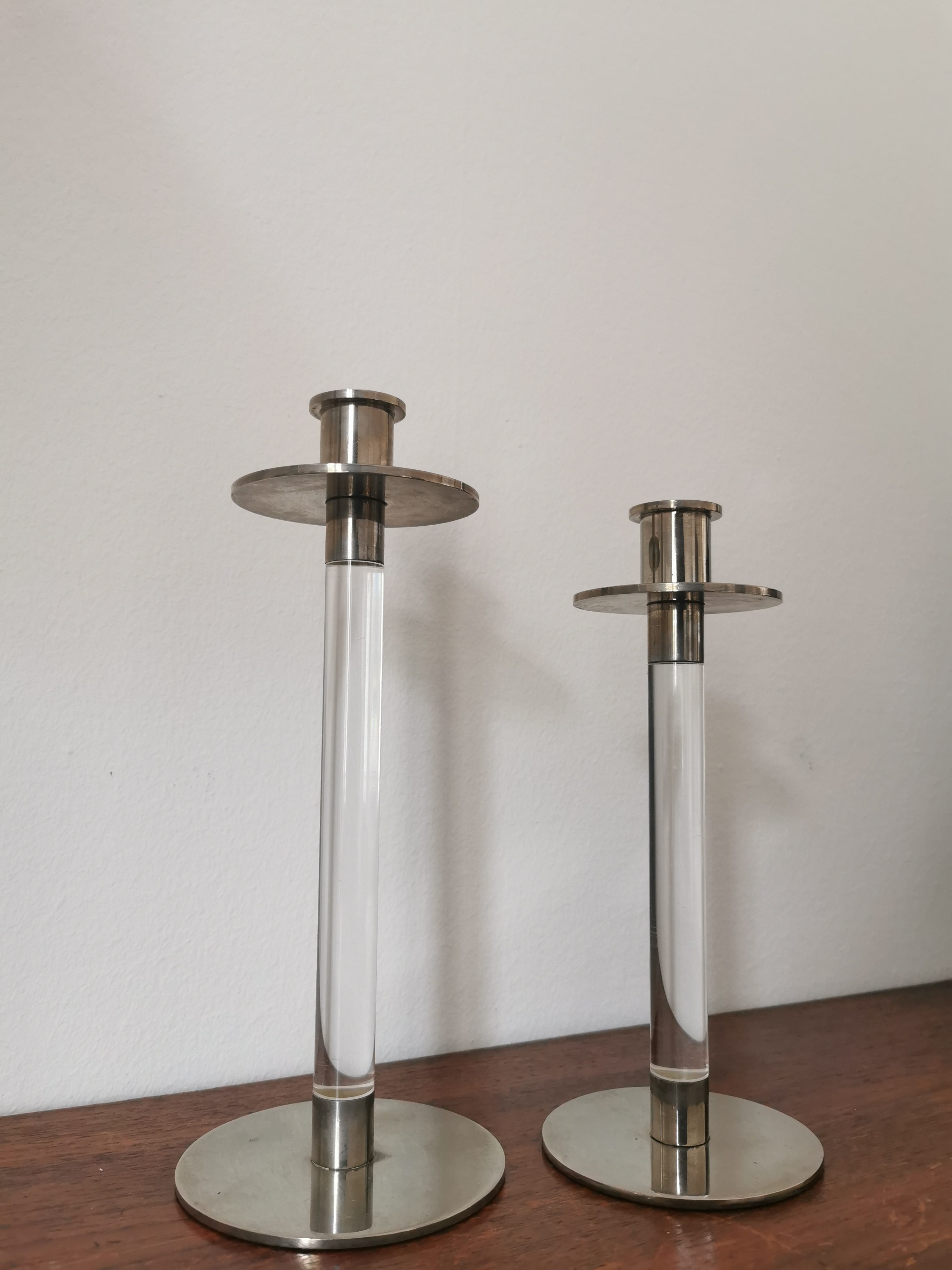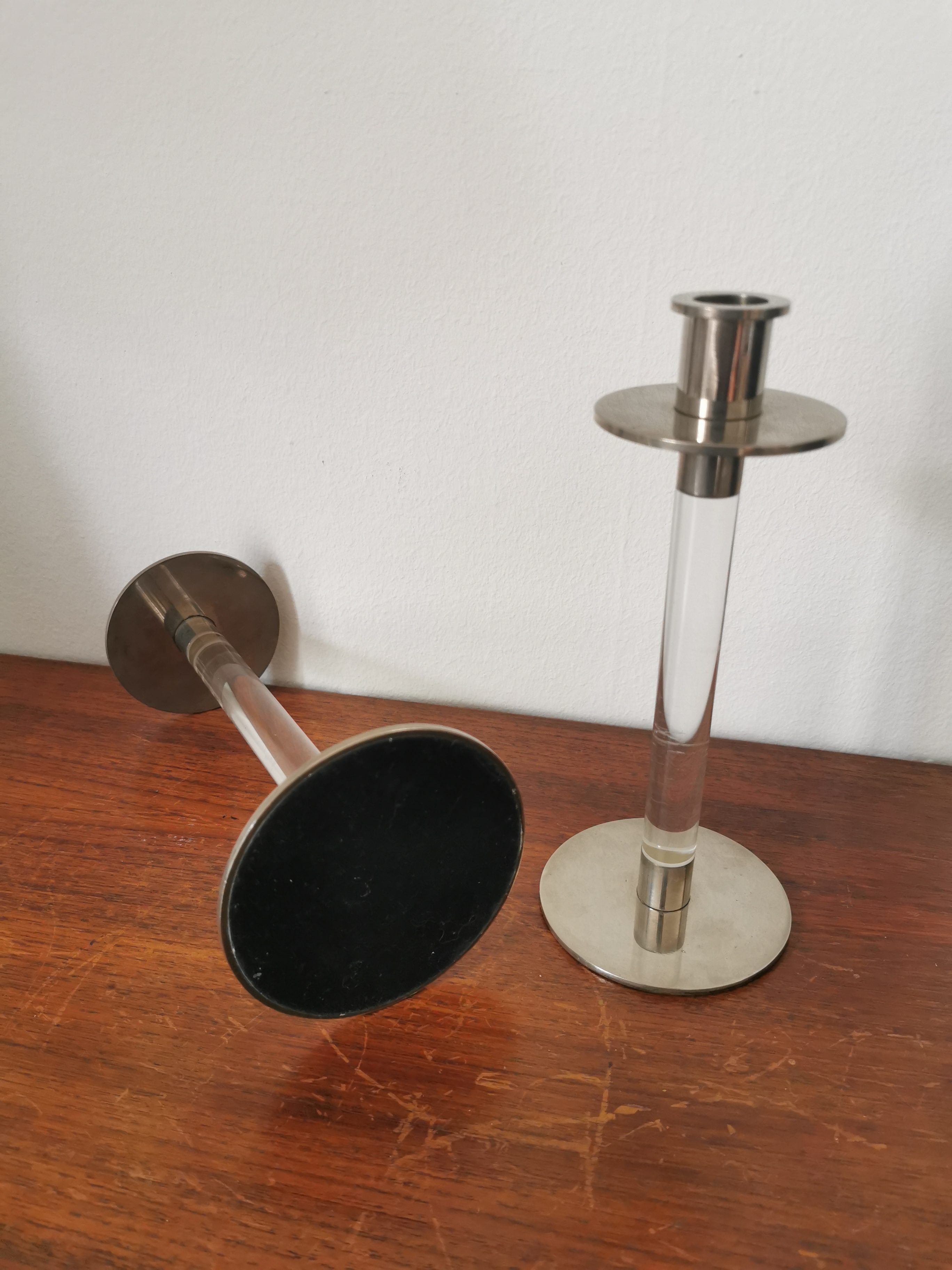 Produit venduPaire de bougeoirs des années 70 en métal et plexiglass.