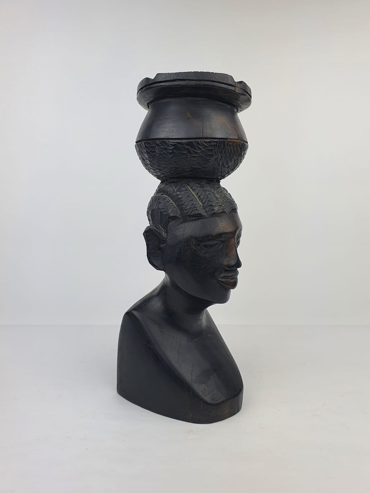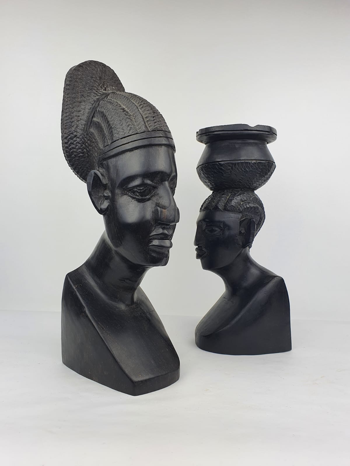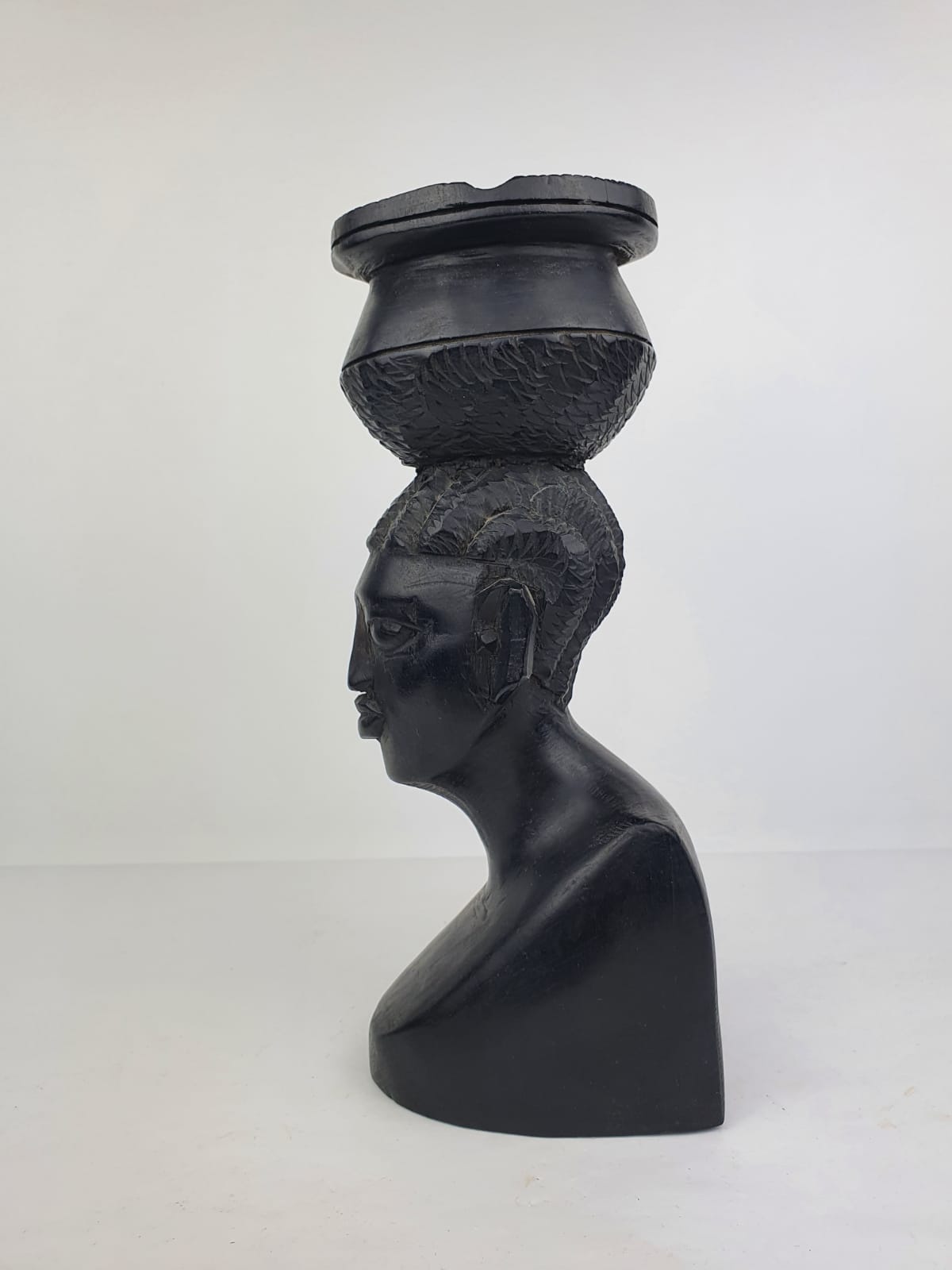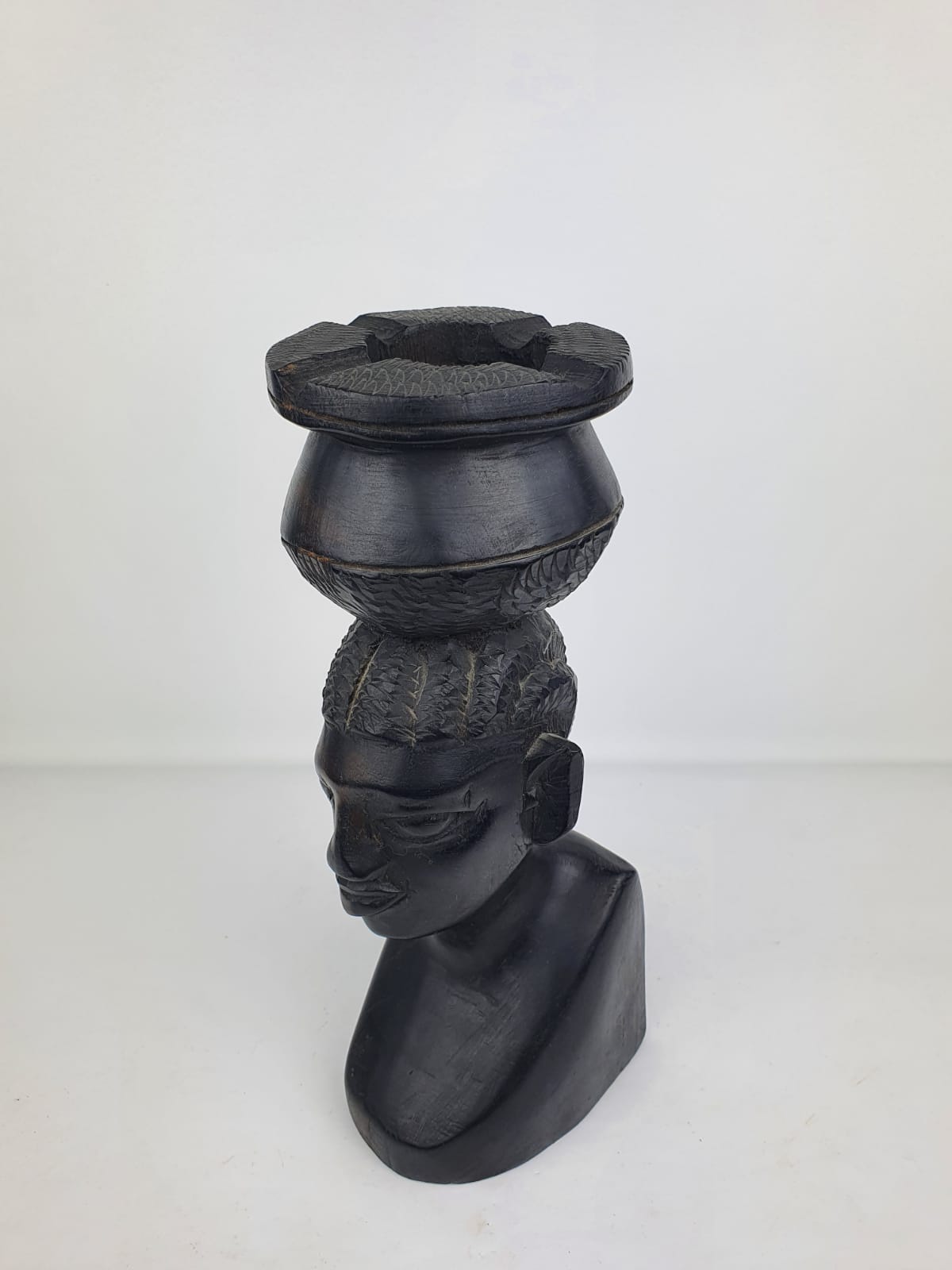 Sur une des têtes, il y a un trou qui peut servir de cendrier ou y mettre une petite plante.
