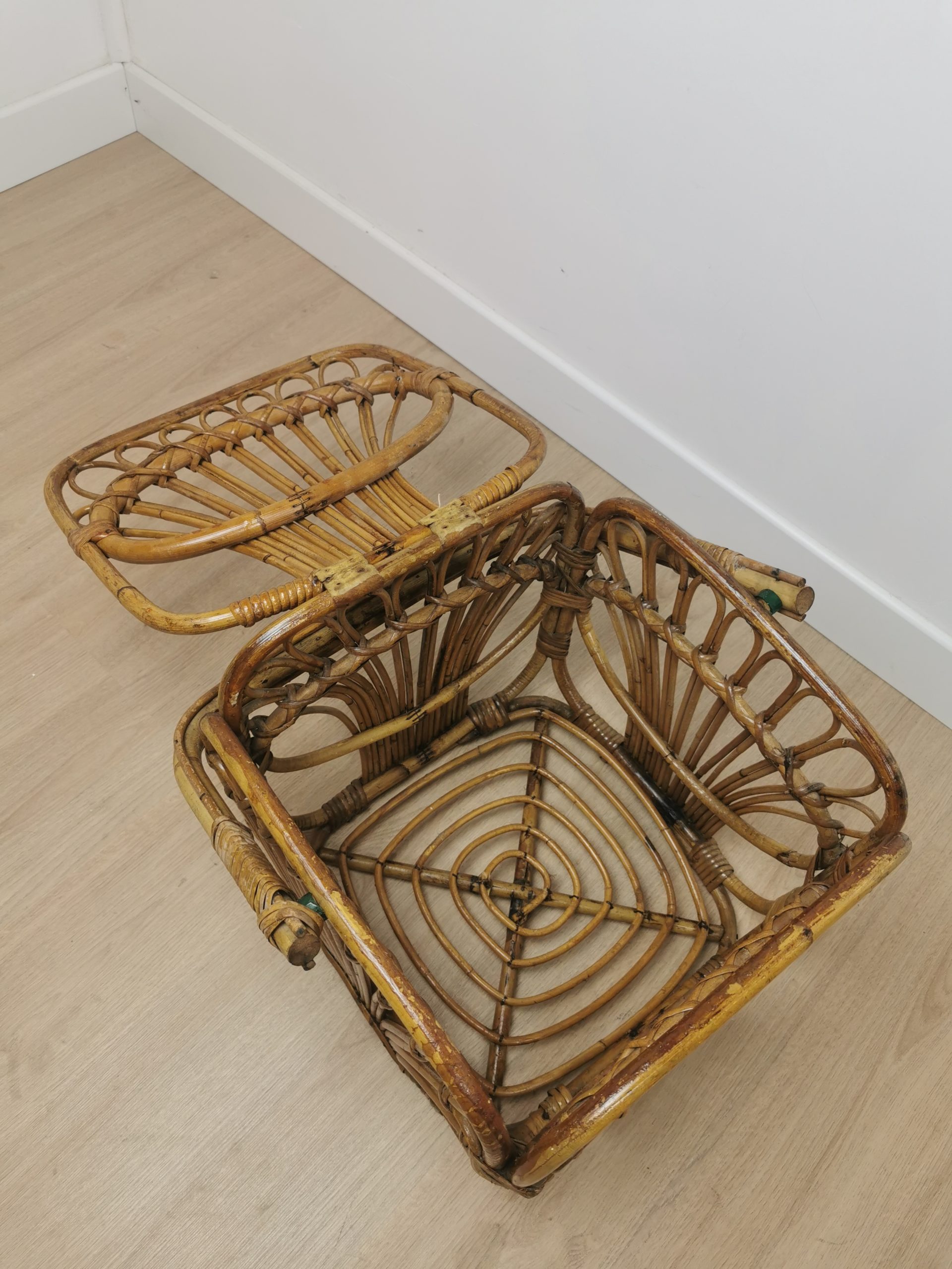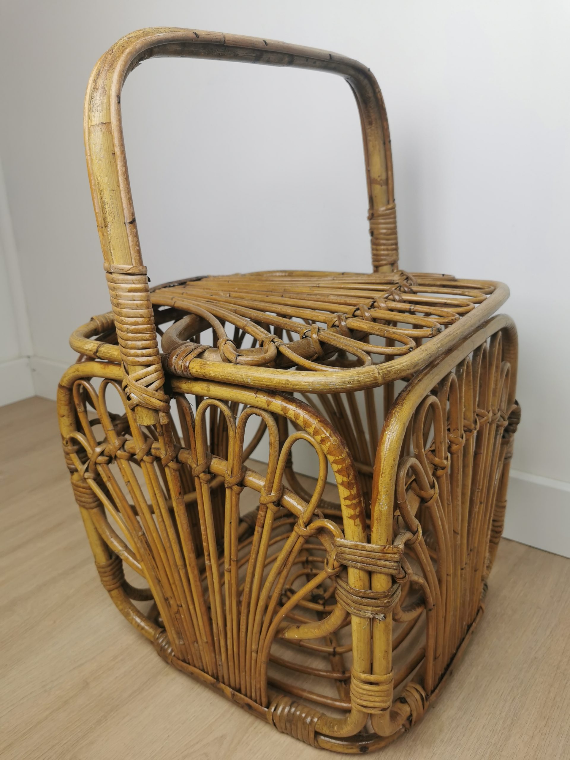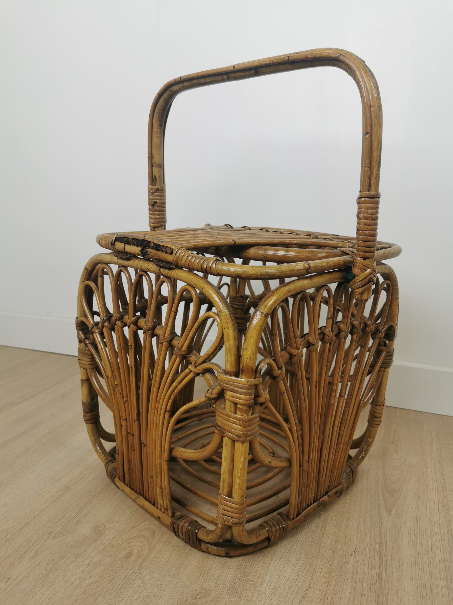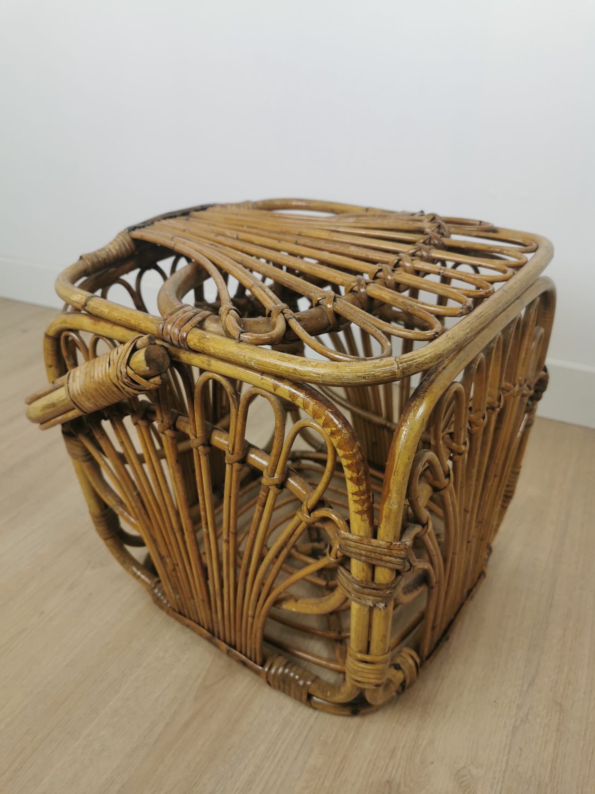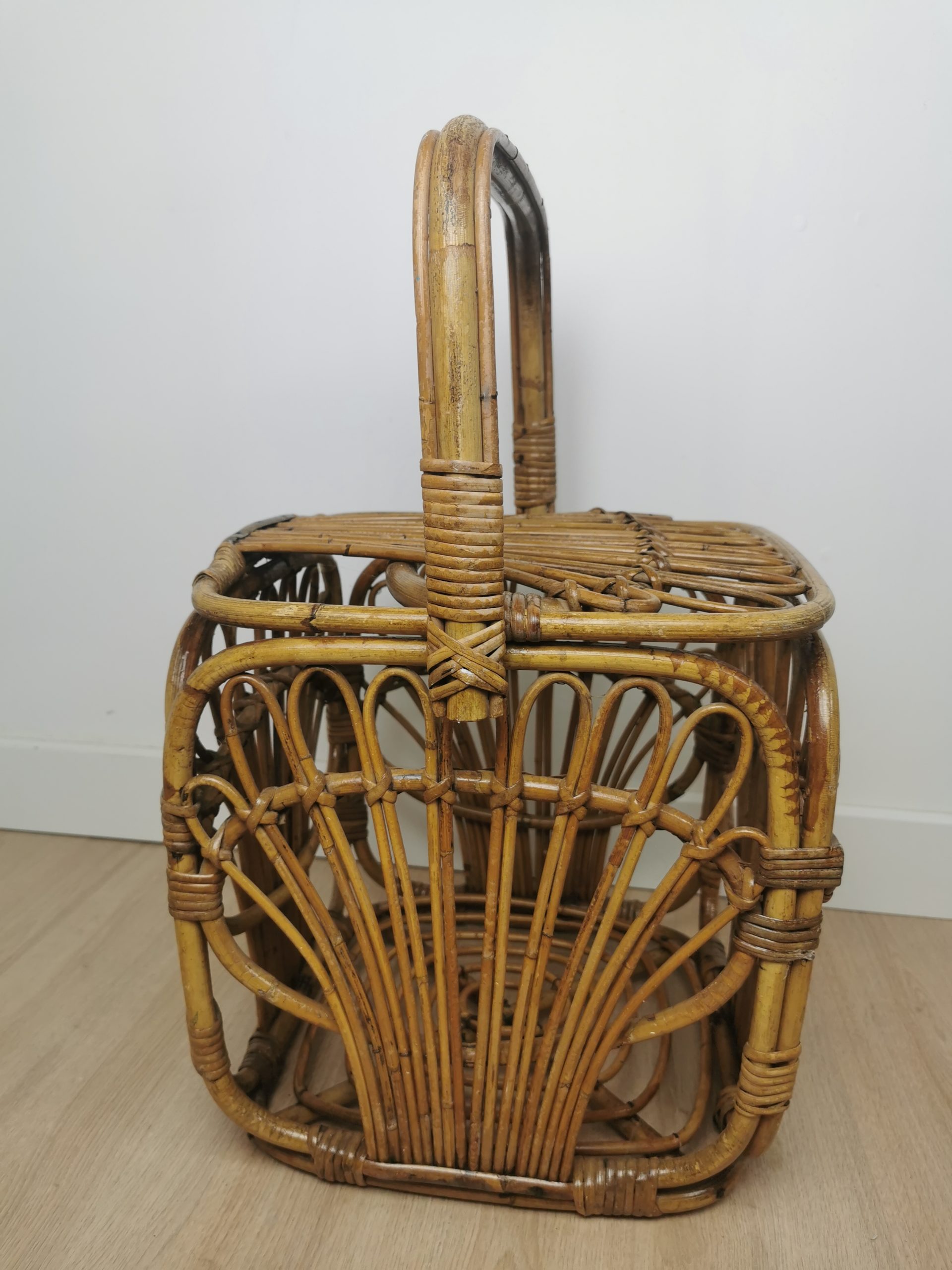 Produit venduPanier cubique en rotin avec patine du temps.