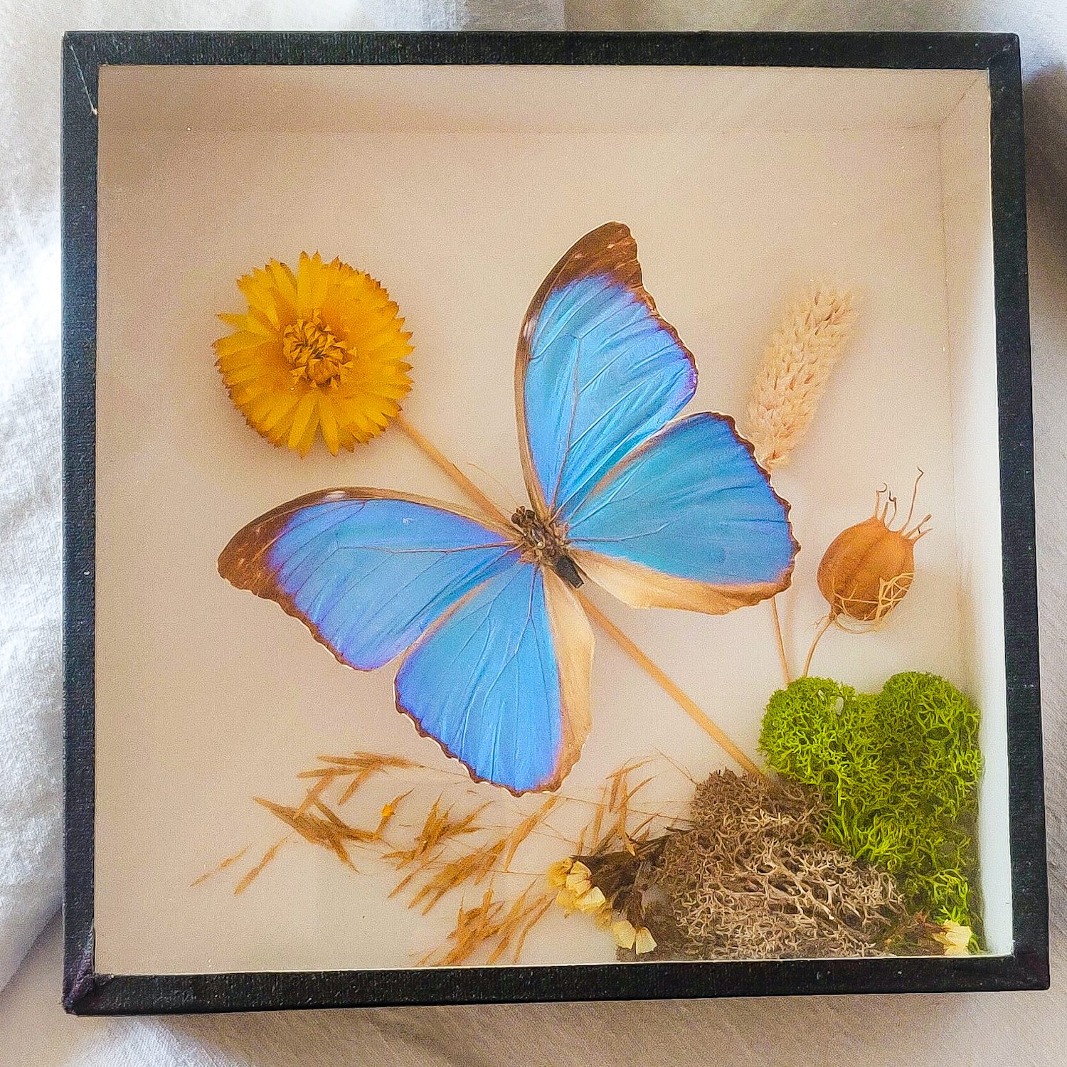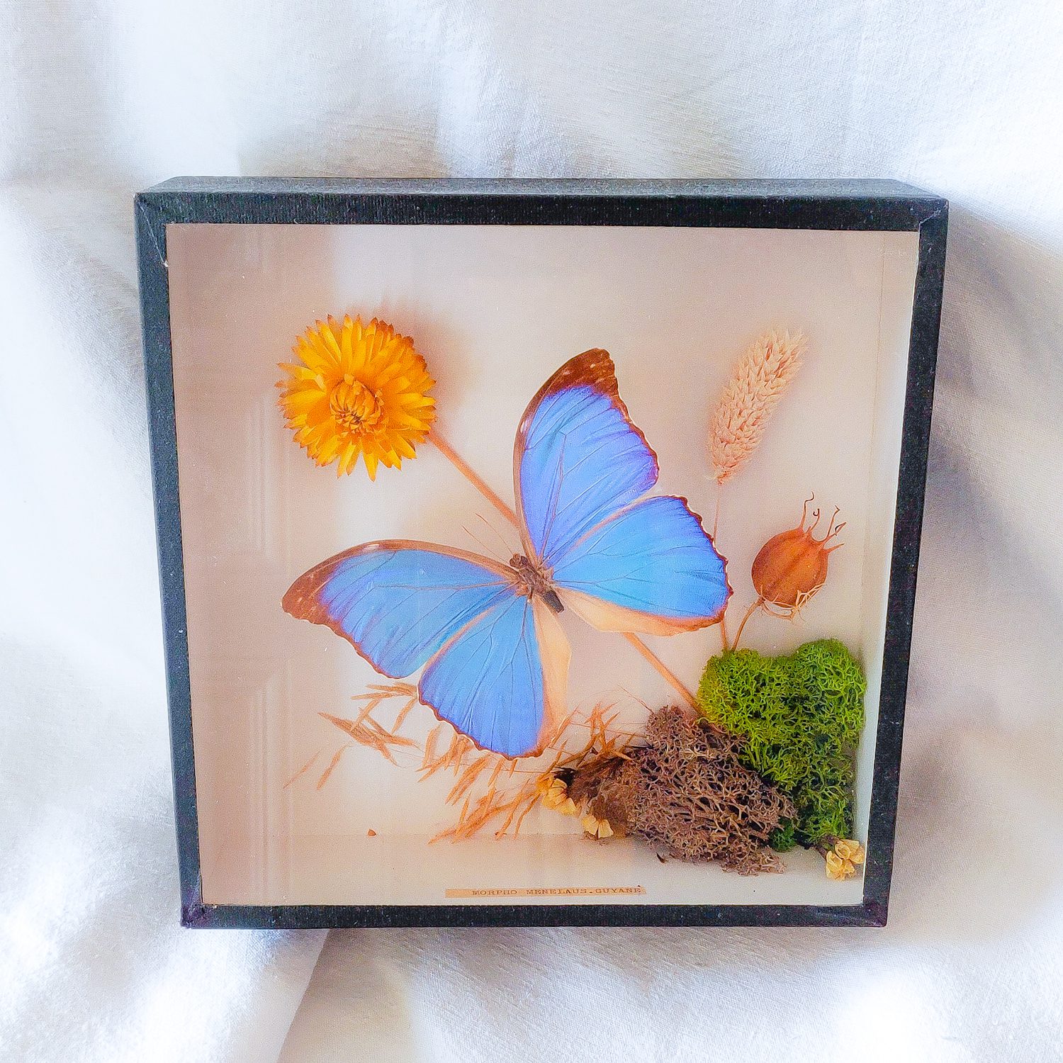 Papillon de Guyane naturalisé sous verre.