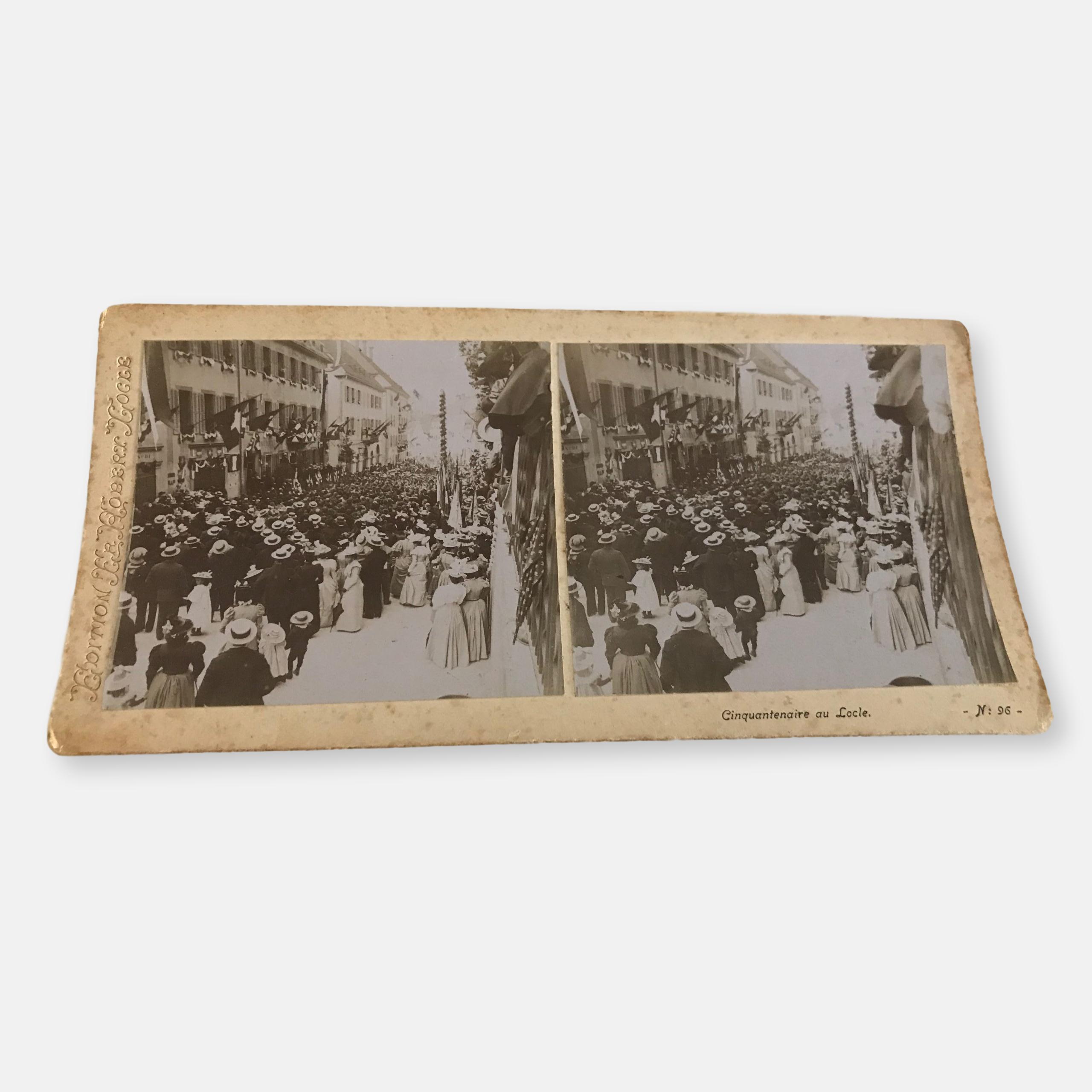 Très jolie photo pour stéréoscope. Cinquantenaire du Locle