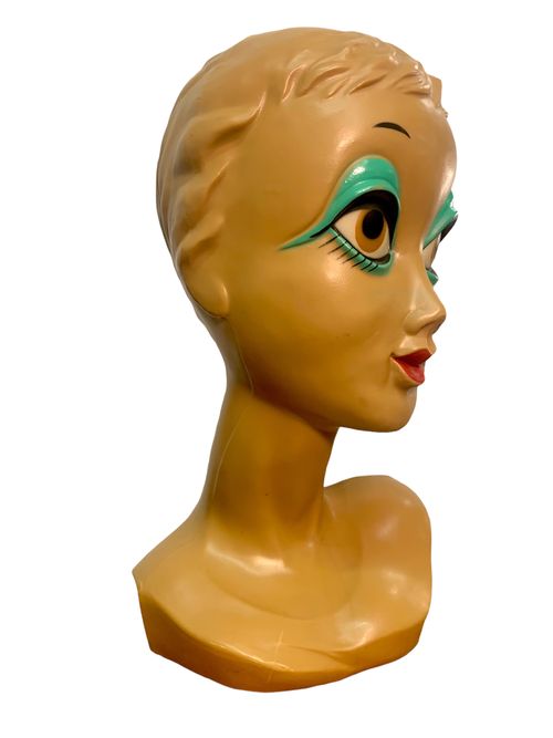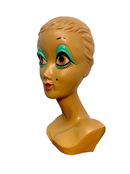 Produit venduTête de mannequin en plastique d’origine Twiggy. Icône des années 60.