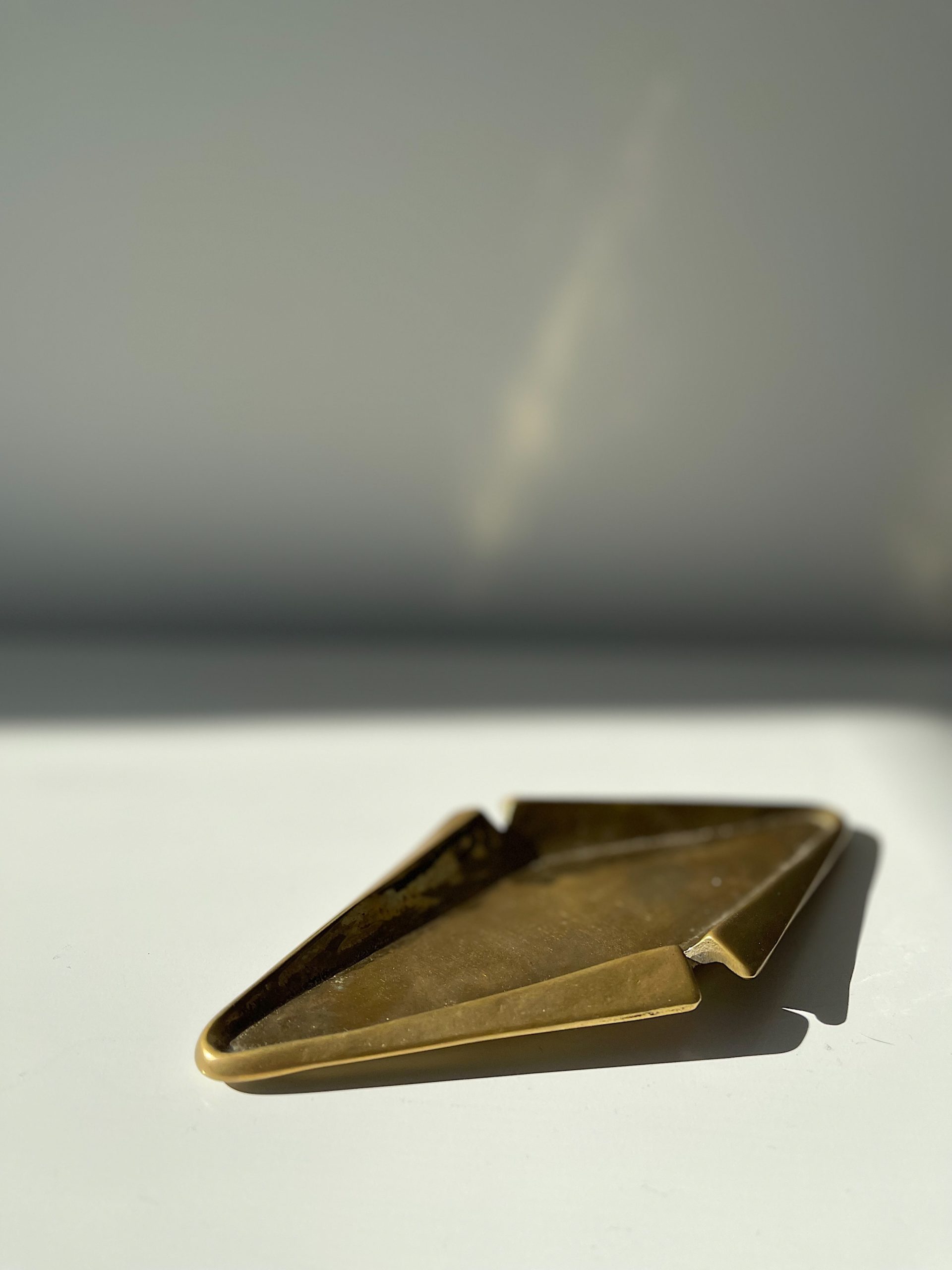 Produit venduVide-poches ou cendrier mid-century en bronze avec jolie forme trapèze, vers 1960.
