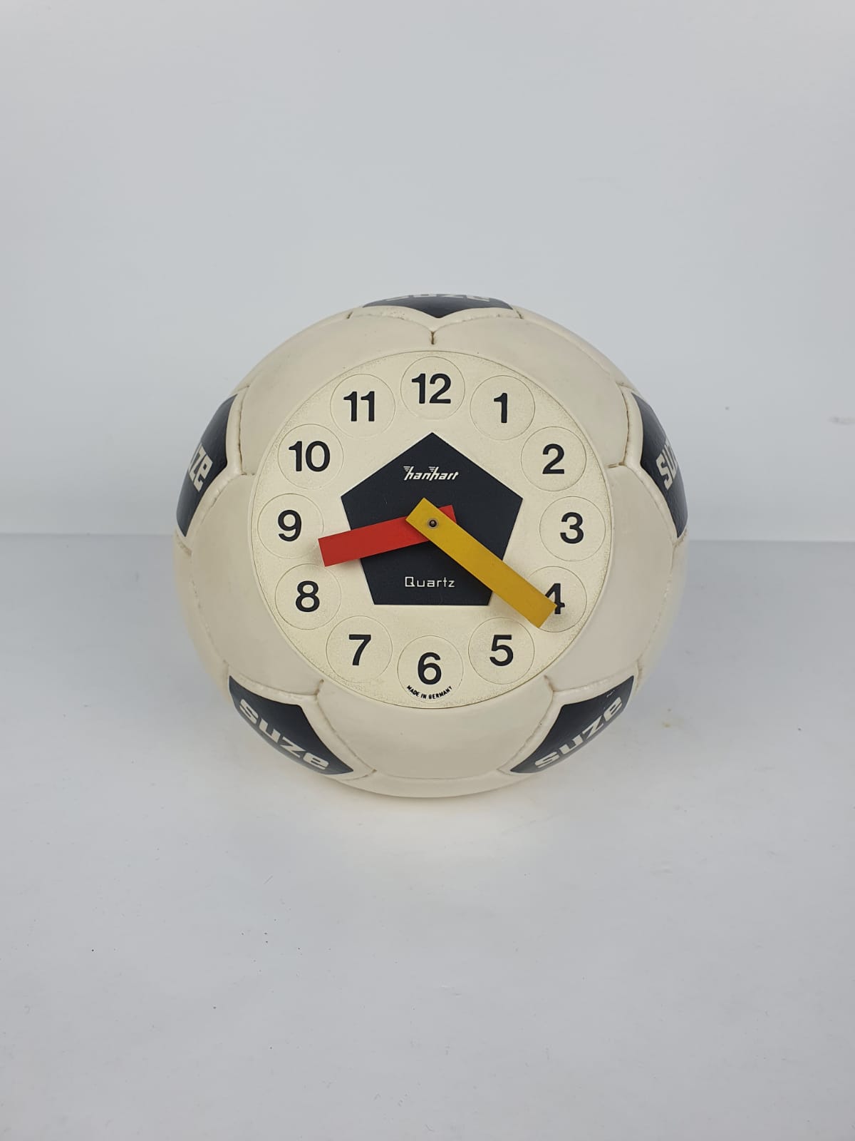 Produit venduHorloge en forme de ballon de football pour la marque Suze créée par l’entreprise horlogère Hanhart en Allemagne dans les années 1980