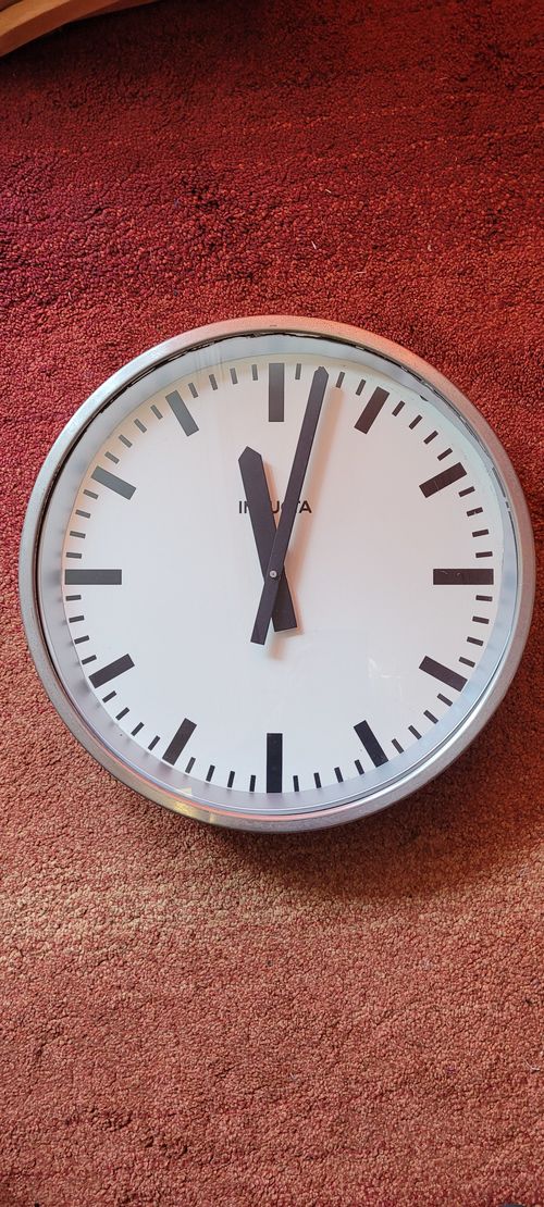 Produit venduHorloge d’usine installation d’atelier, INDUCTA, SWISS MADE, 1952, Thun Gwatt, voltage 24, verrées aluminium, pas testée, nécessite une horloge mère