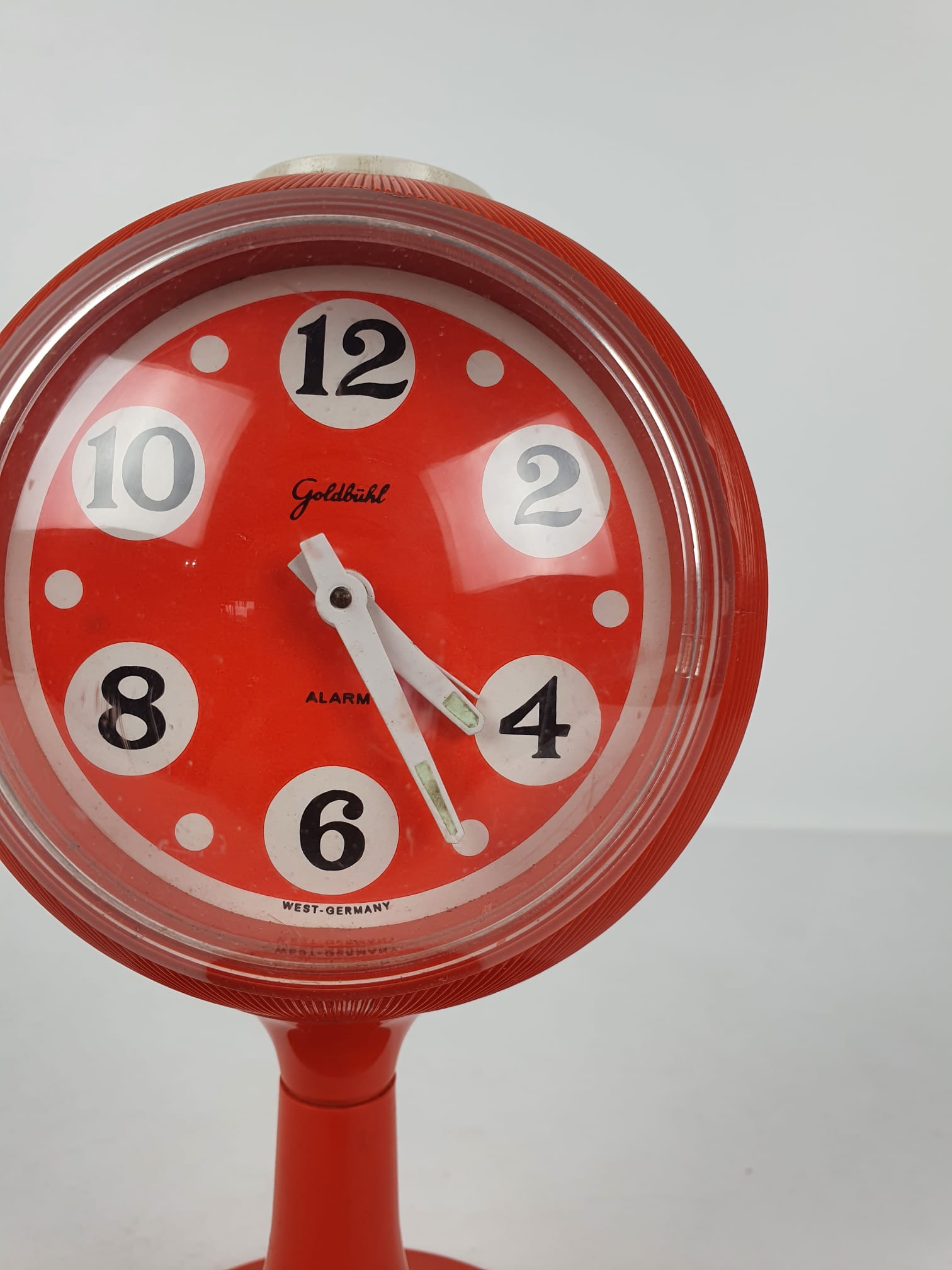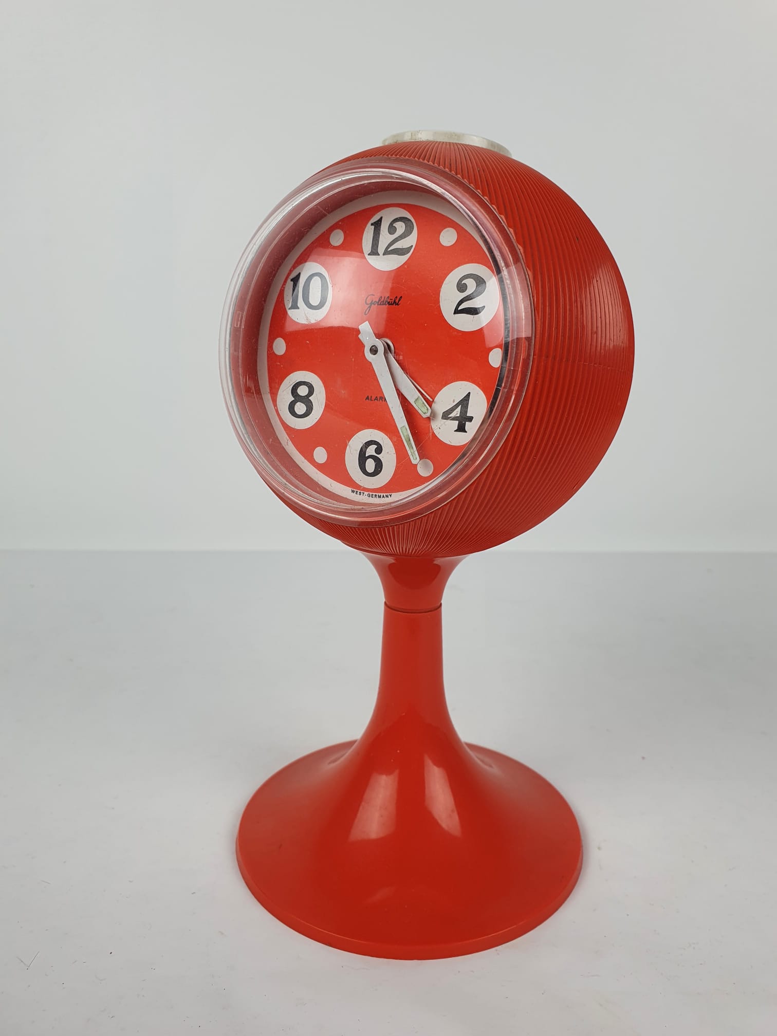 Produit venduHorloge/réveil piédestal space age orange.