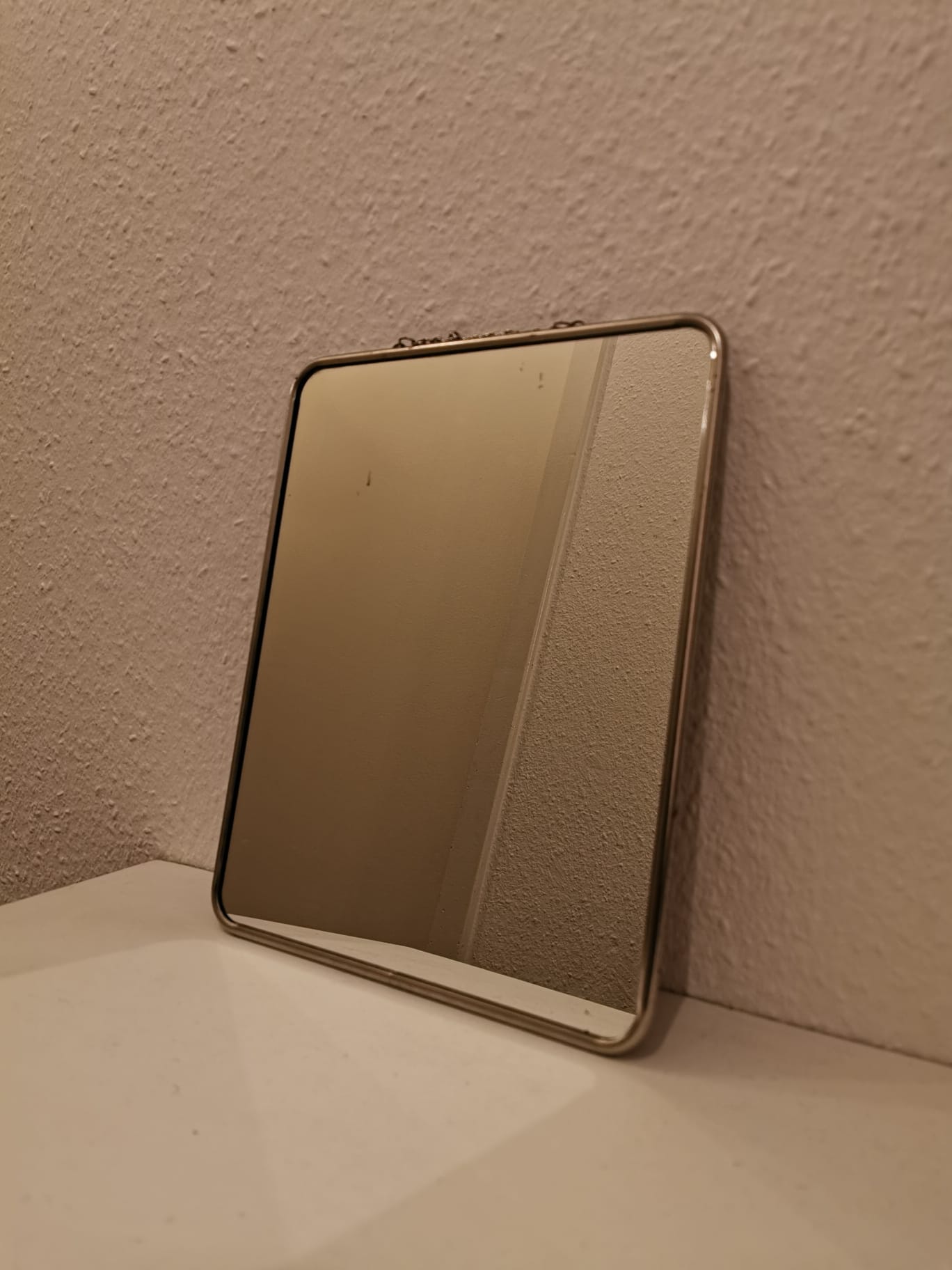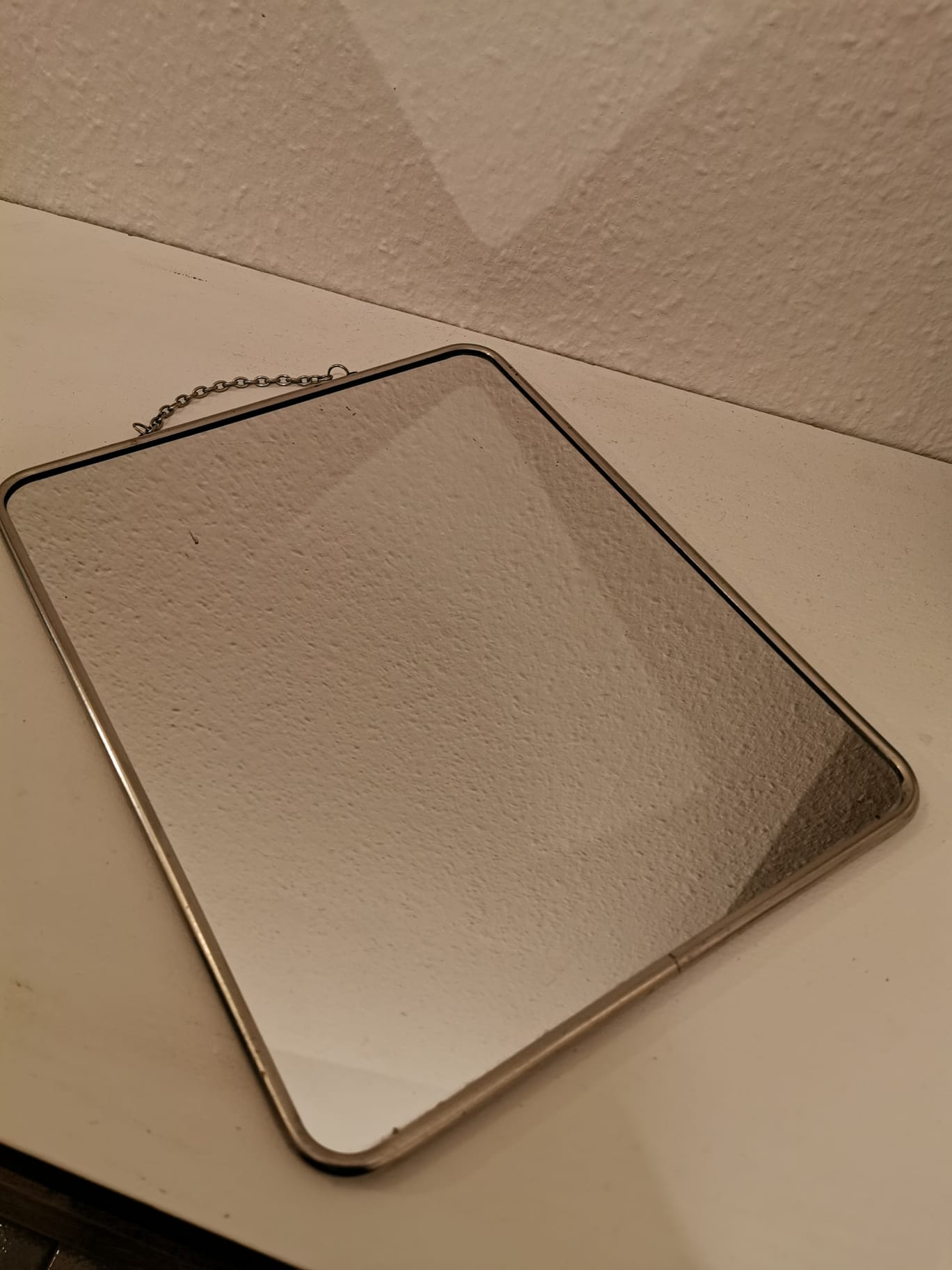 Produit venduAncien miroir barbier à accrocher ou à poser des années 30. Le verso du miroir est rouge.