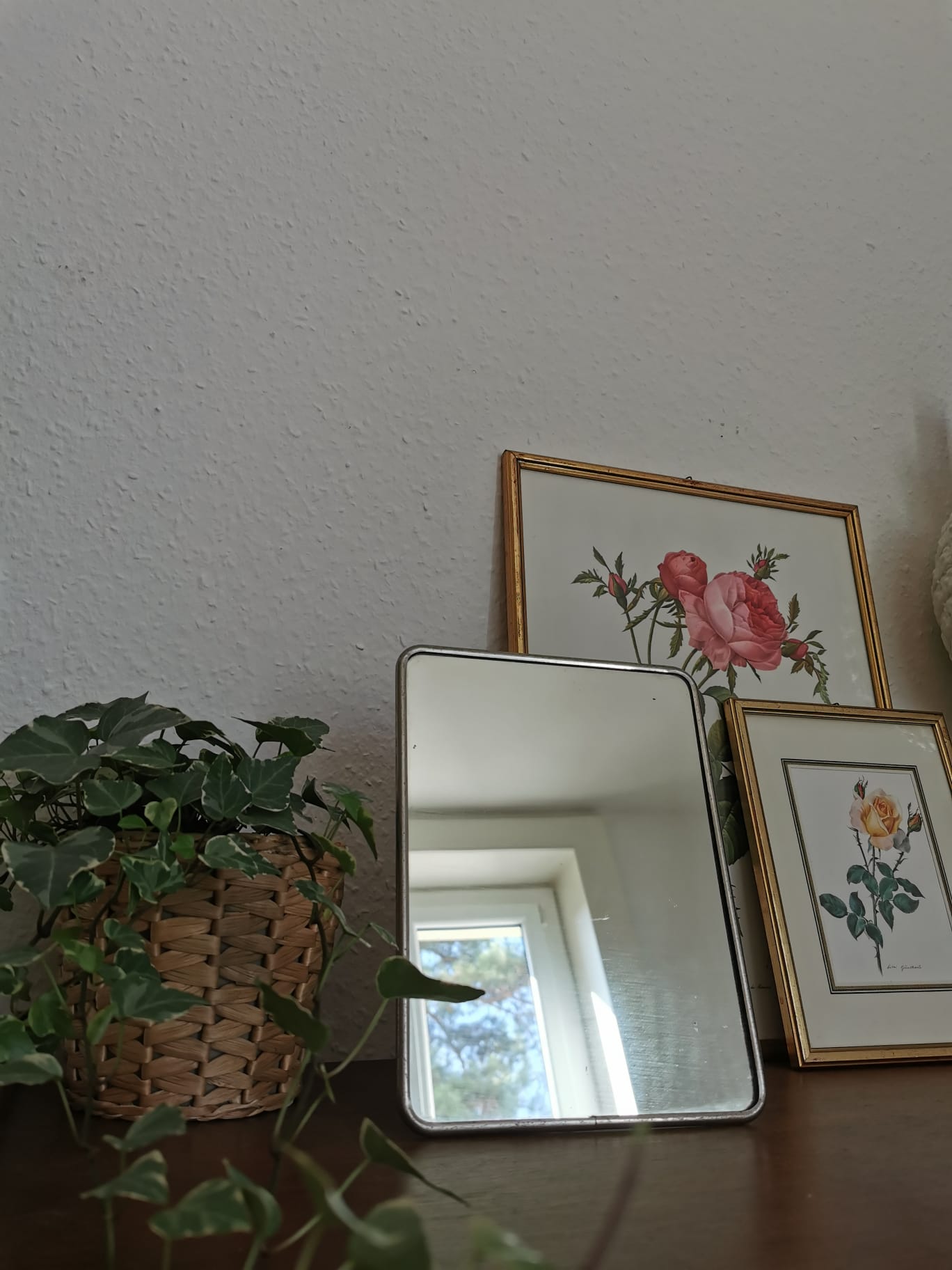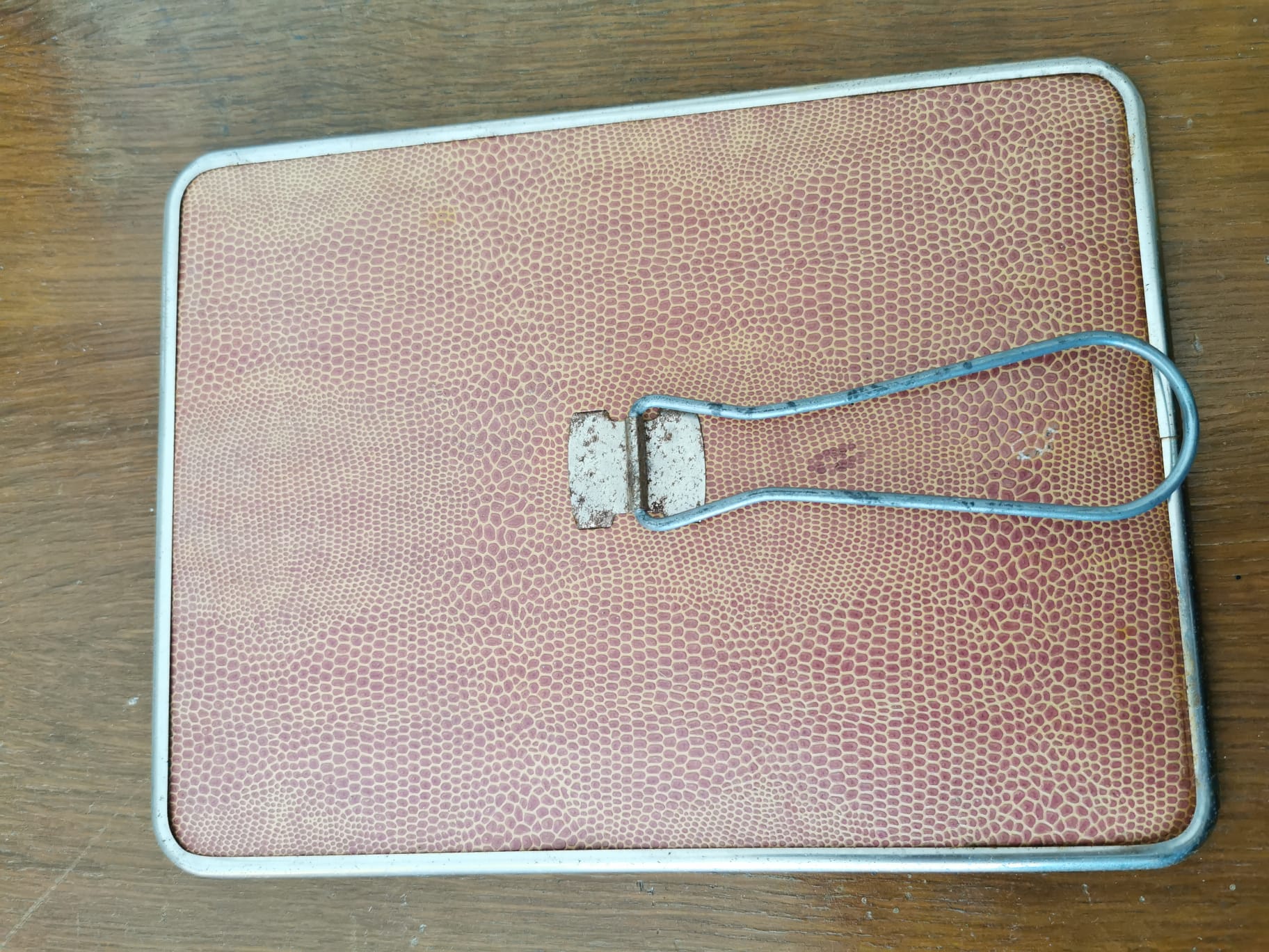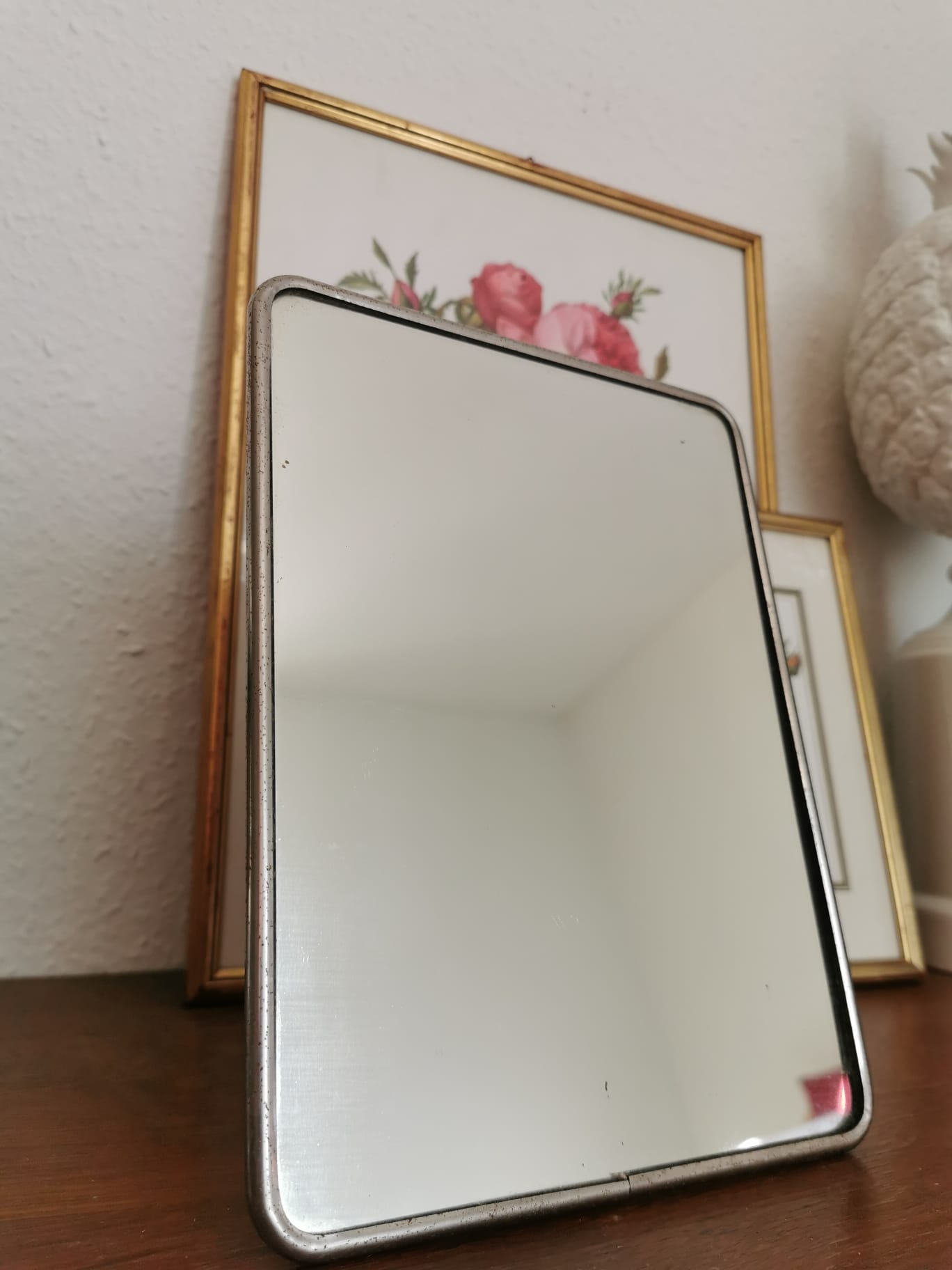 Produit venduAncien miroir de barbier vintage avec structure en métal avec support pour le poser sur un meuble ou une table. Quelques traces d’usure sont à signaler.