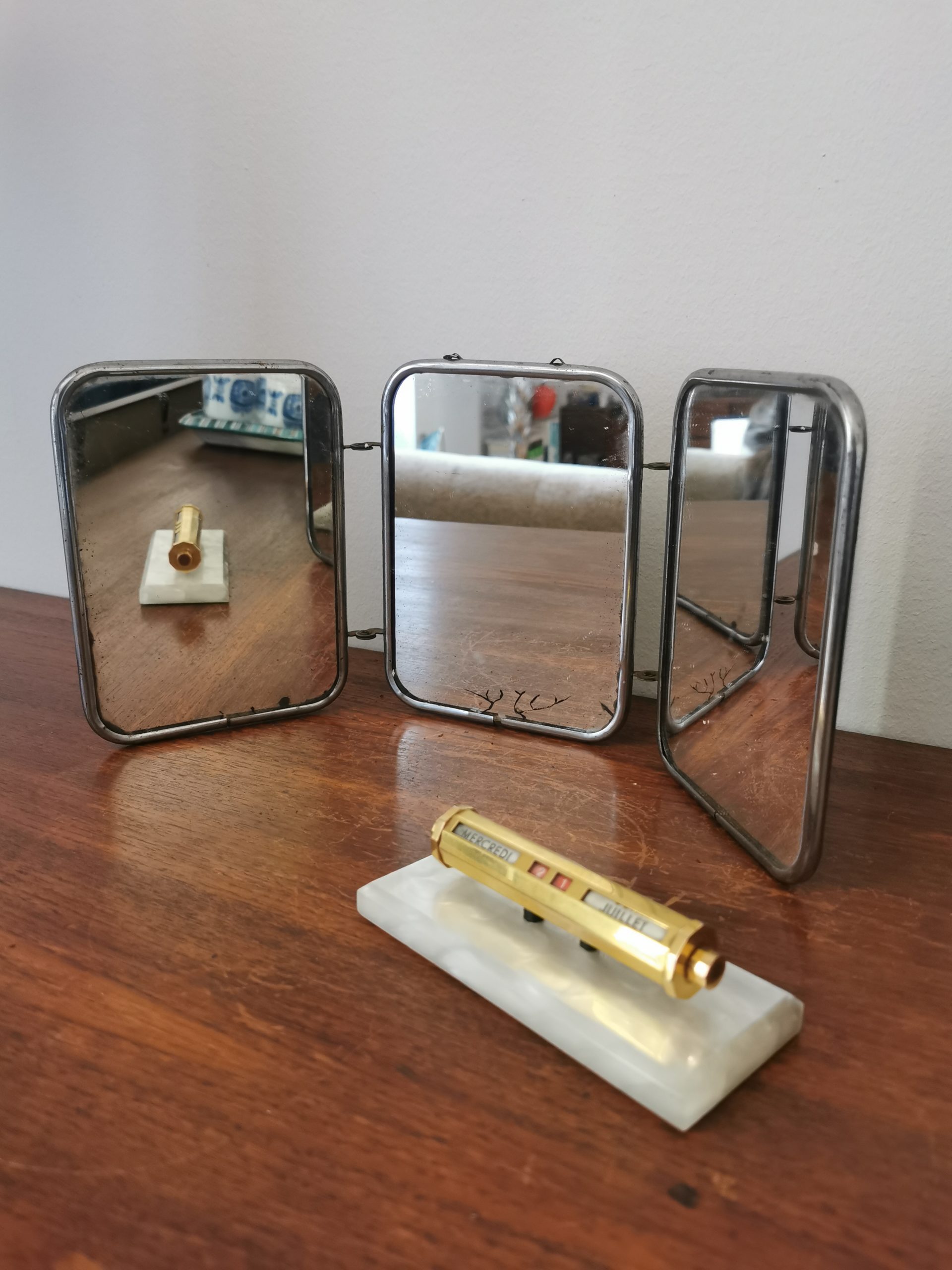 Produit venduMiroir barbier triptyque des années 20/30. Les miroirs sont assez marqués (voir photos).