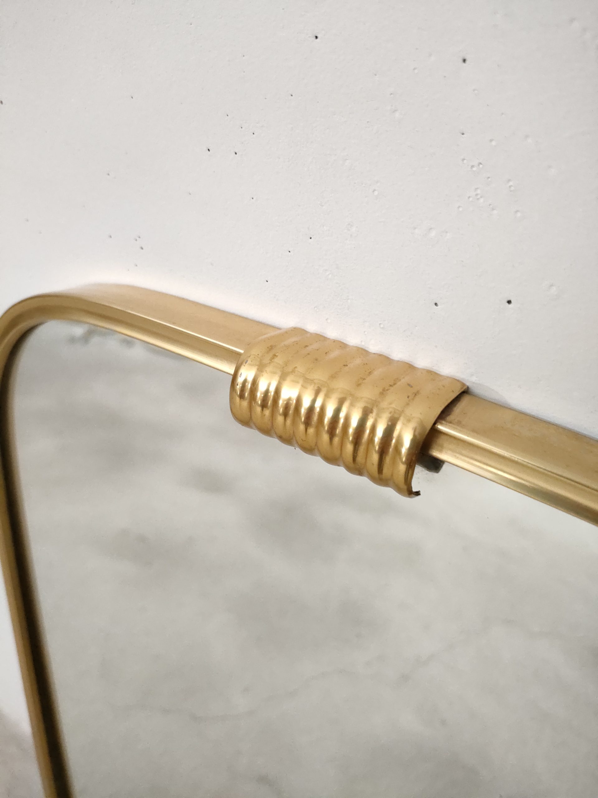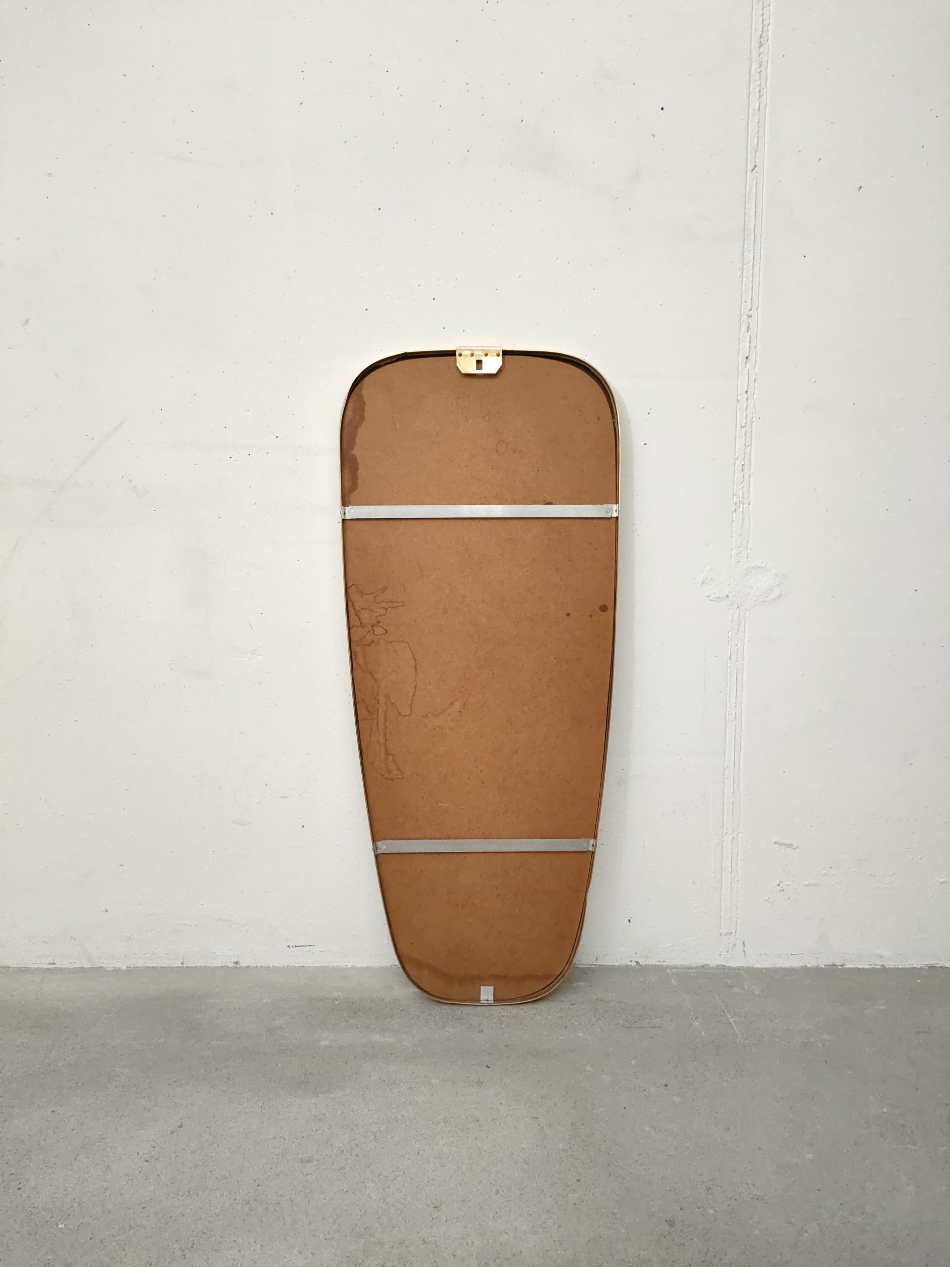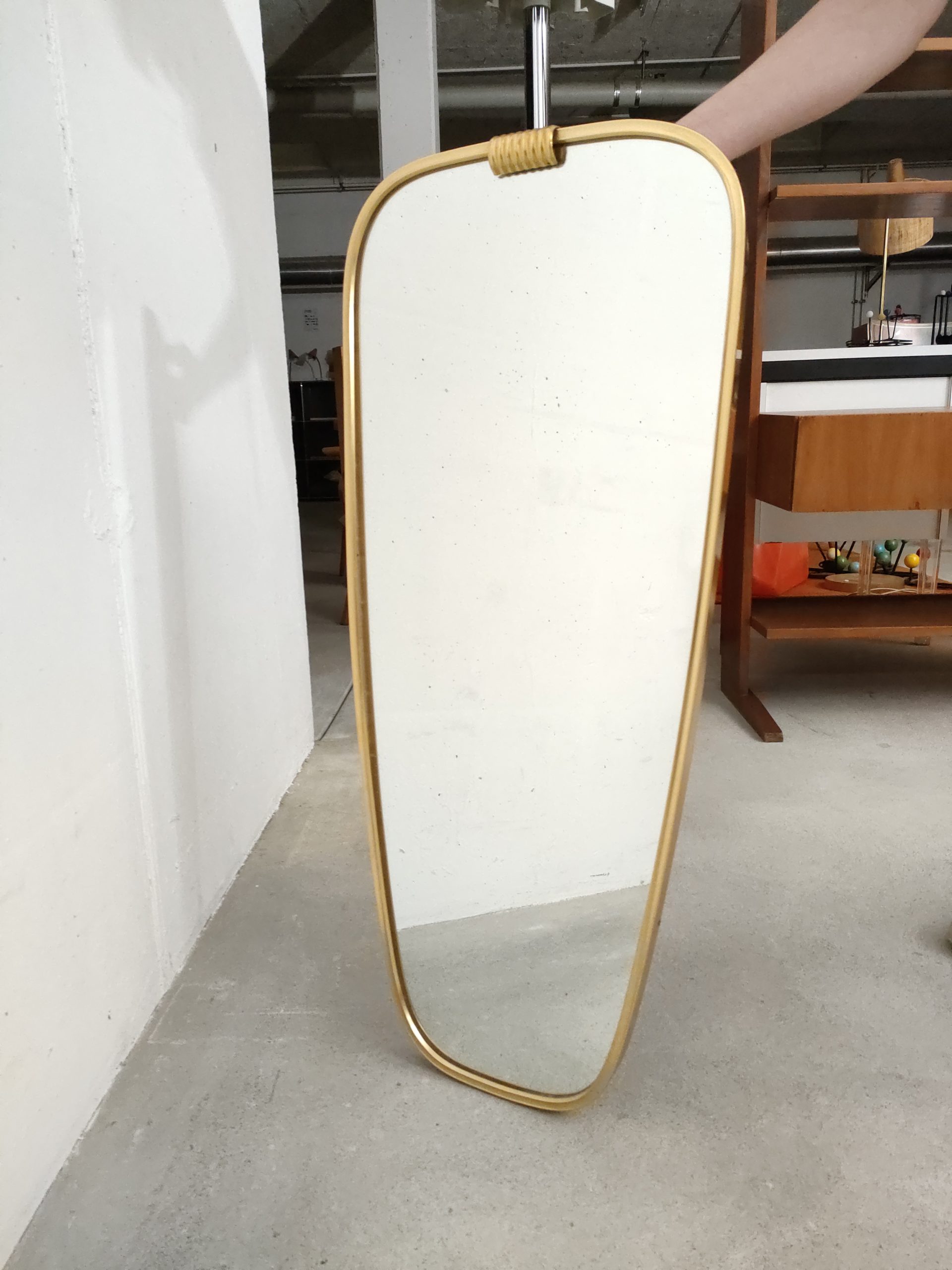 Produit venduÉlégant miroir vintage avec structure en métal doré. Doté d’une accroche au dos pour l’accrocher au mur. Largeur du miroir en haut: 34 cm, en bas : 20 cm.