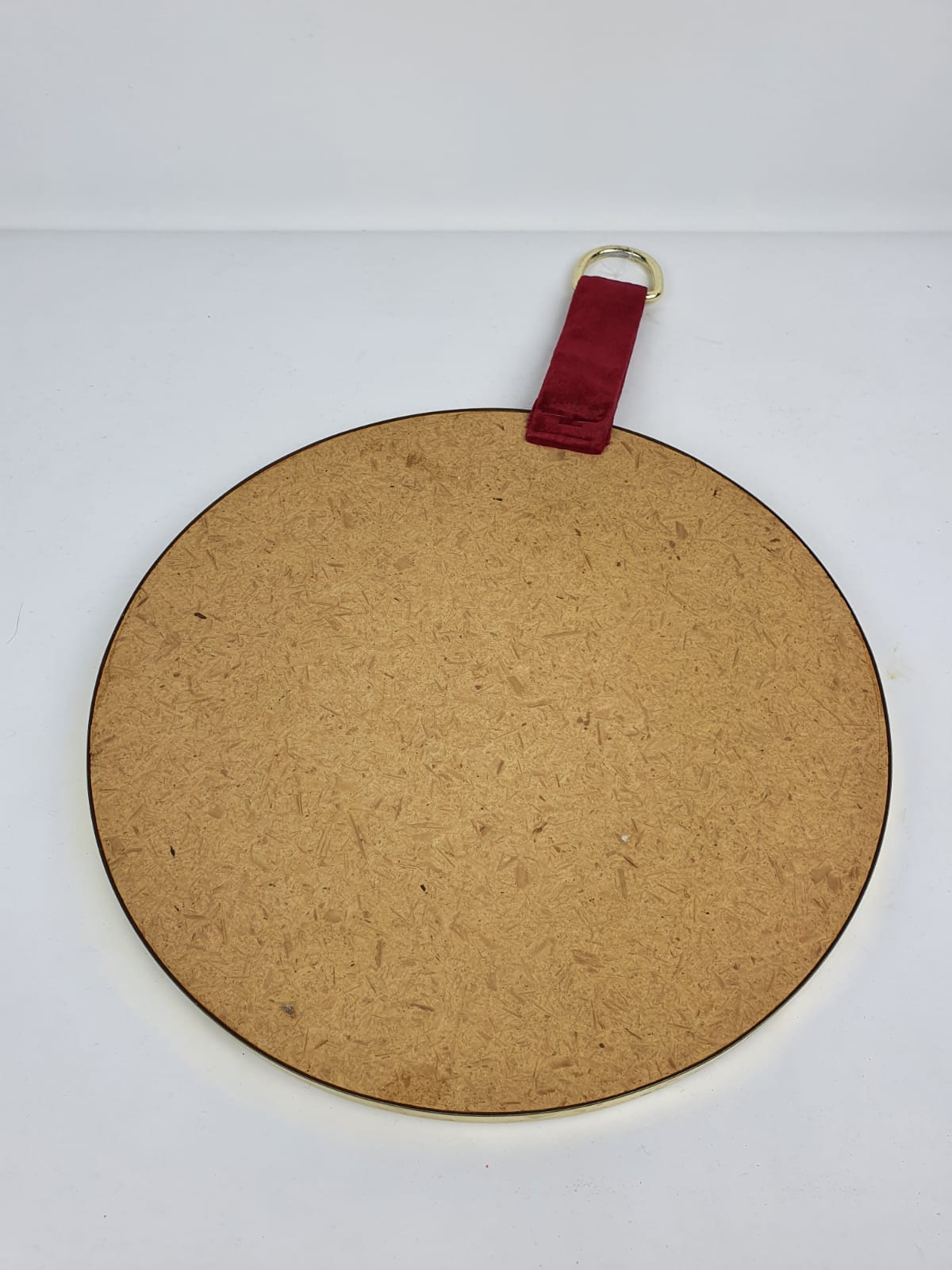 Produit venduMiroir rond des années 60 en velours rouge avec cadre doré