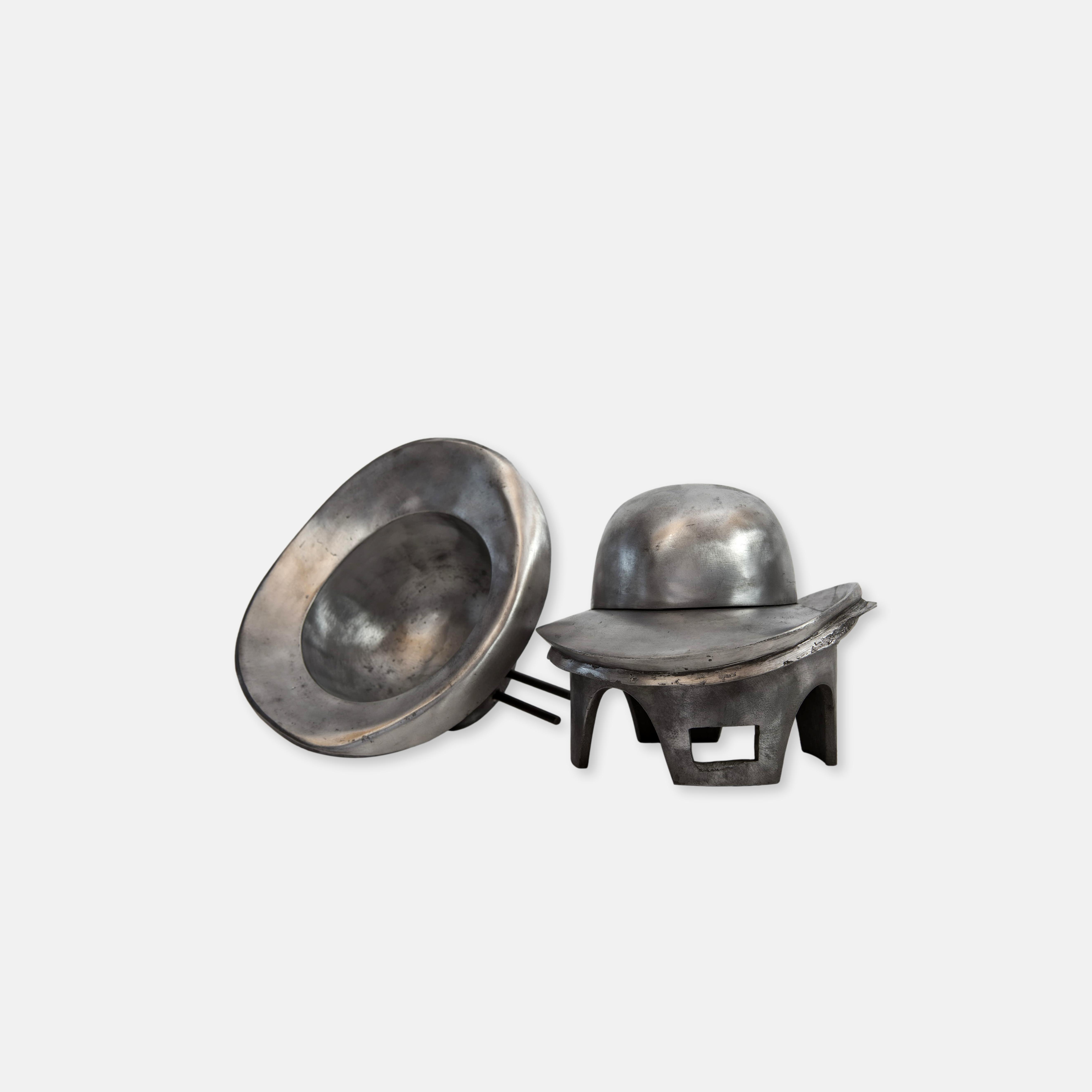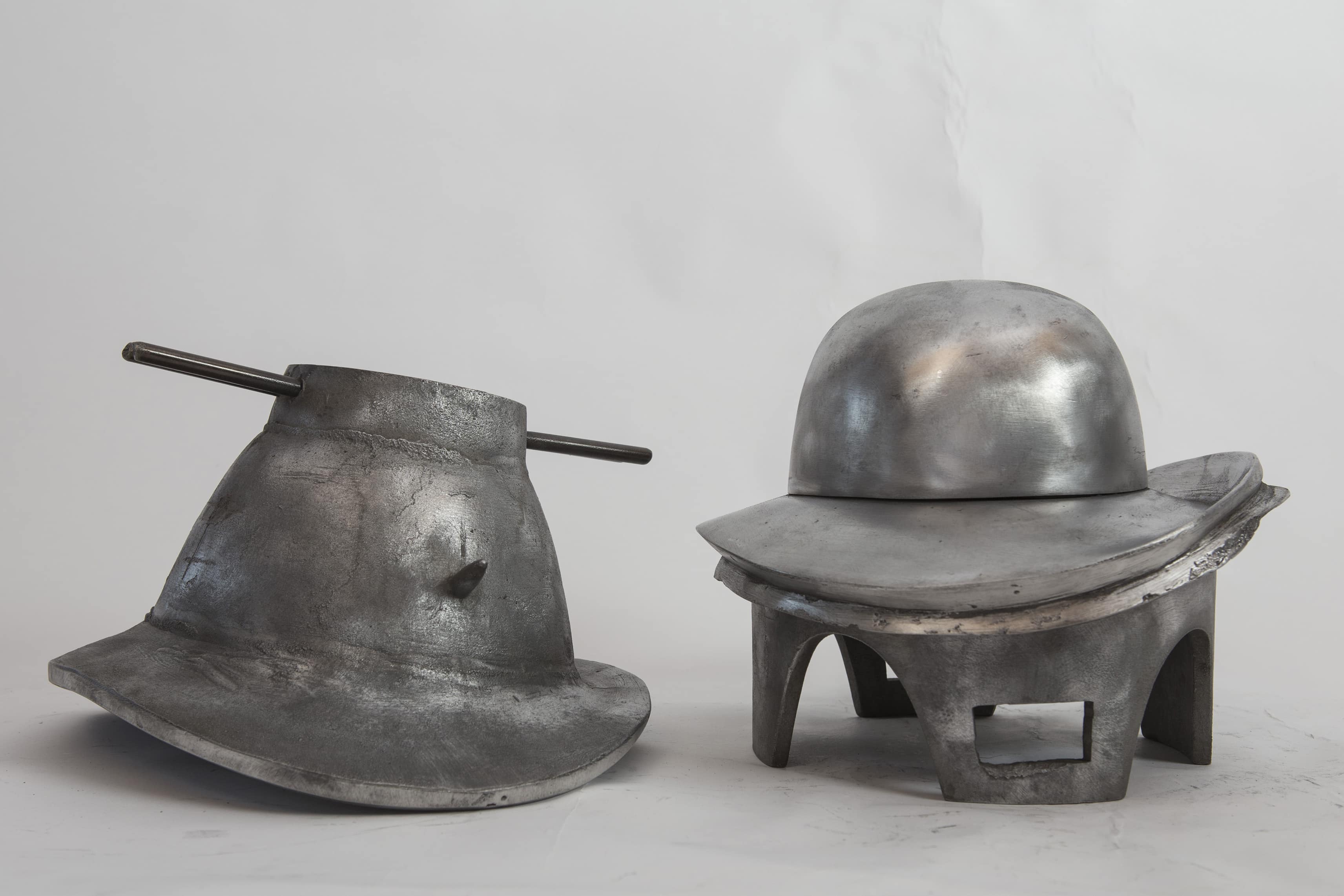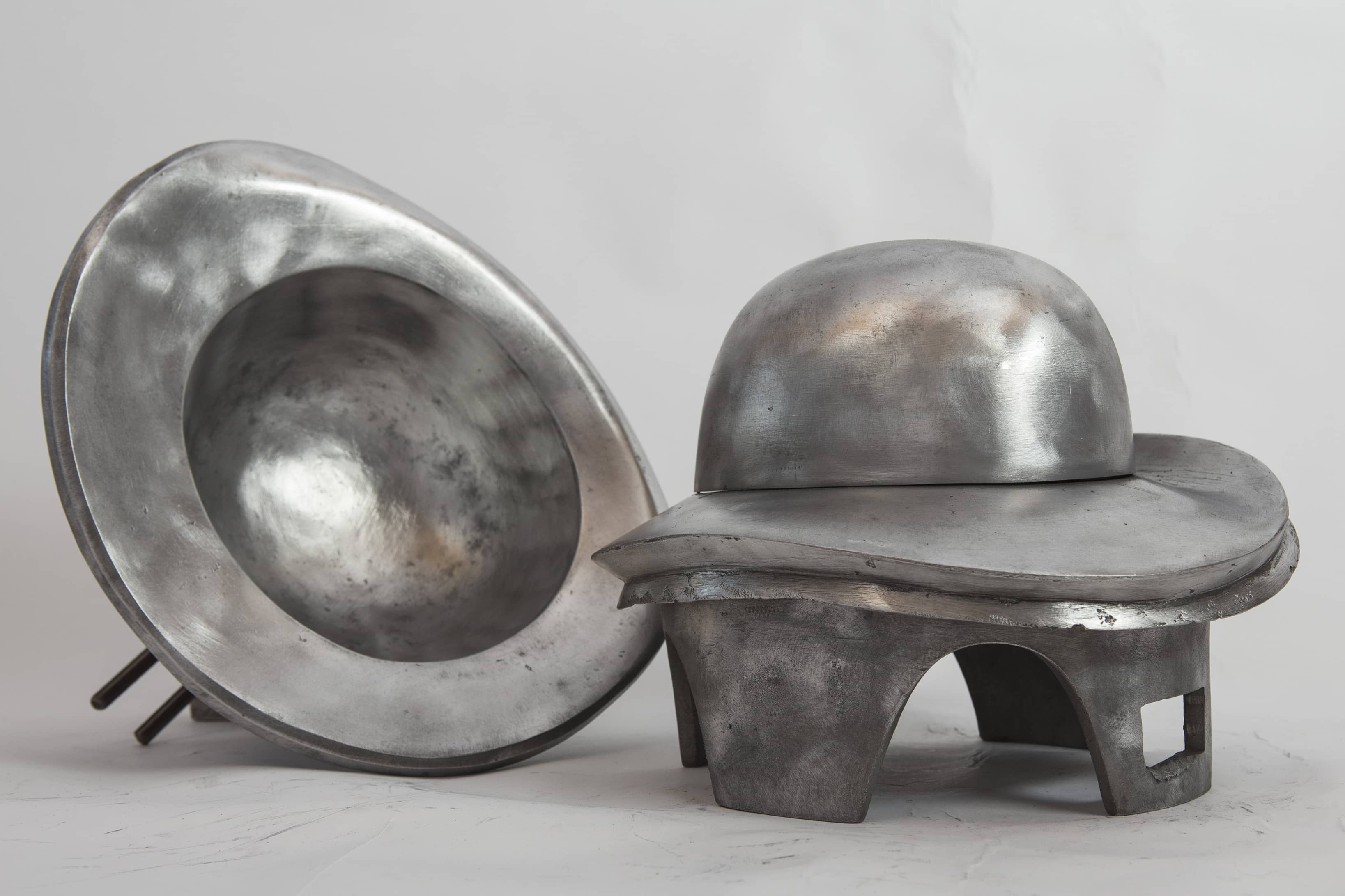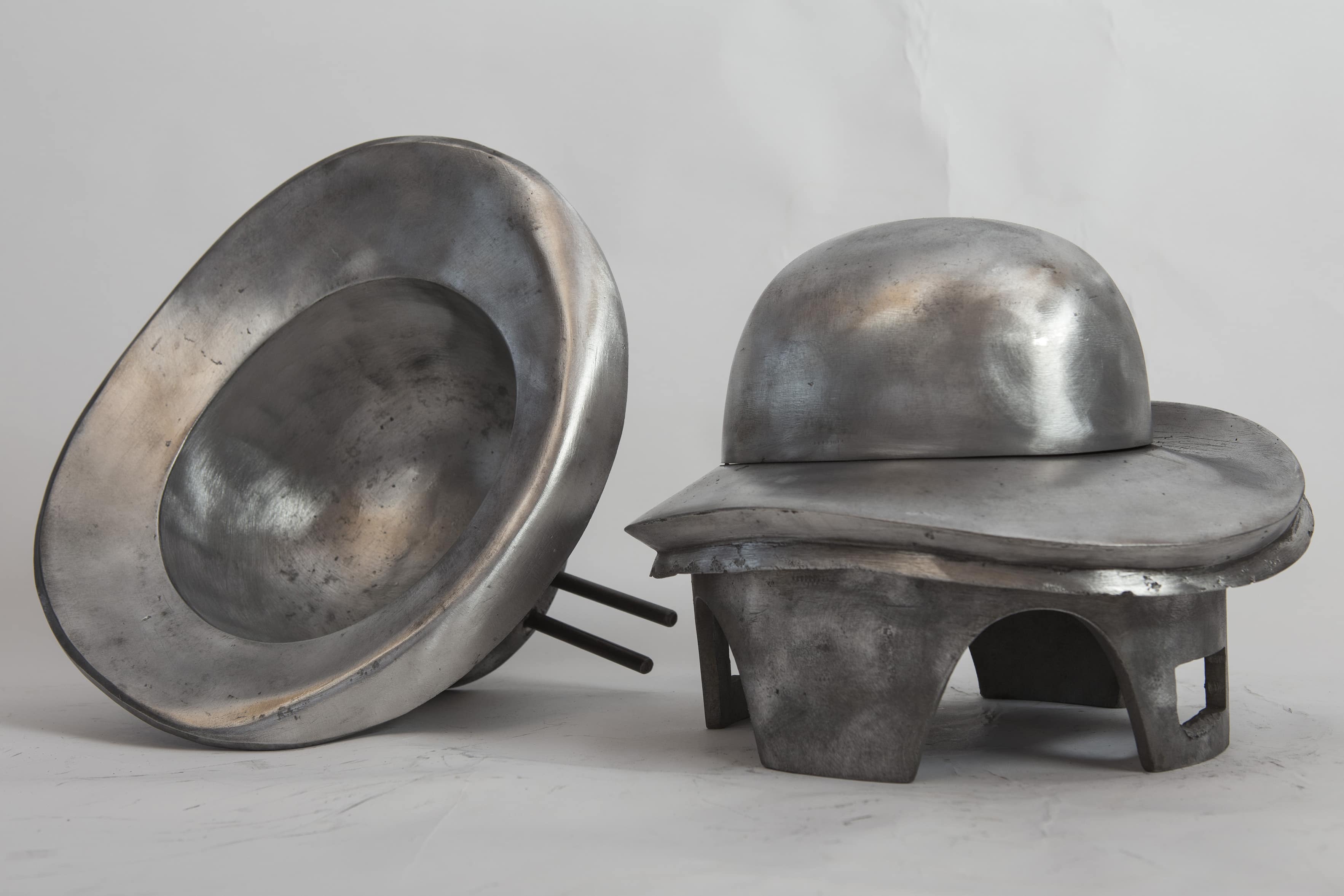 Produit venduMatrices pour fabriquer un chapeau, pièce positive et négative, très belle patine métal mat, superbe design! En fonte d’aluminium. Année 1930 environ. Peut encore servir pour faire son chapeau en feutre. Décoration très originale pour votre intérieur.