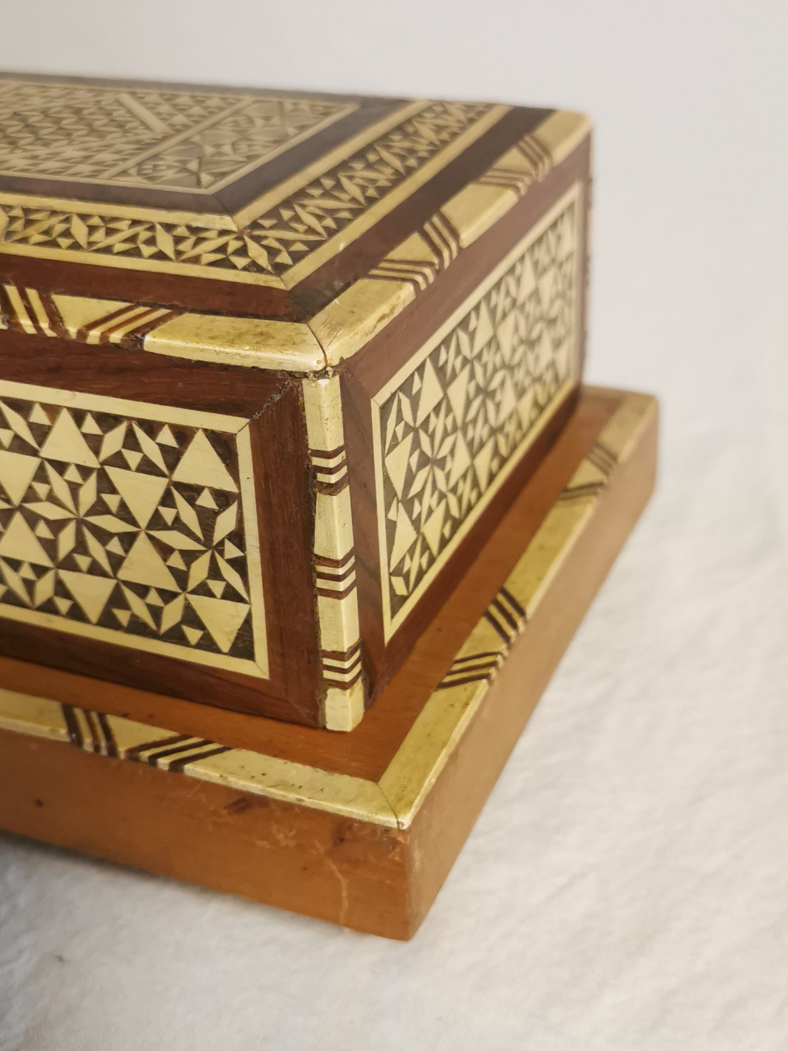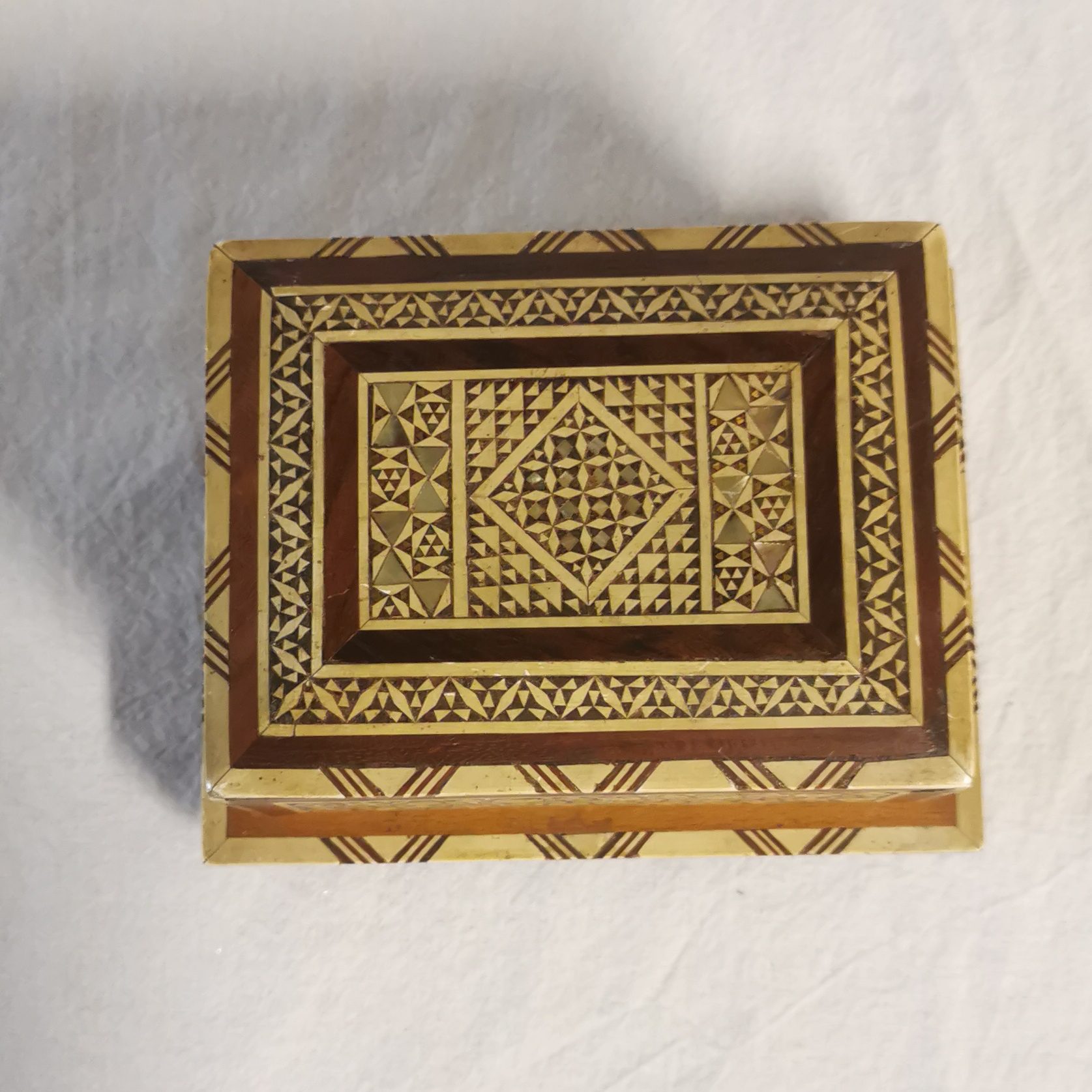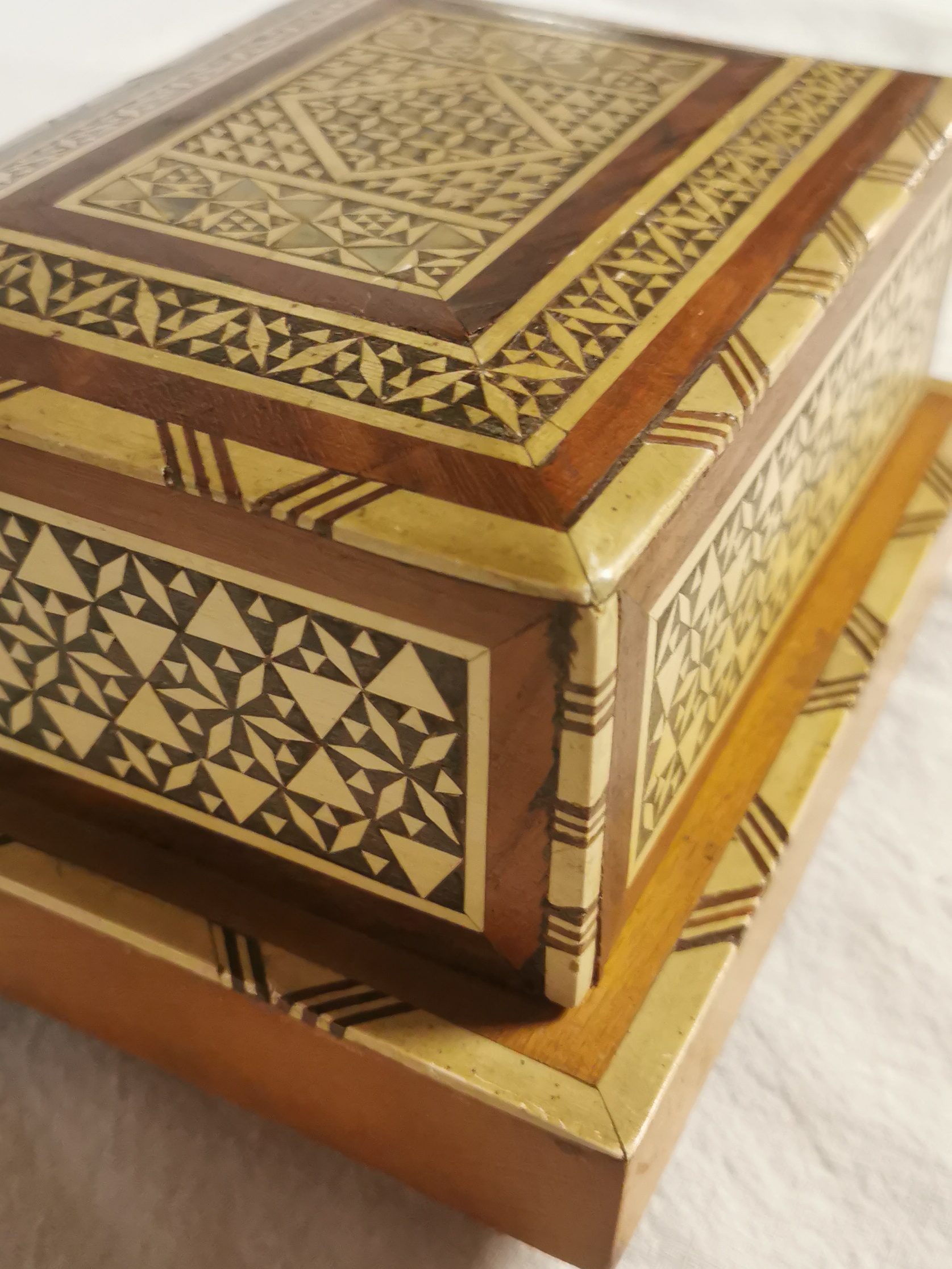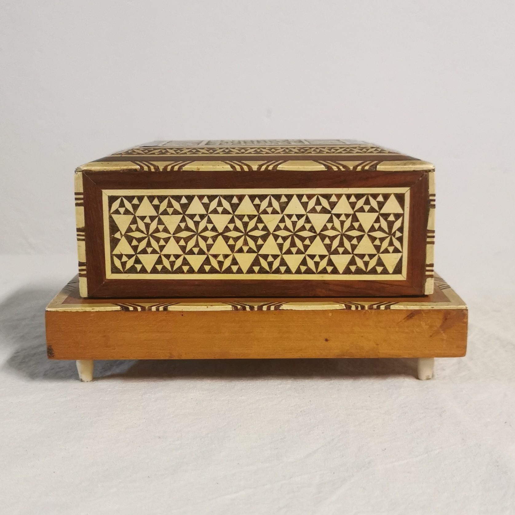 Objet étonnant et très beau travail de marqueterie.