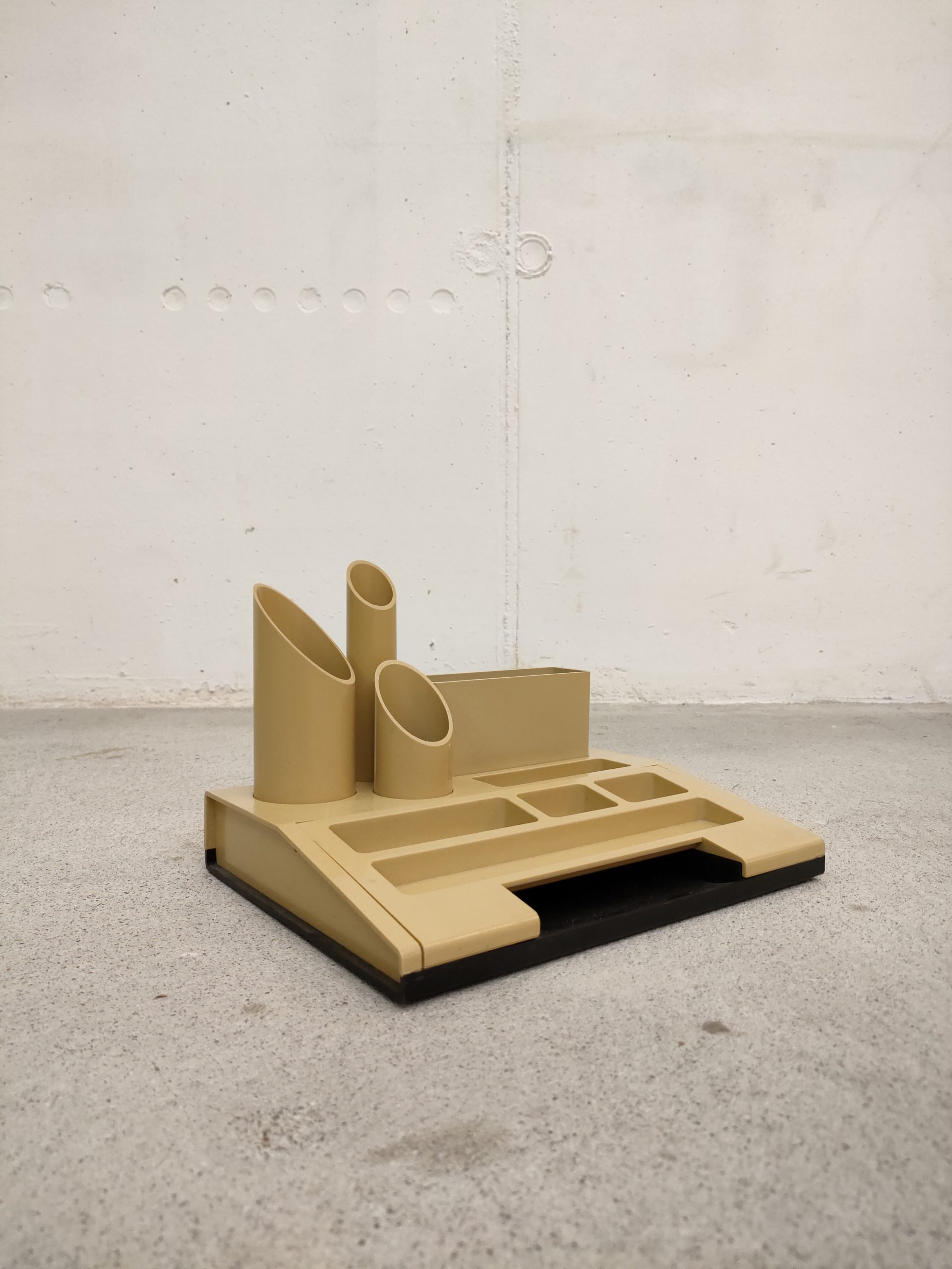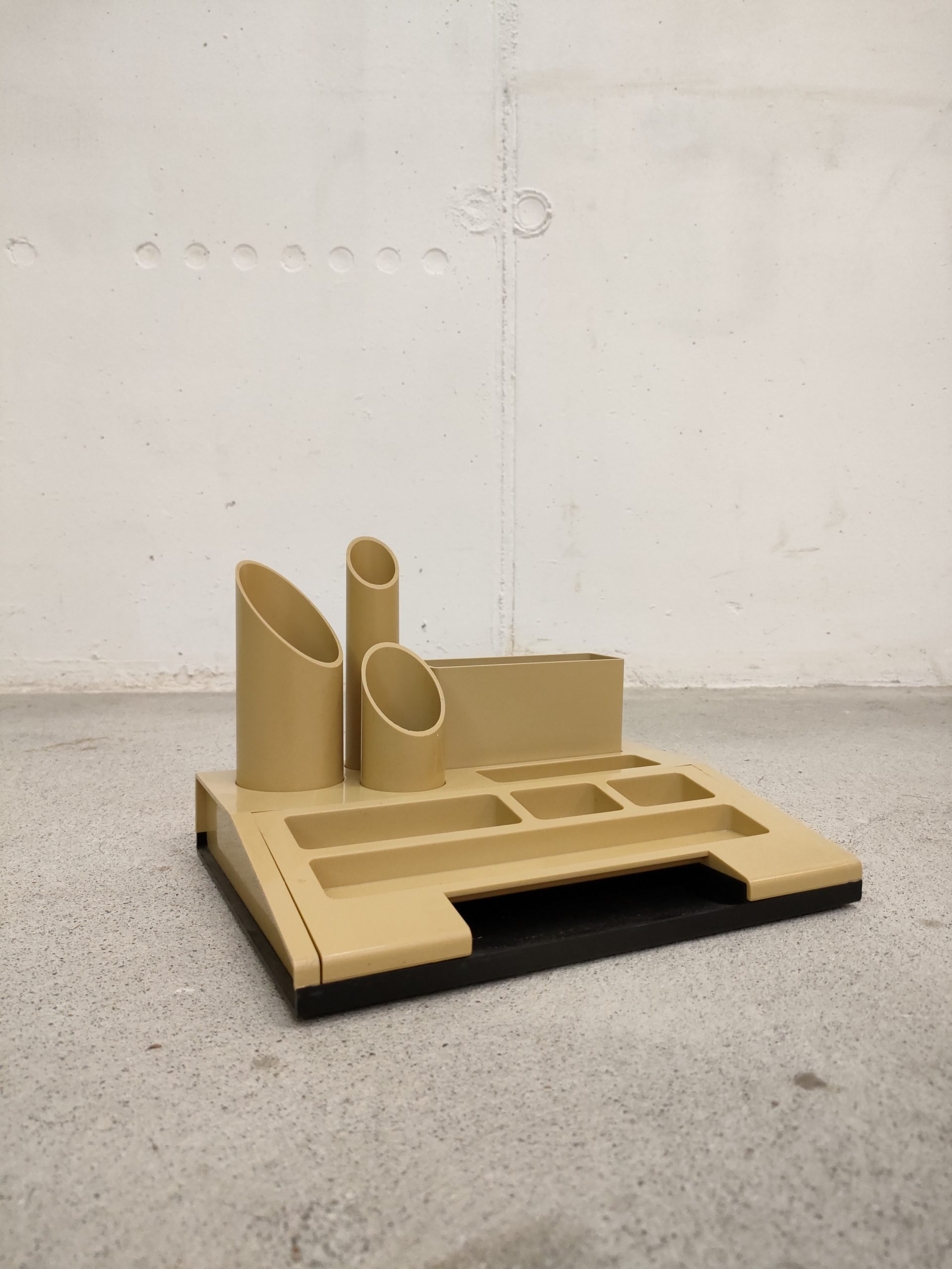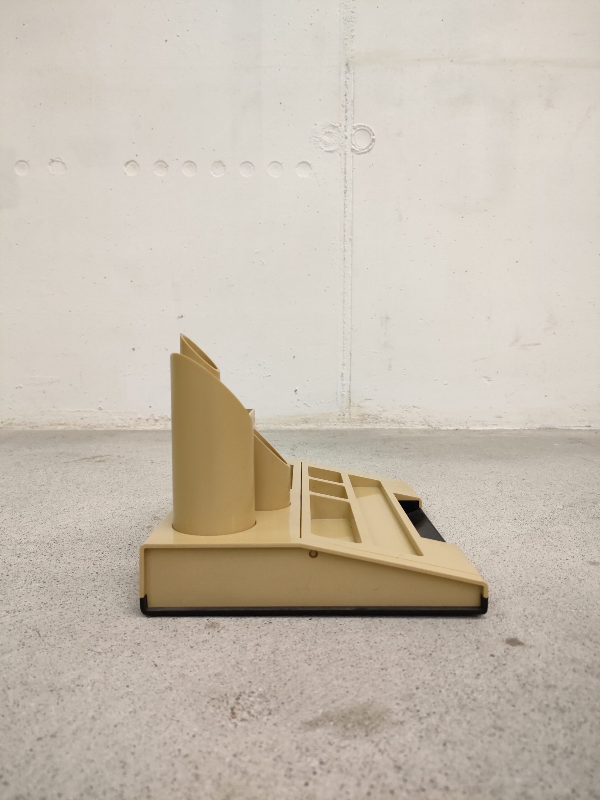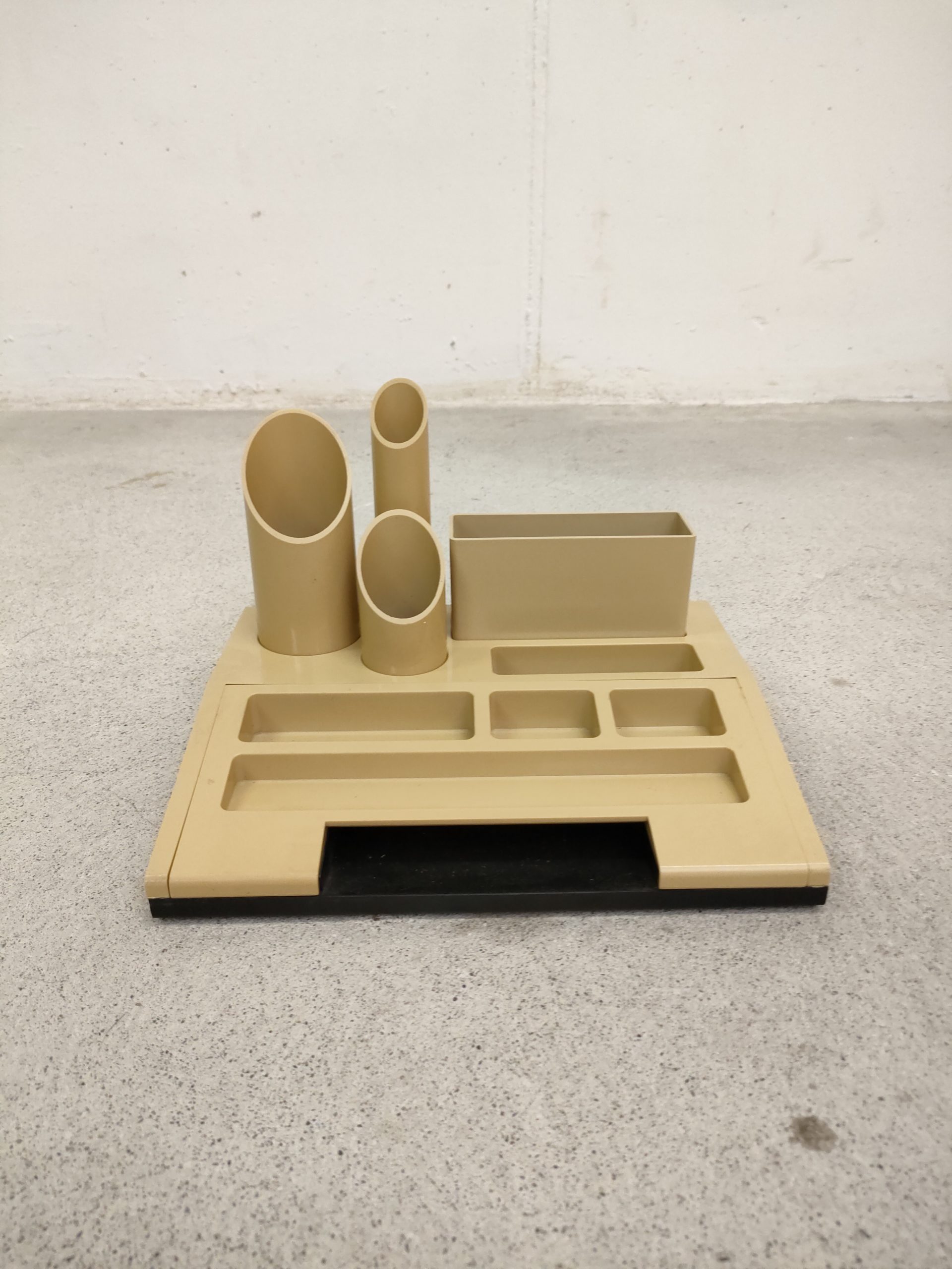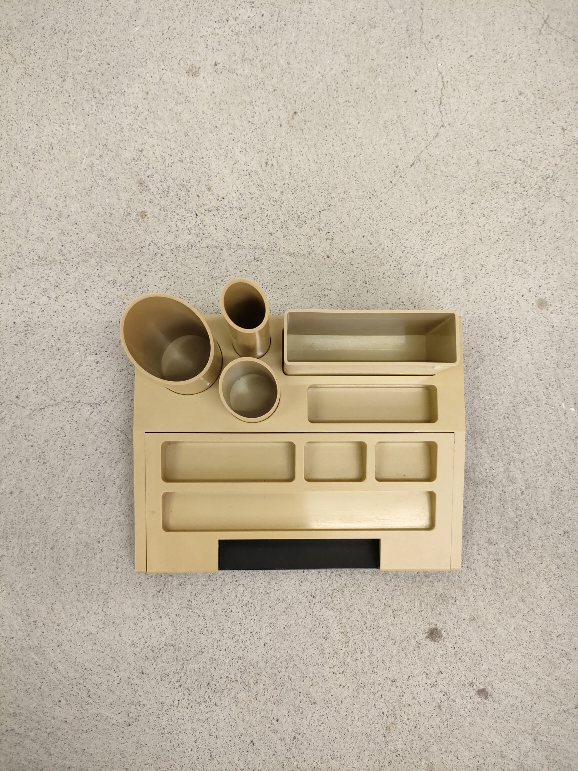 Produit venduOrganisateur de bureau vintage avec de multiples rangements en surface pour stylos, crayons, post-it, trombones, gommes, etc. ainsi qu’un rangement plus discret.