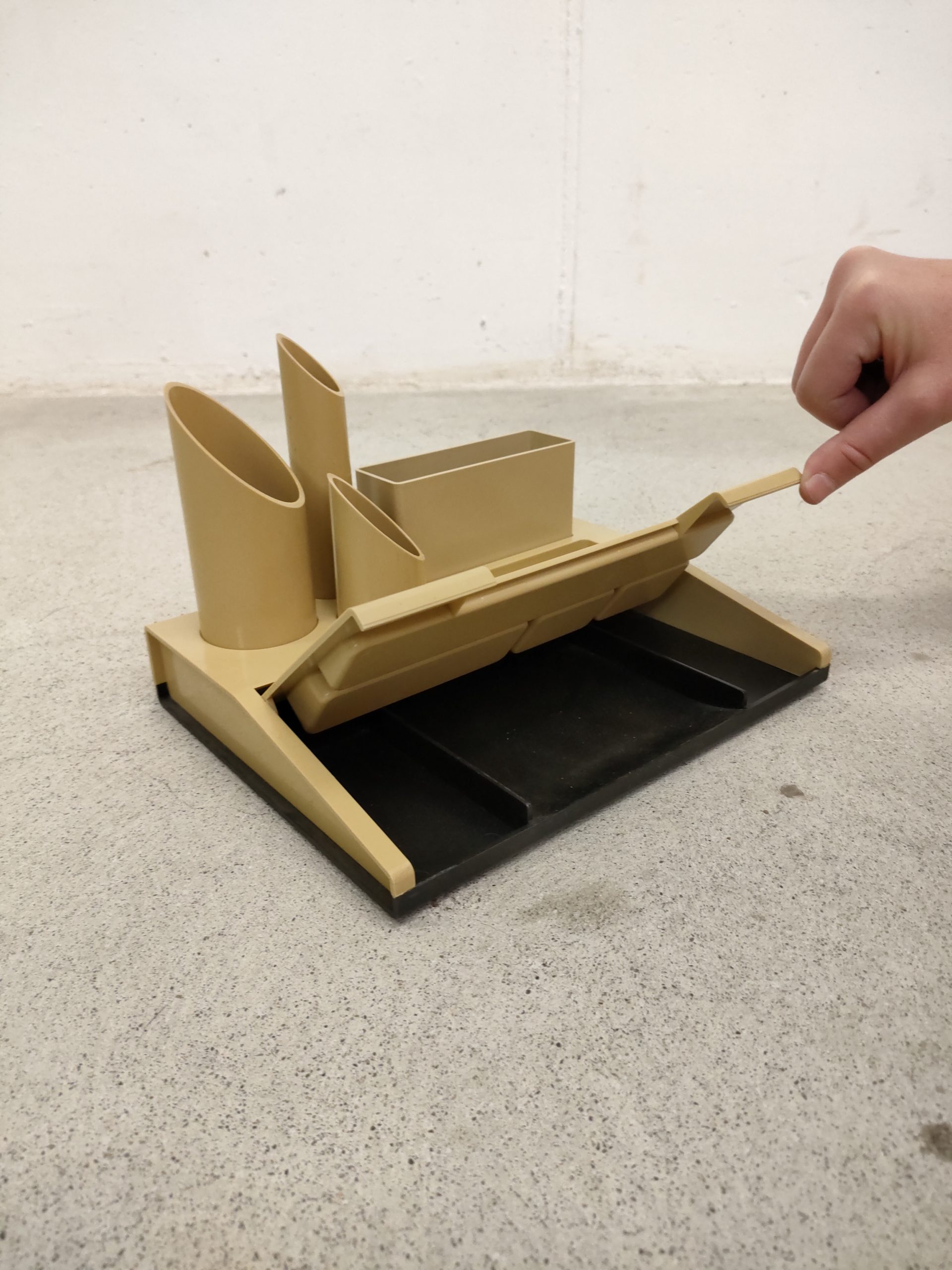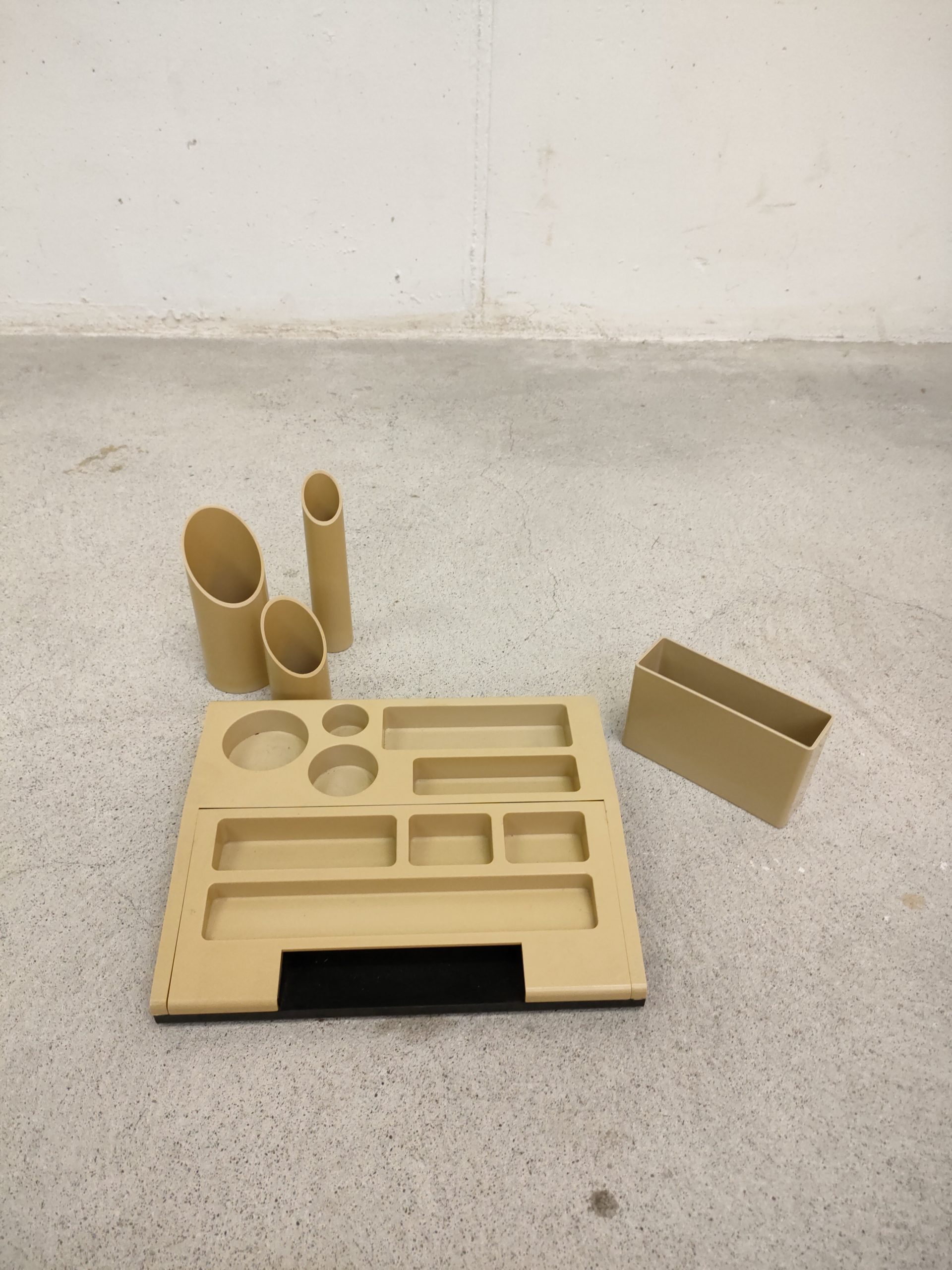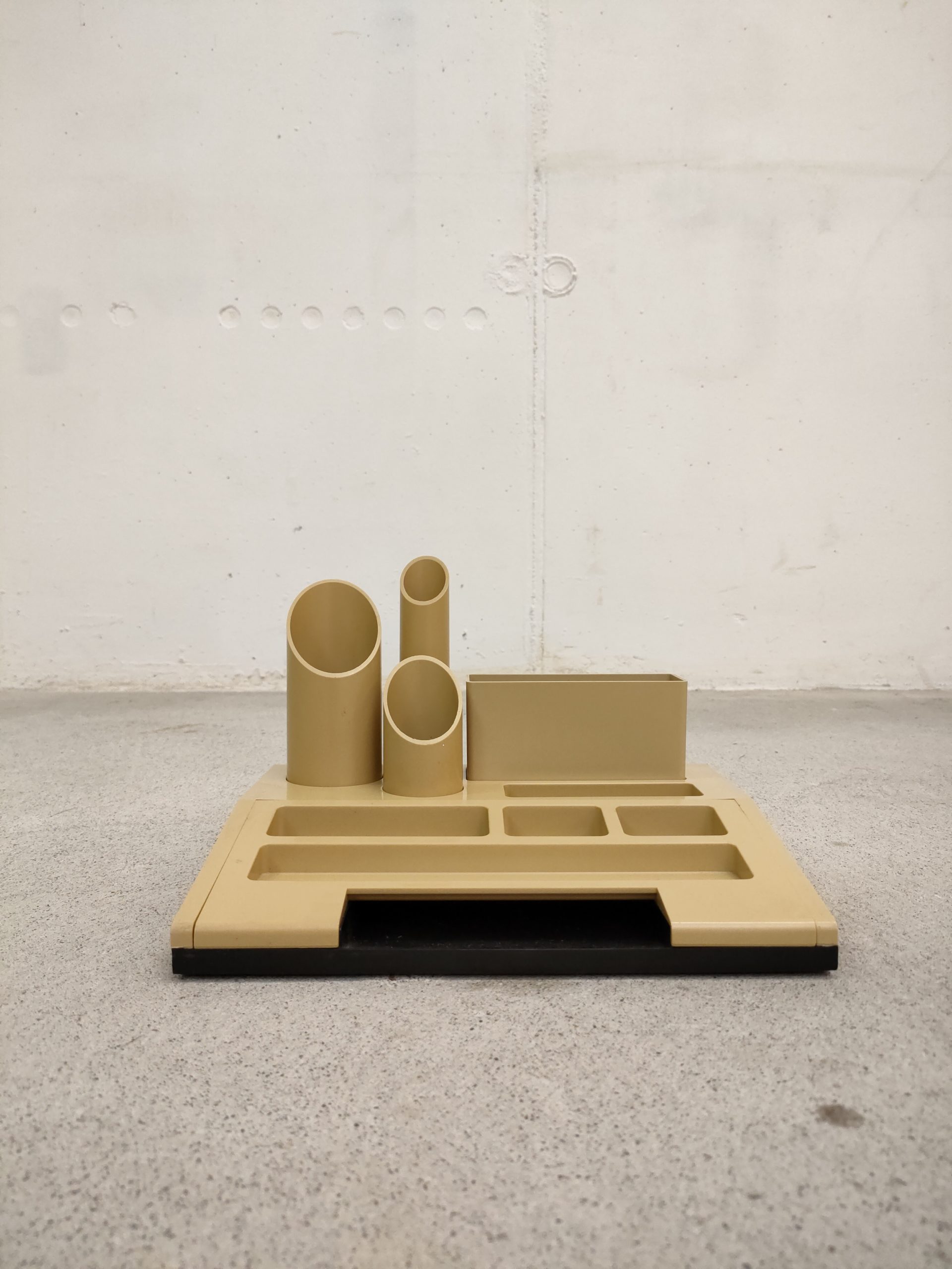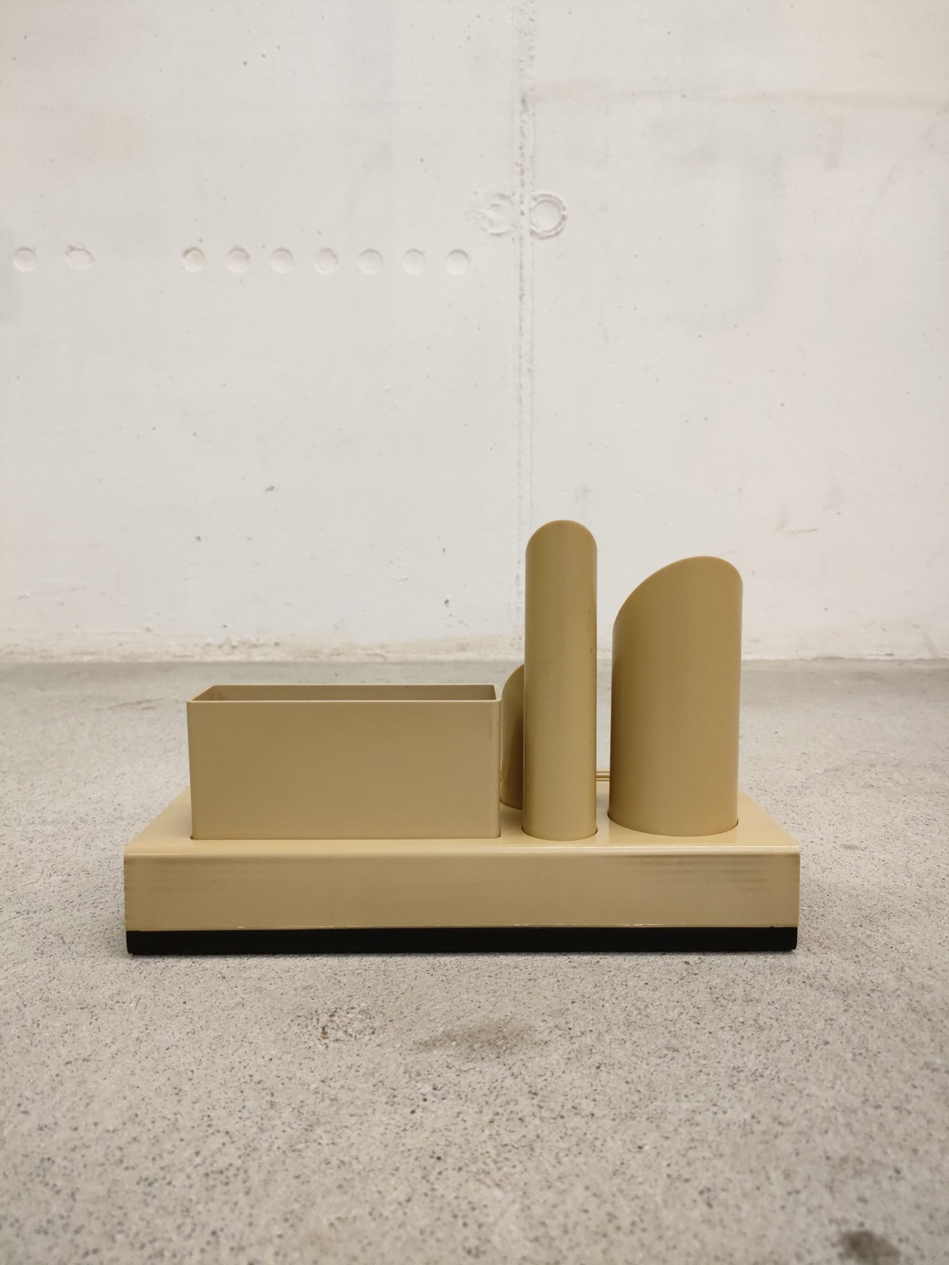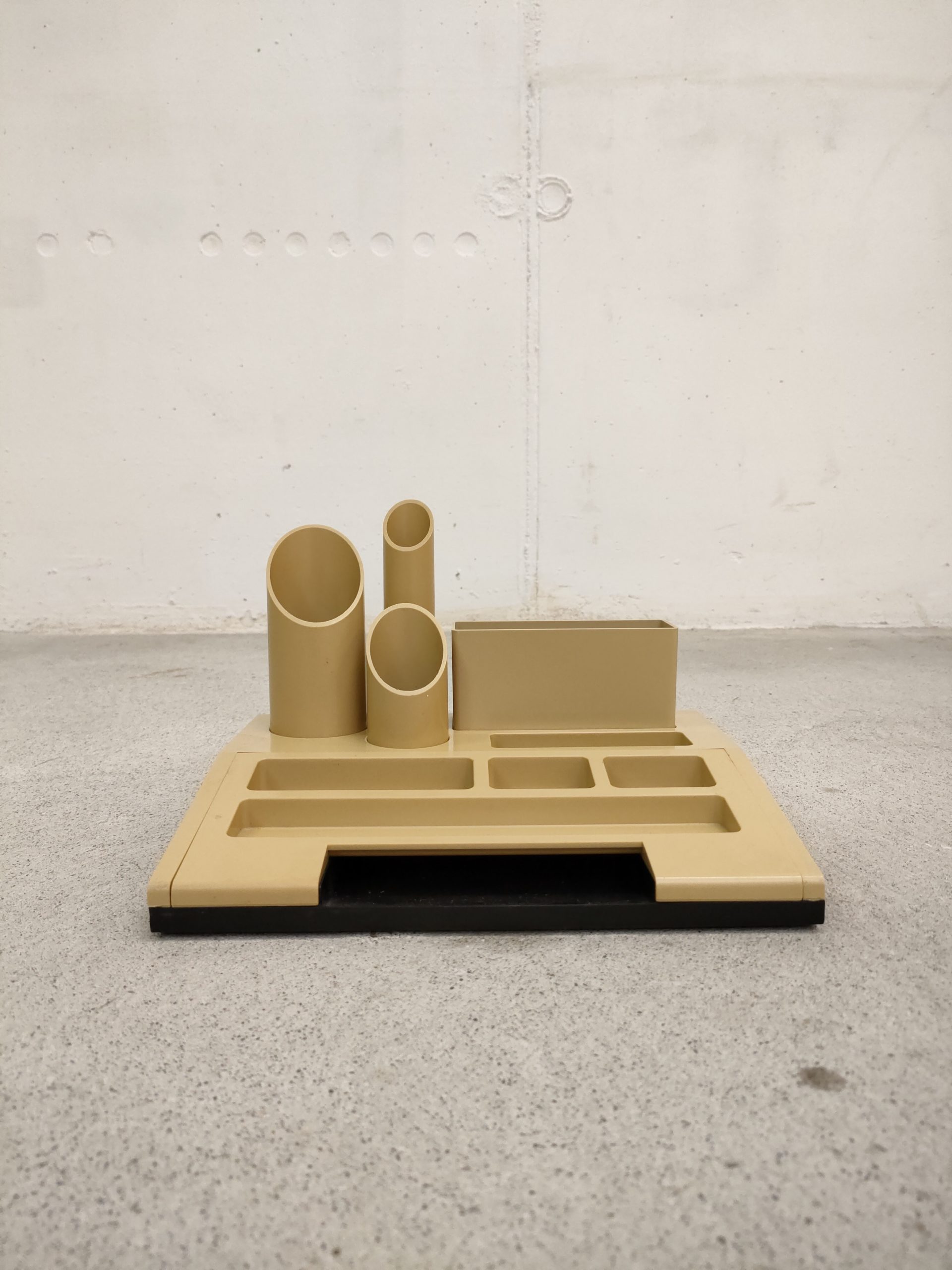 Produit venduOrganisateur de bureau vintage avec de multiples rangements en surface pour stylos, crayons, post-it, trombones, gommes, etc. ainsi qu’un rangement plus discret.