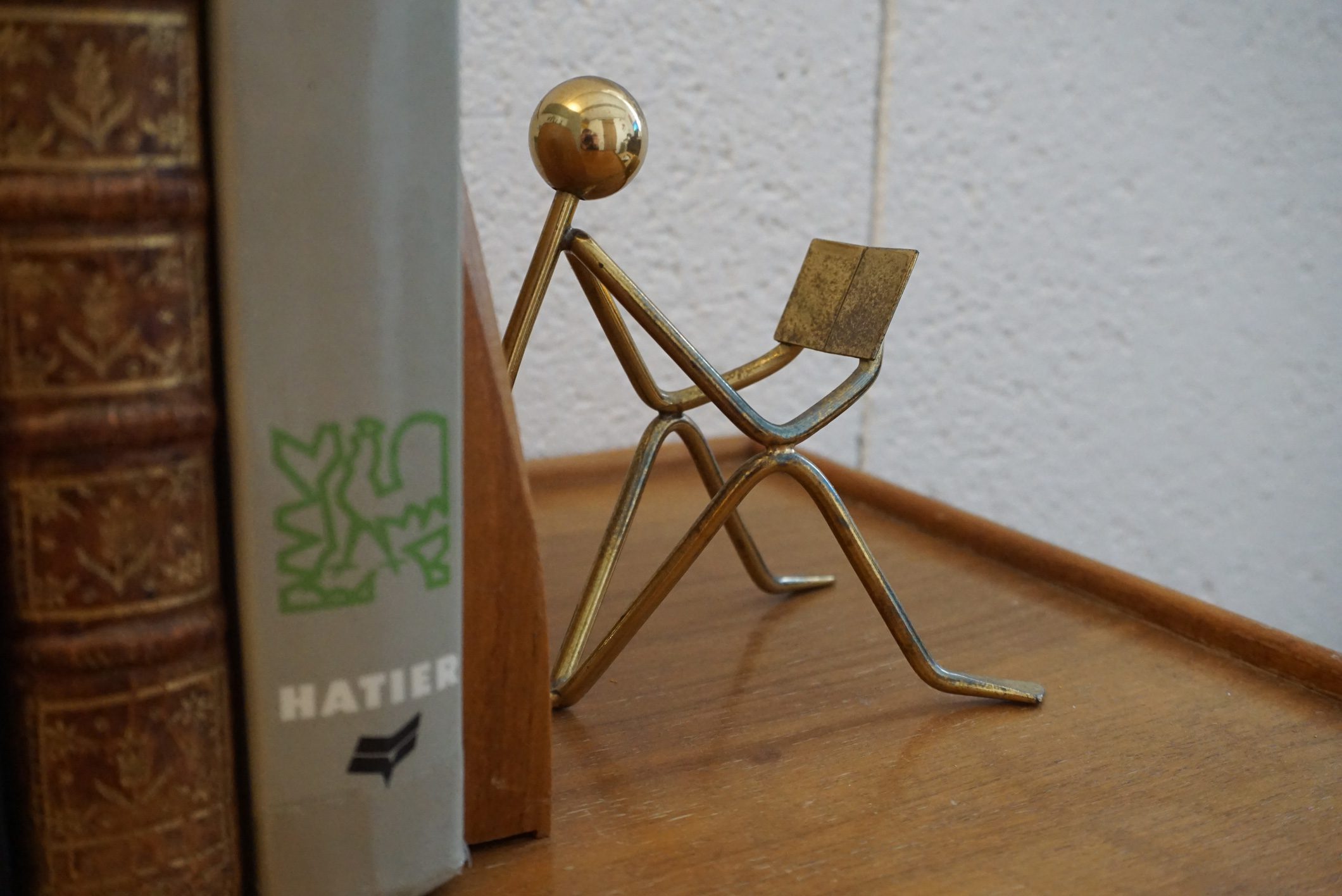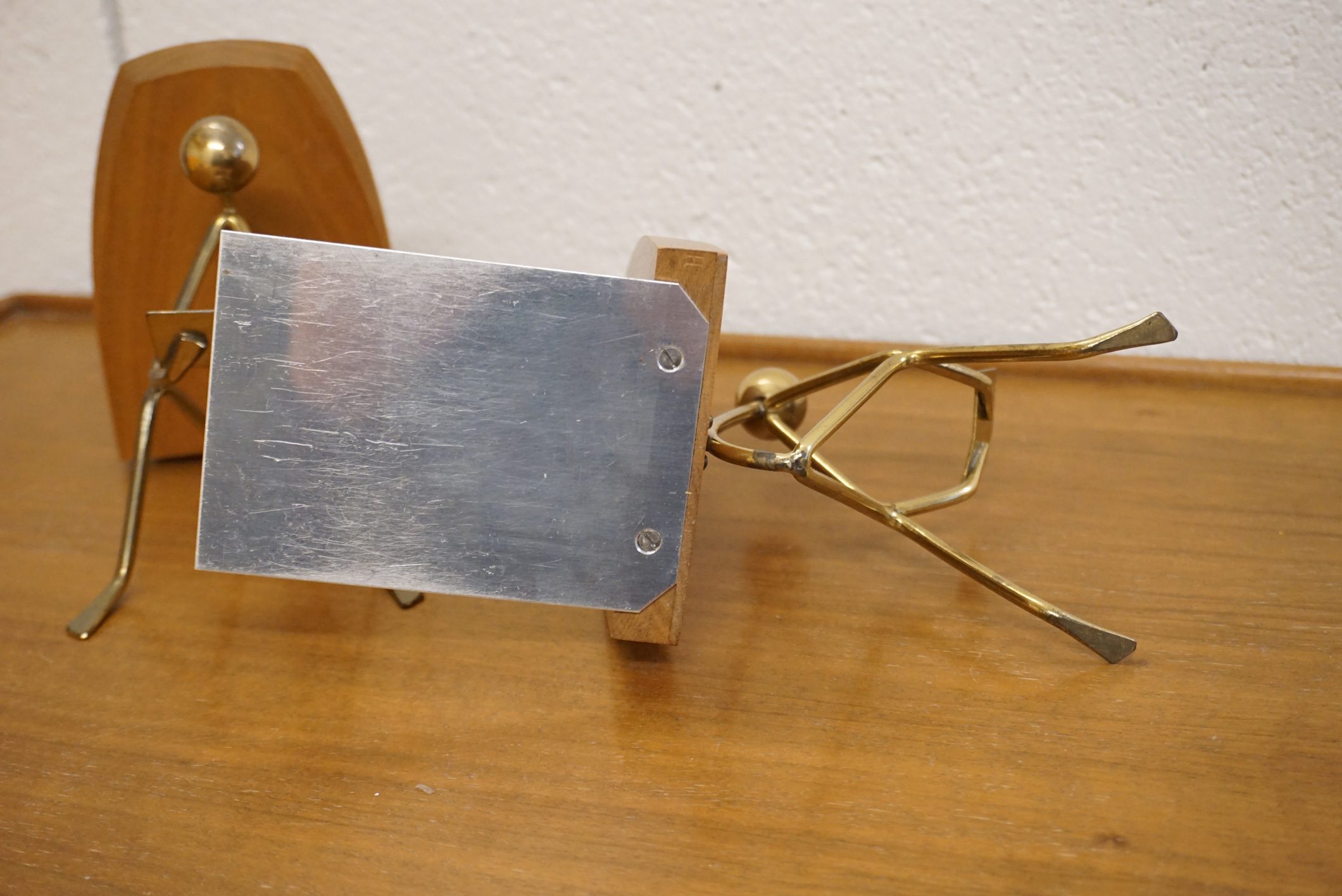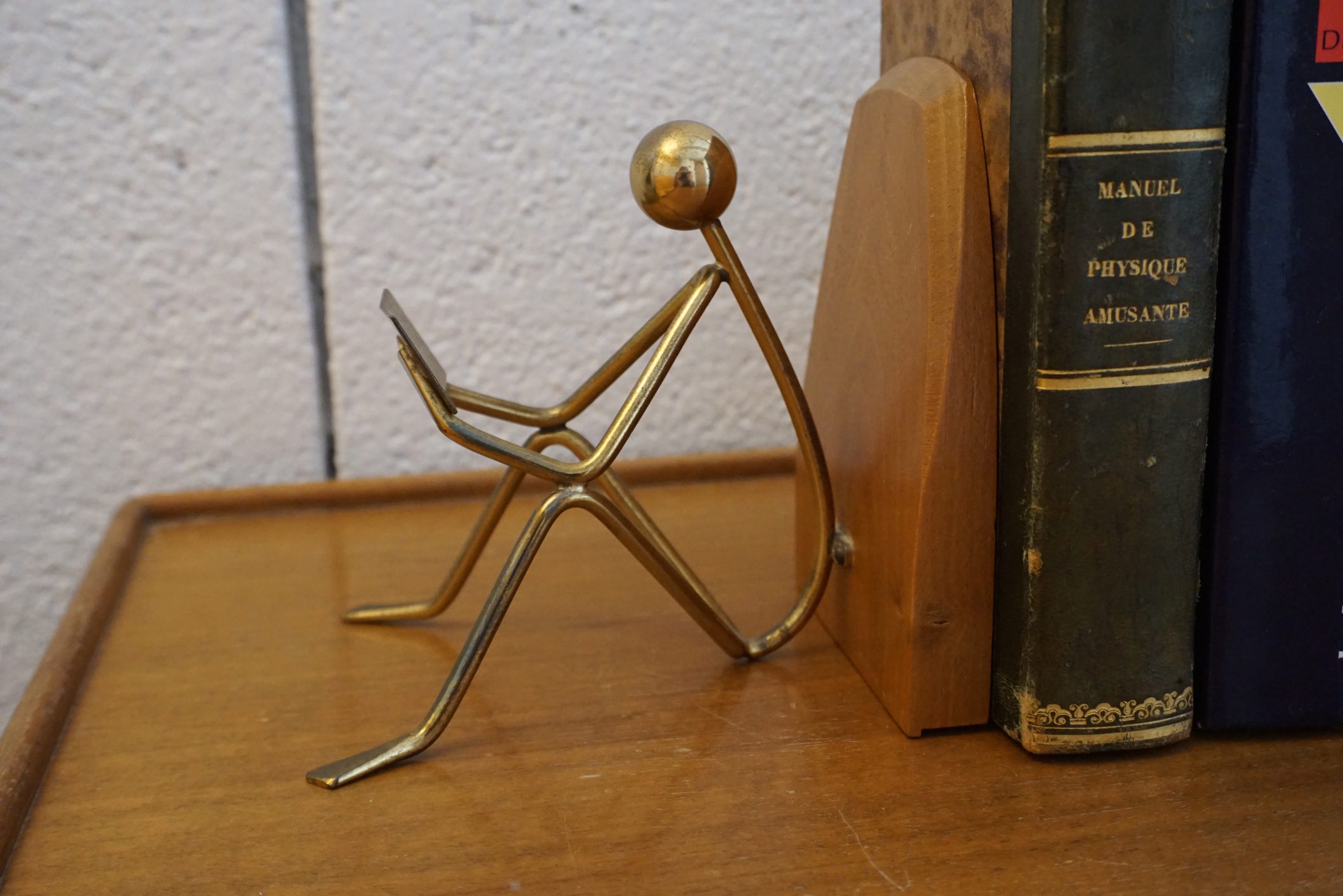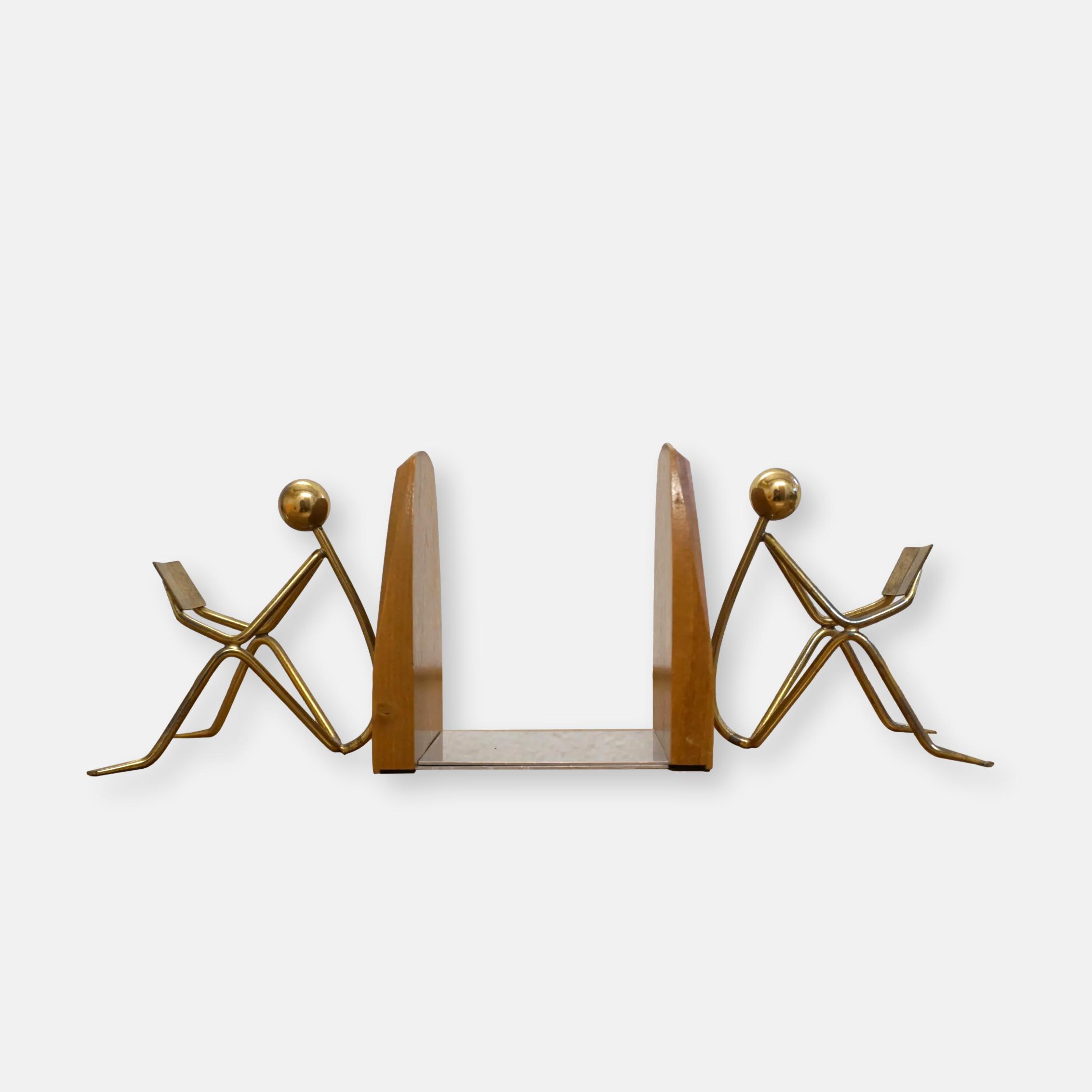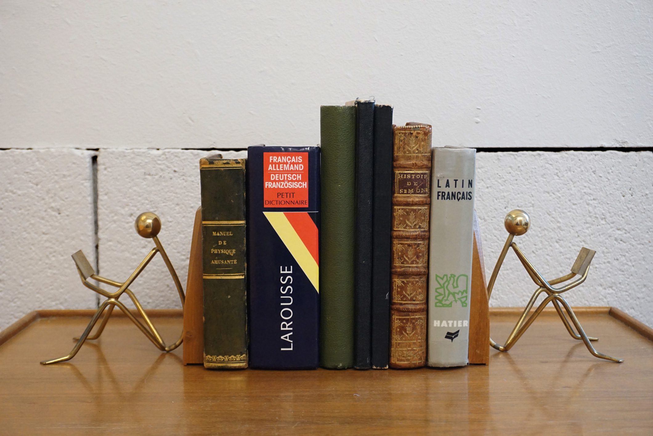 Paire de serre-livres midcentury bois et laiton très original.