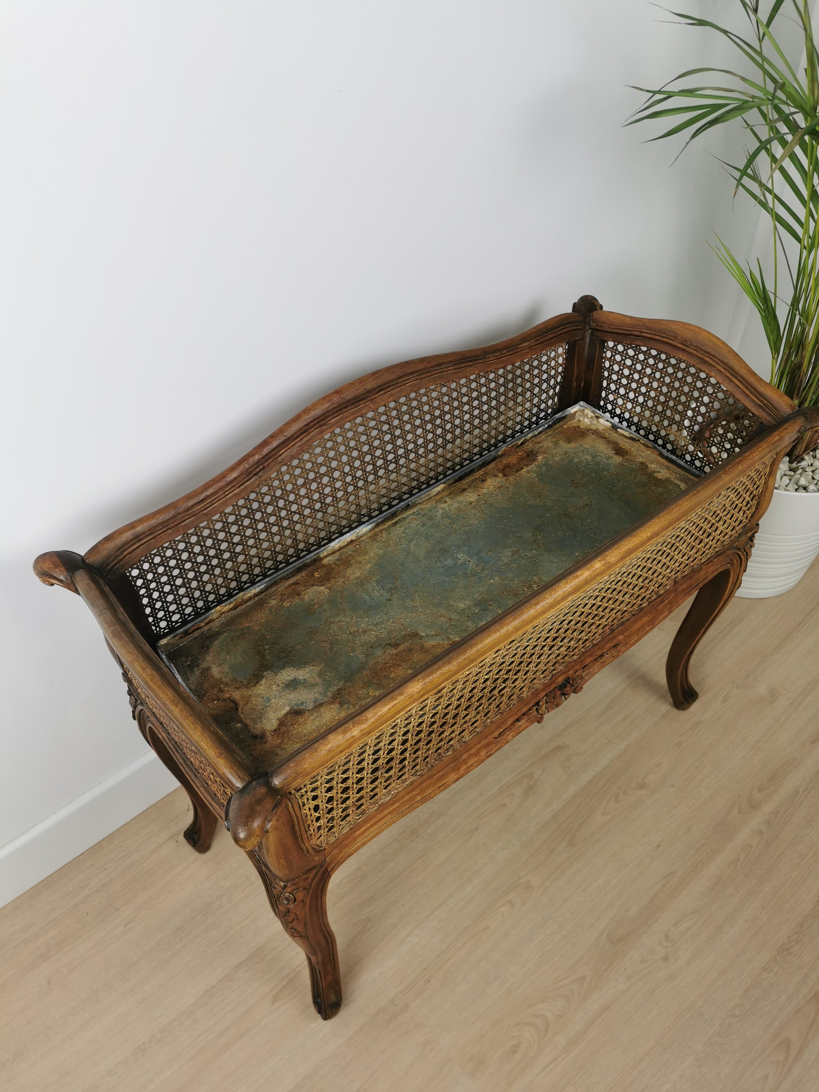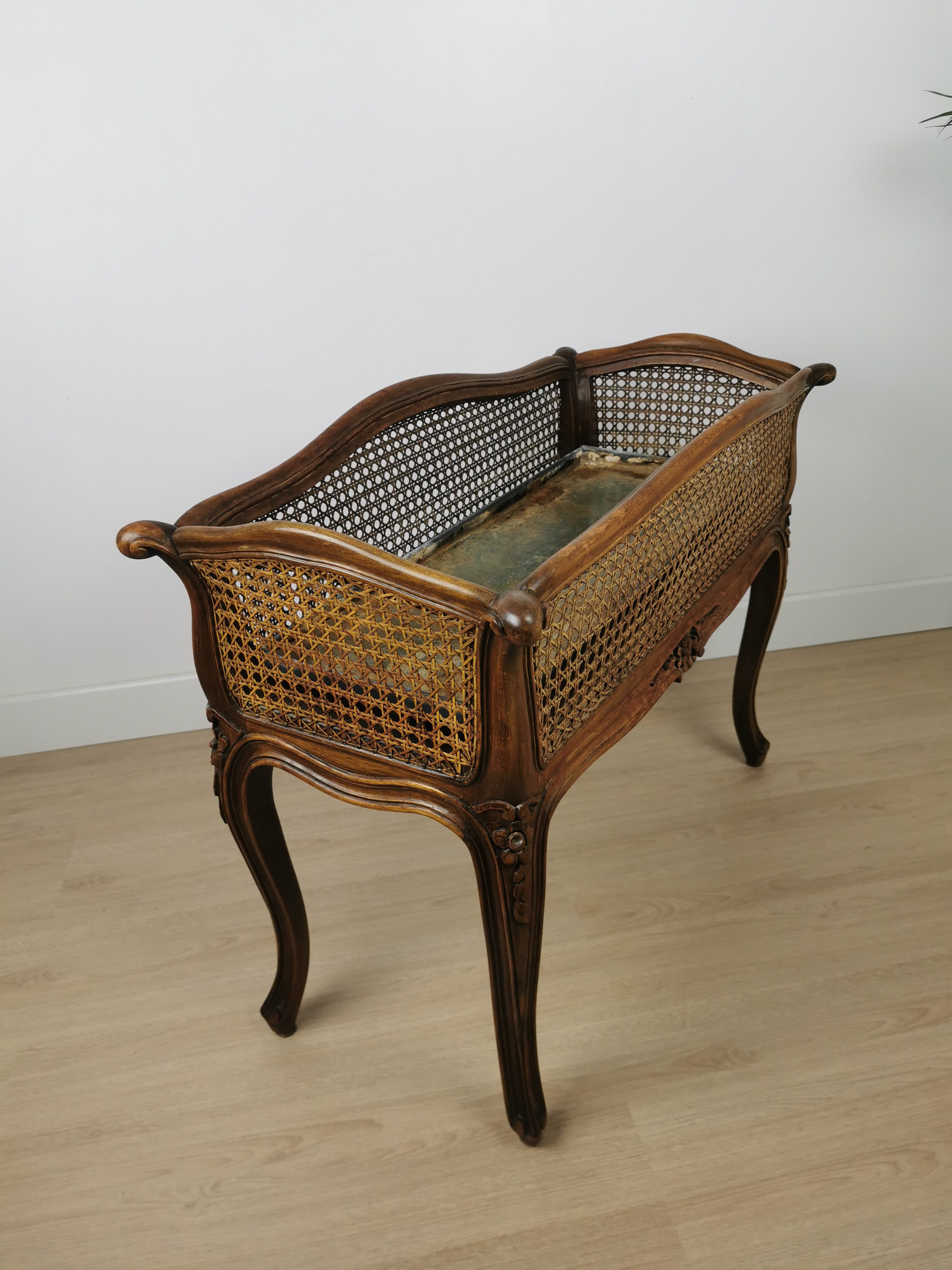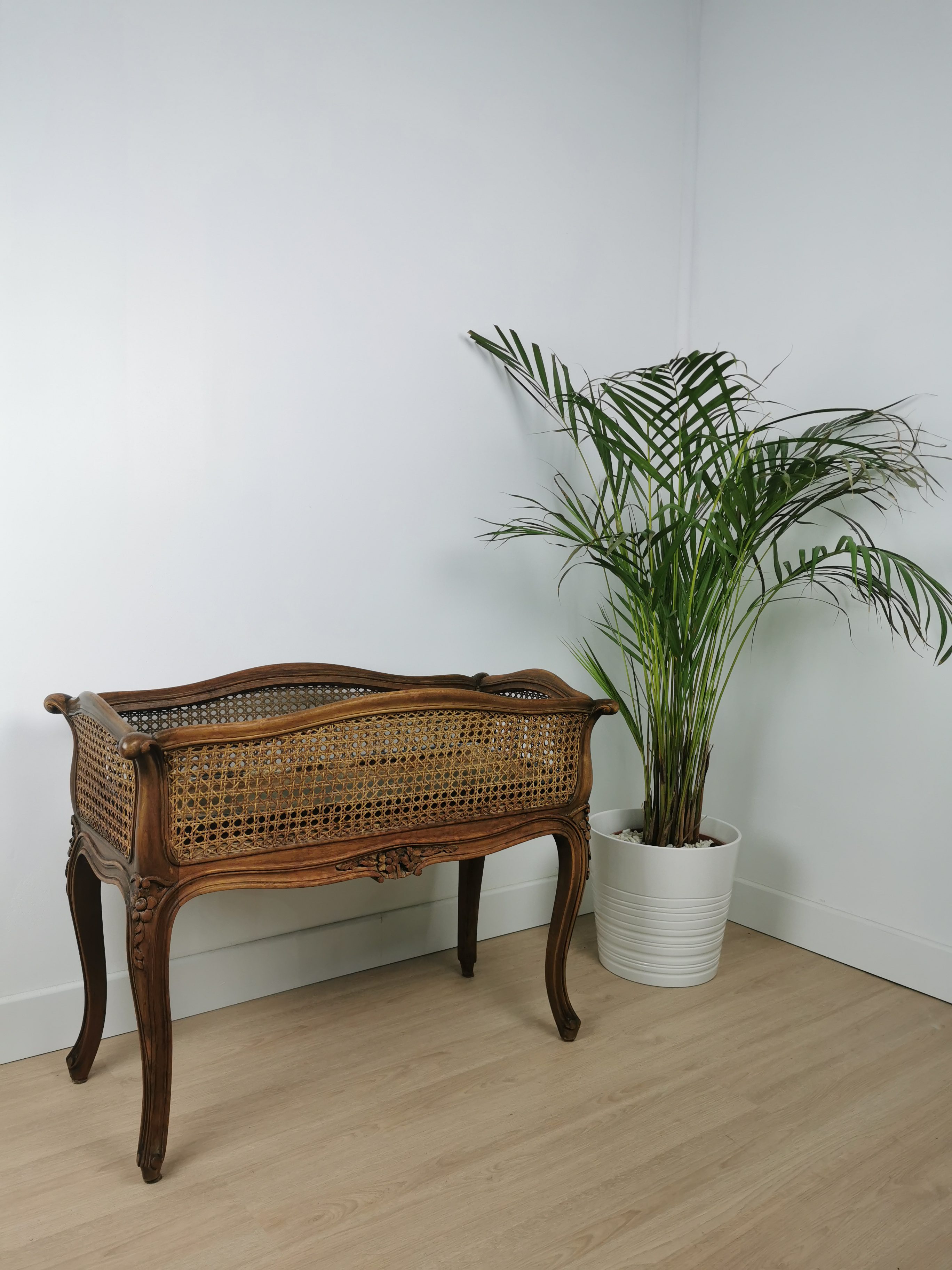 Jardinière en bois et cannage