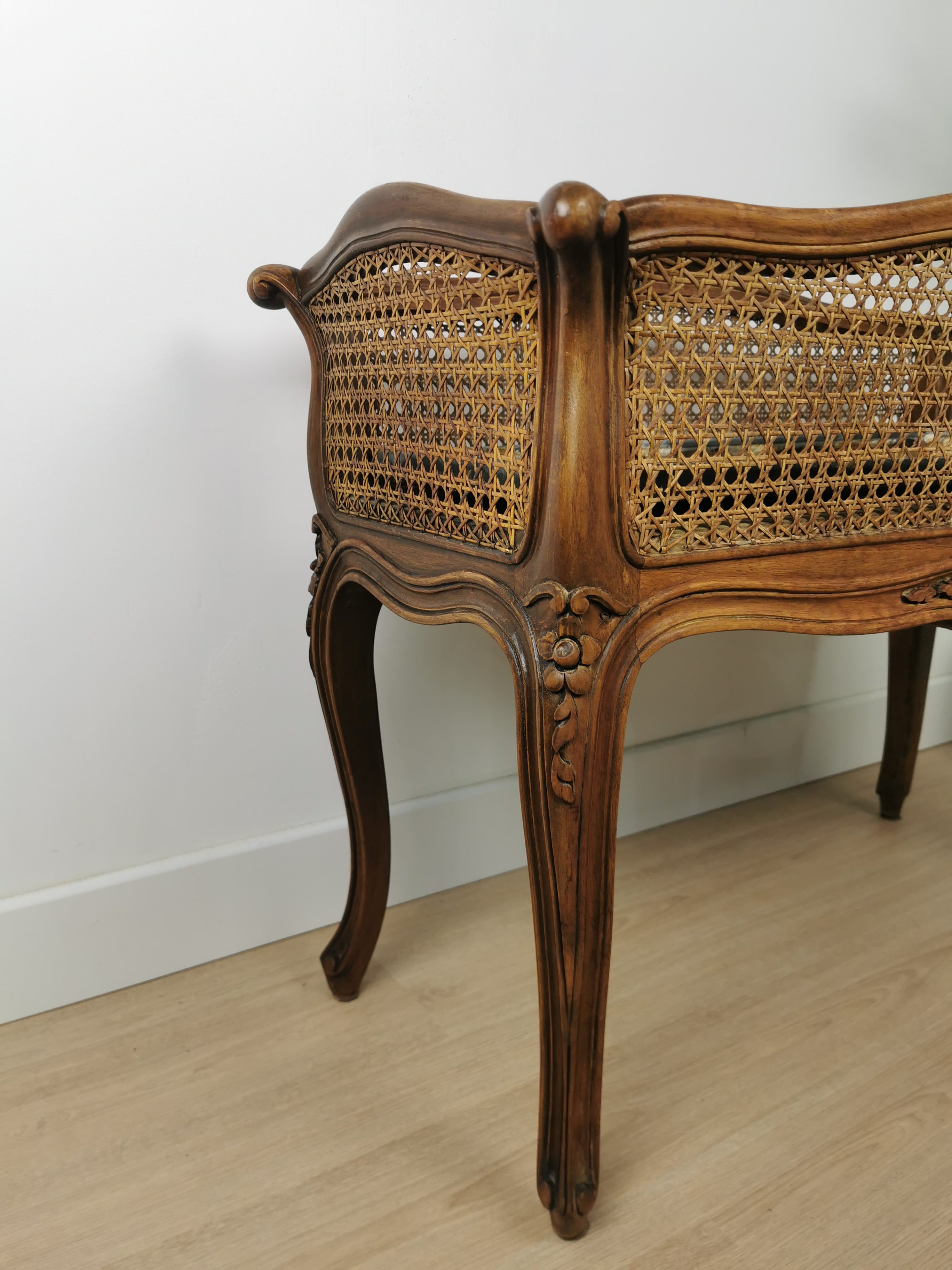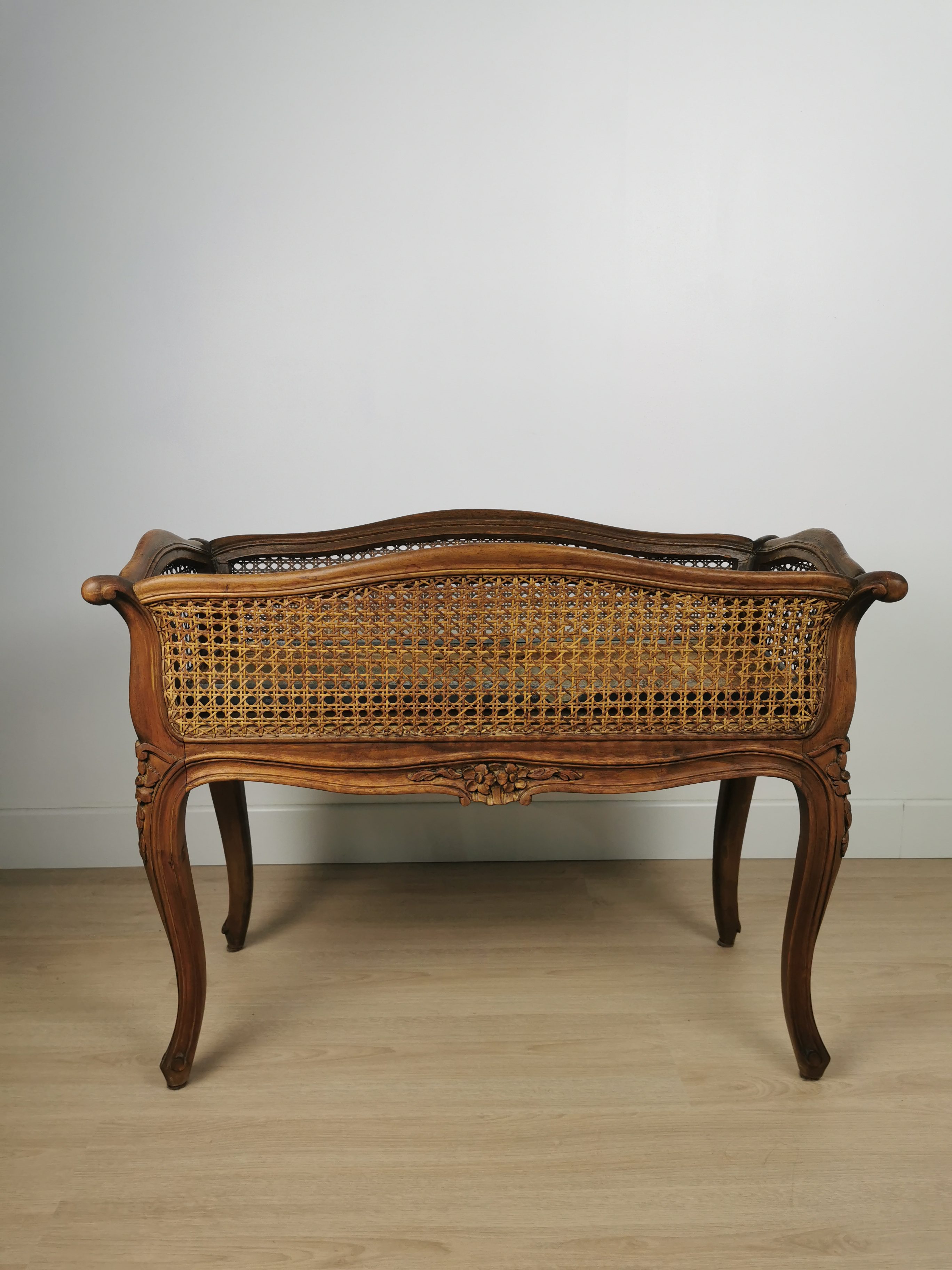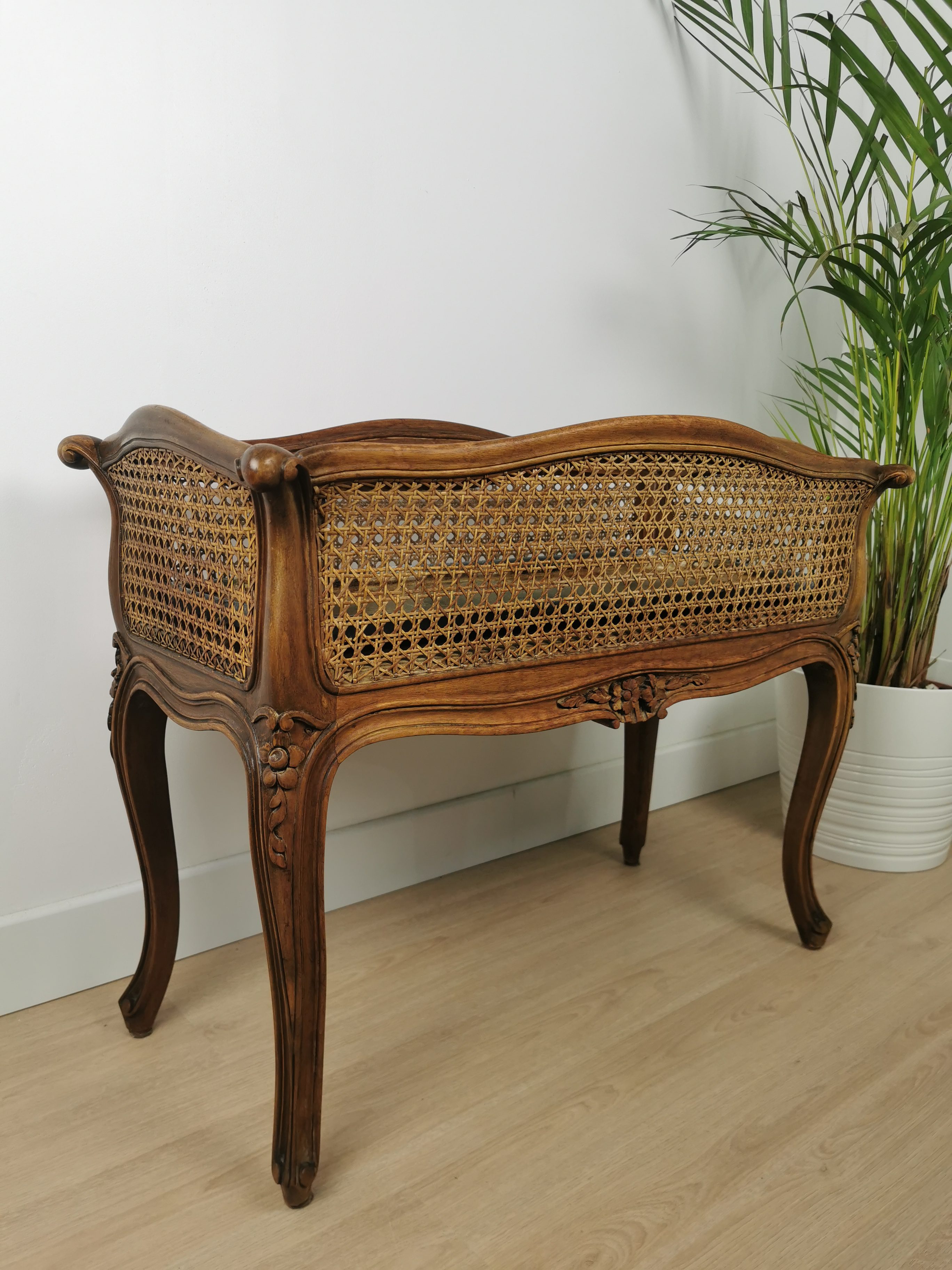 Jardinière en bois et cannage