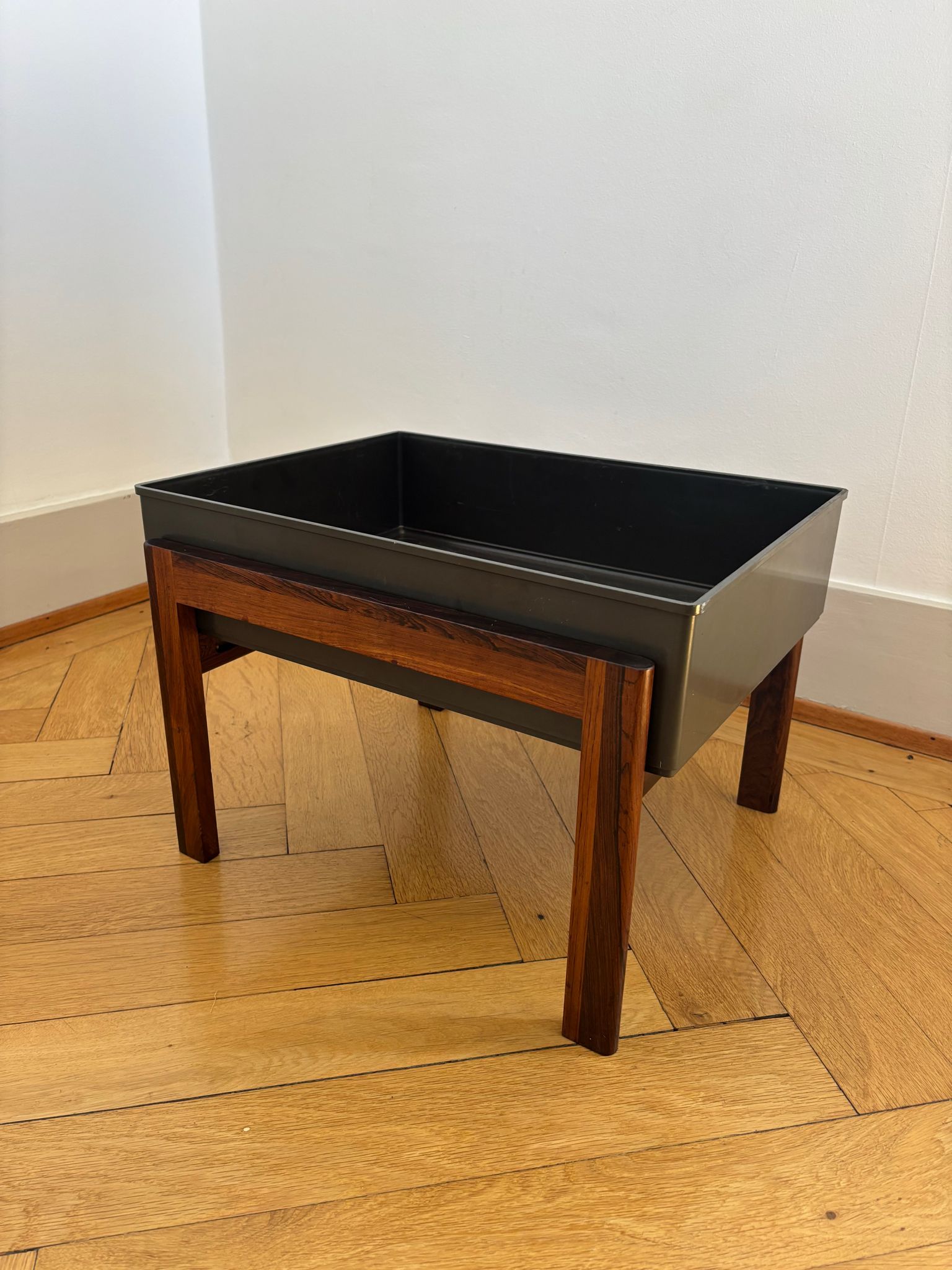 Rare jardinière scandinave datant des années 1960–70. Les pieds en palissandre sont en excellent état.