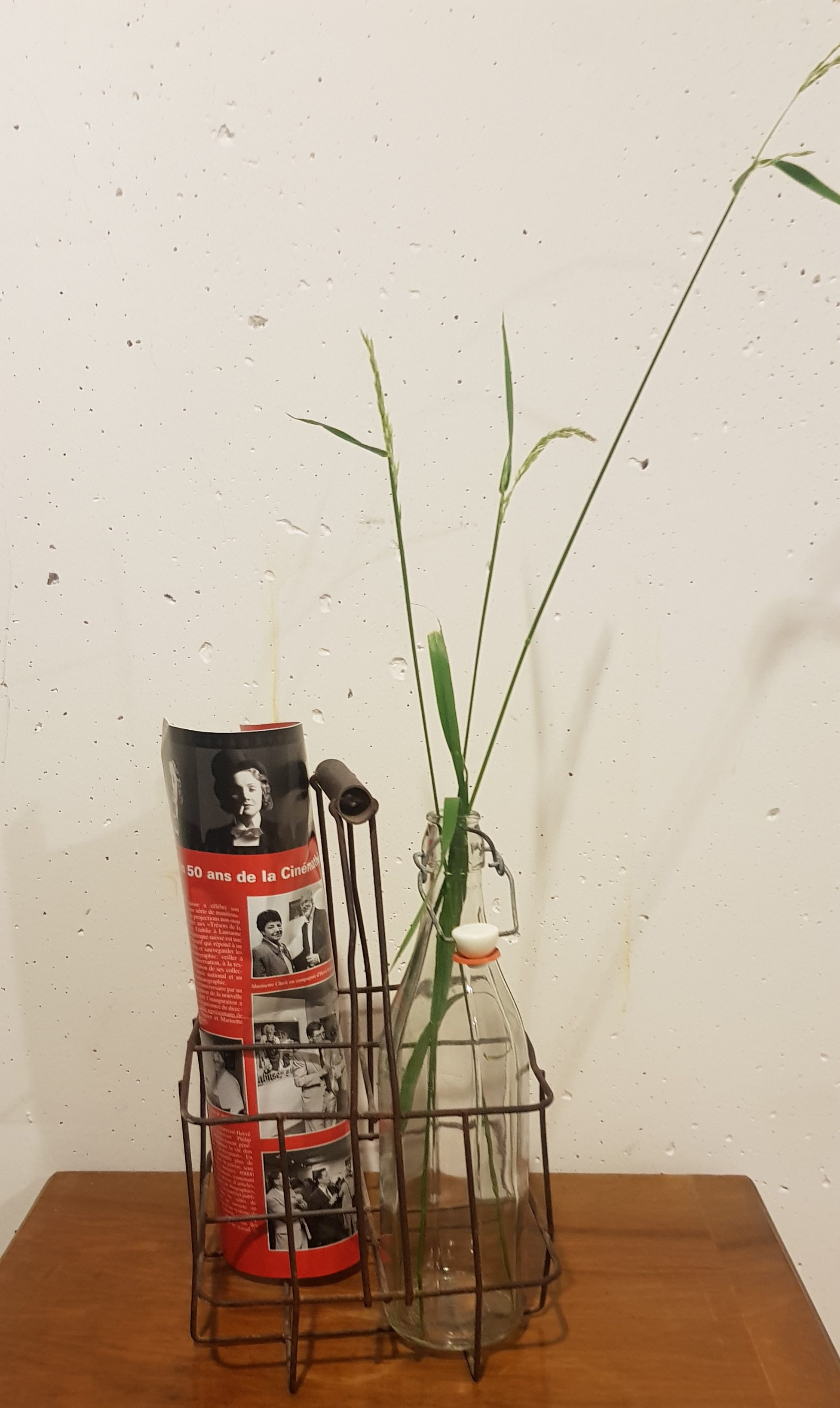 Porte-bouteille ou porte-journal à 4 compartiments en métal.