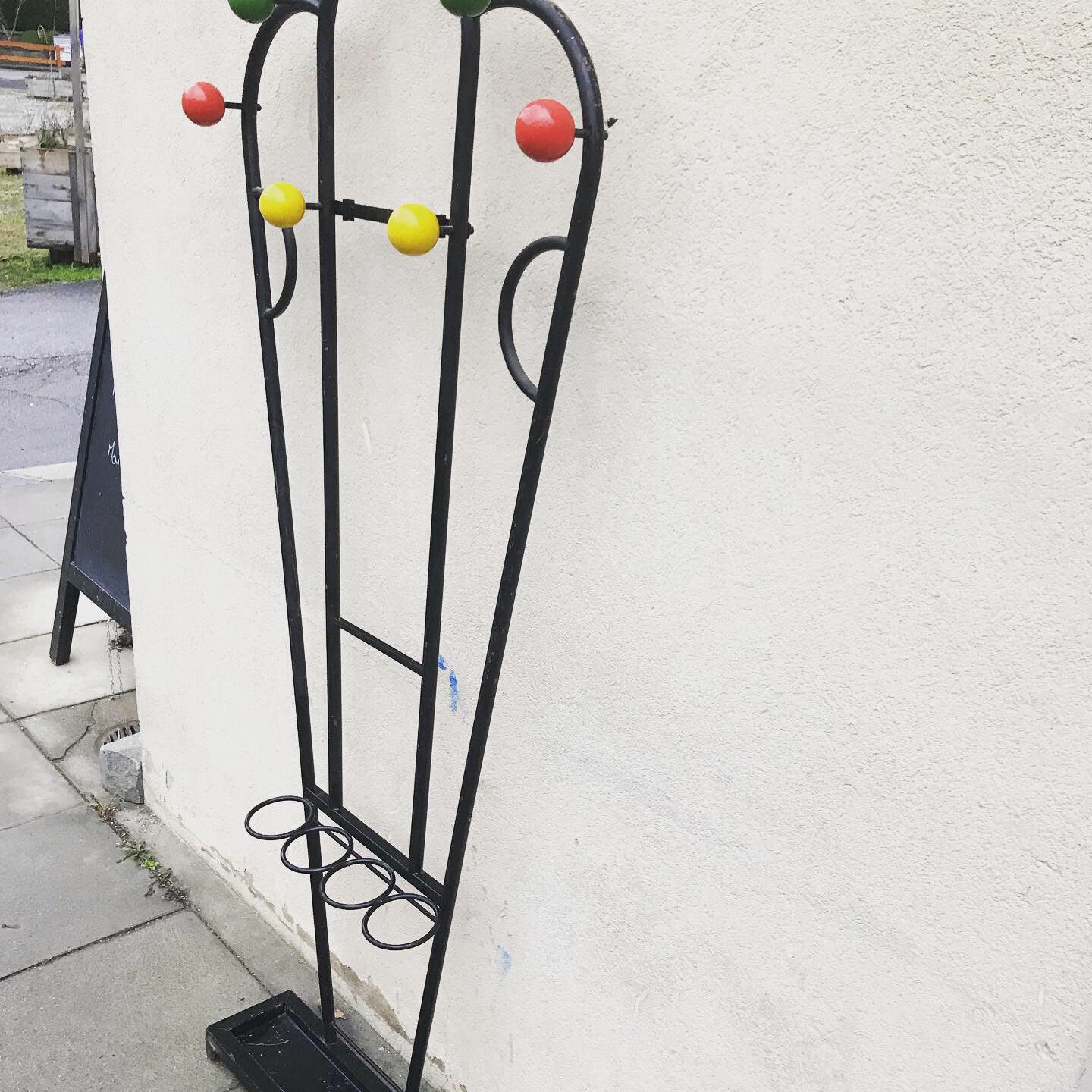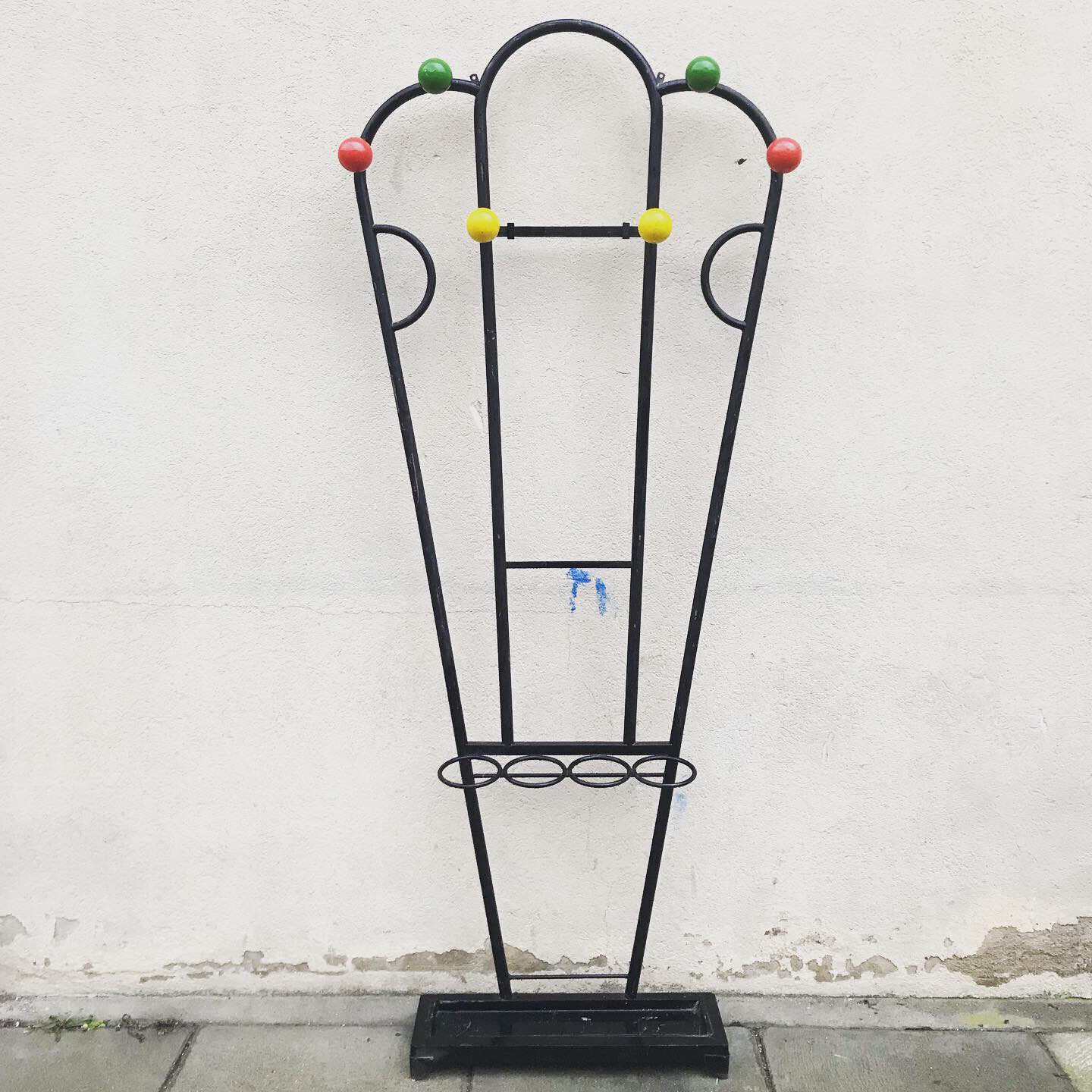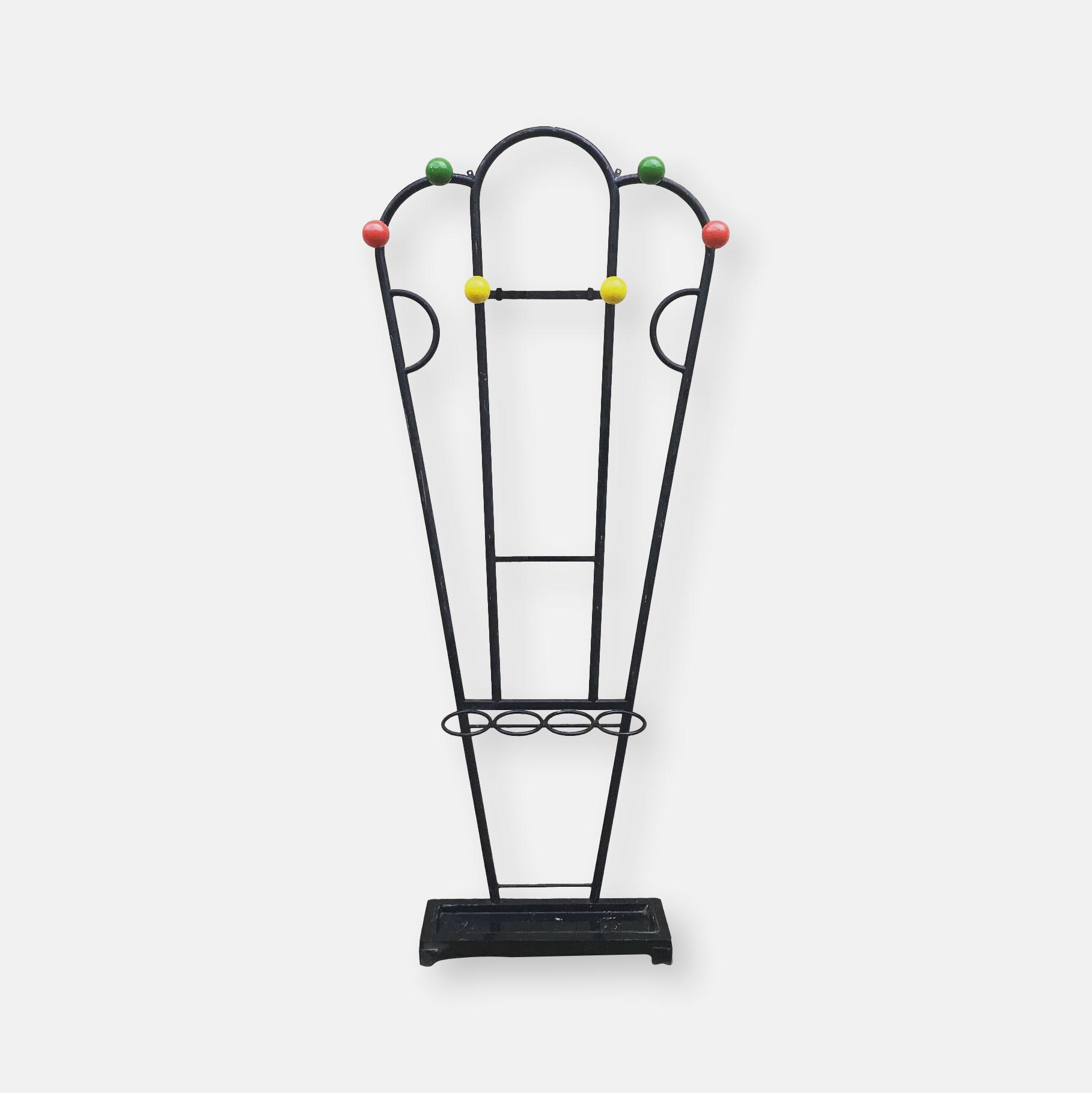 Produit venduMagnifique porte-manteau et porte-parapluie, les boules colorées sont en bois, comme à l’époque !