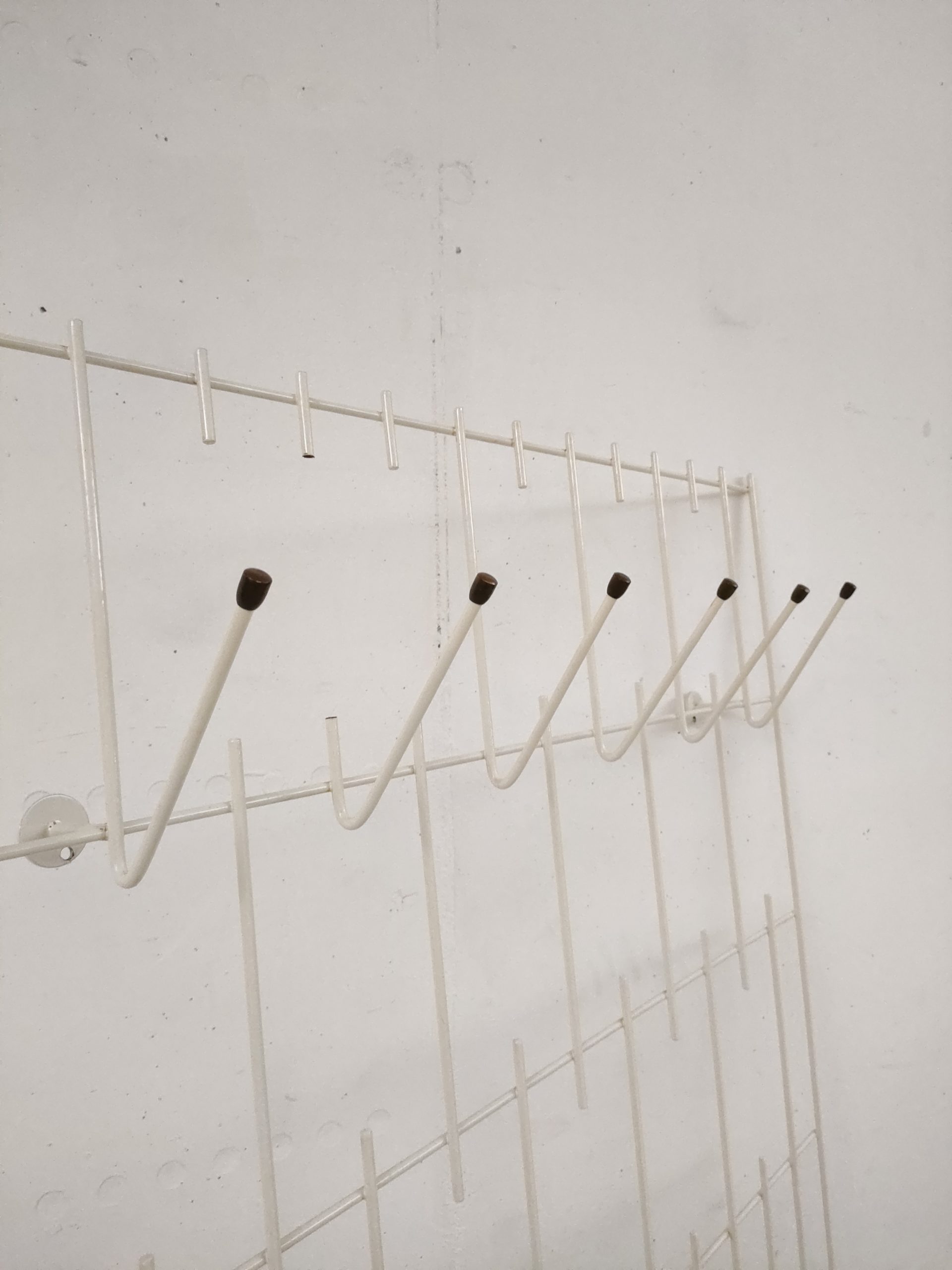 Porte-manteaux mural vintage en métal blanc doté de 6 crochets.