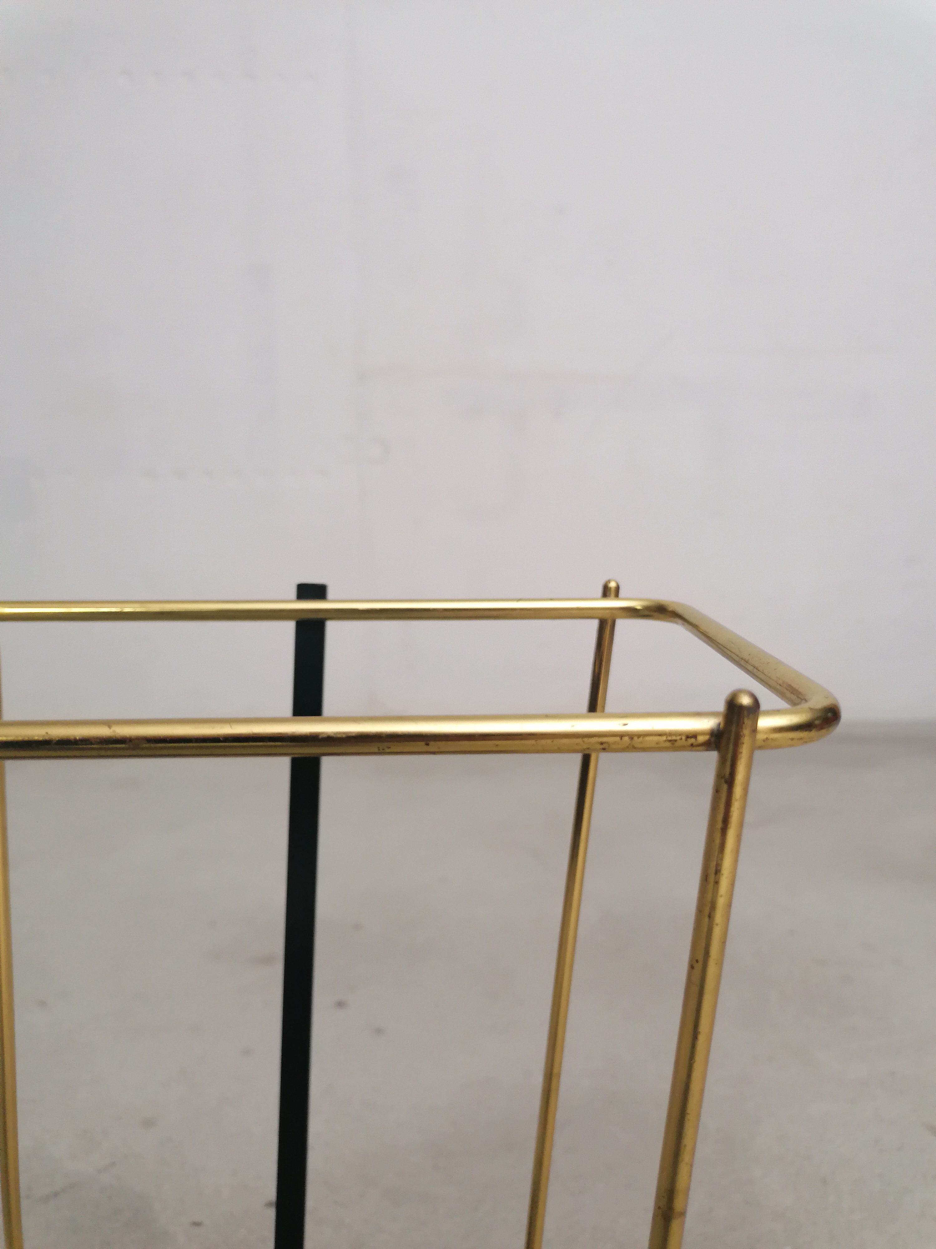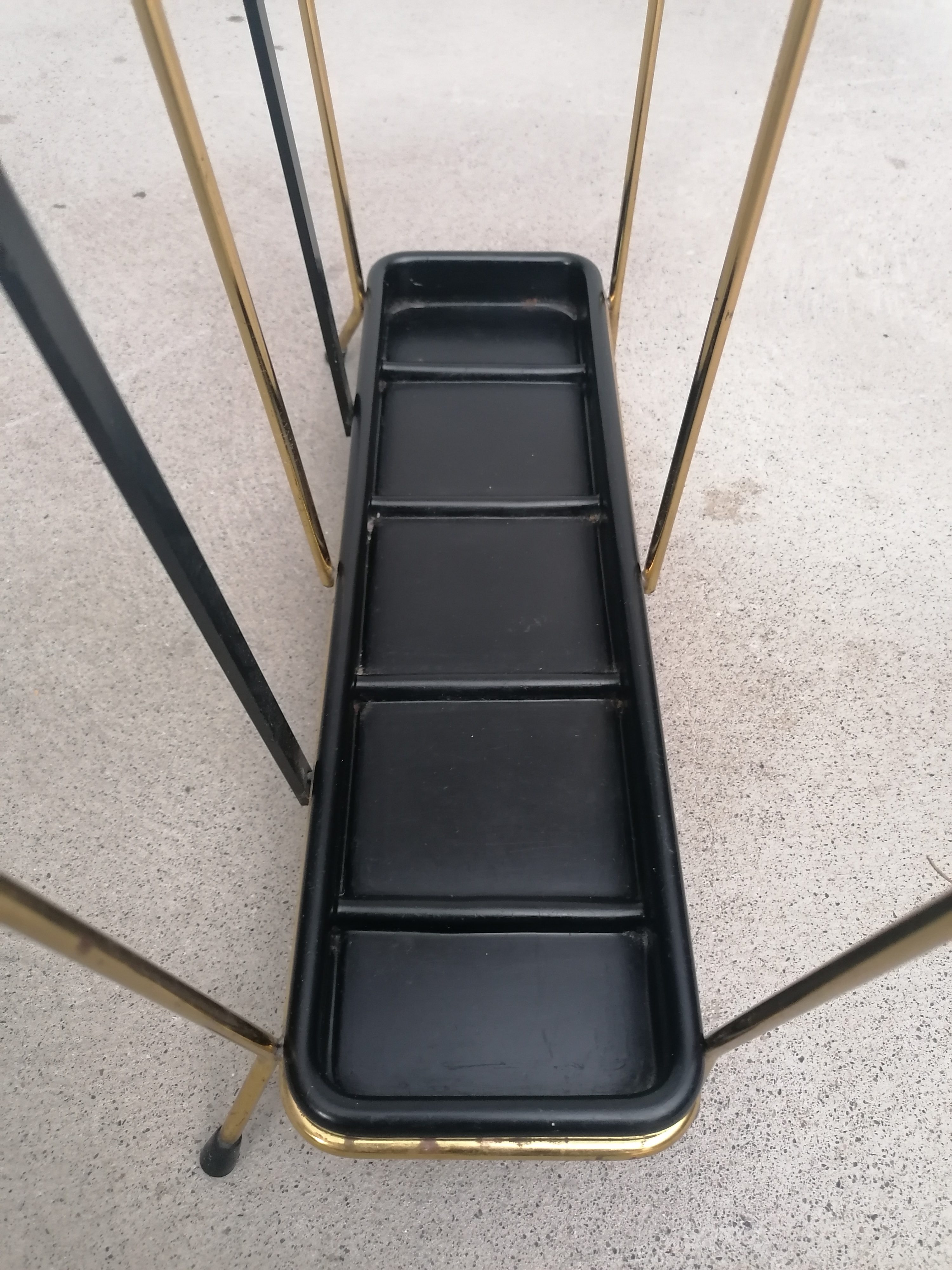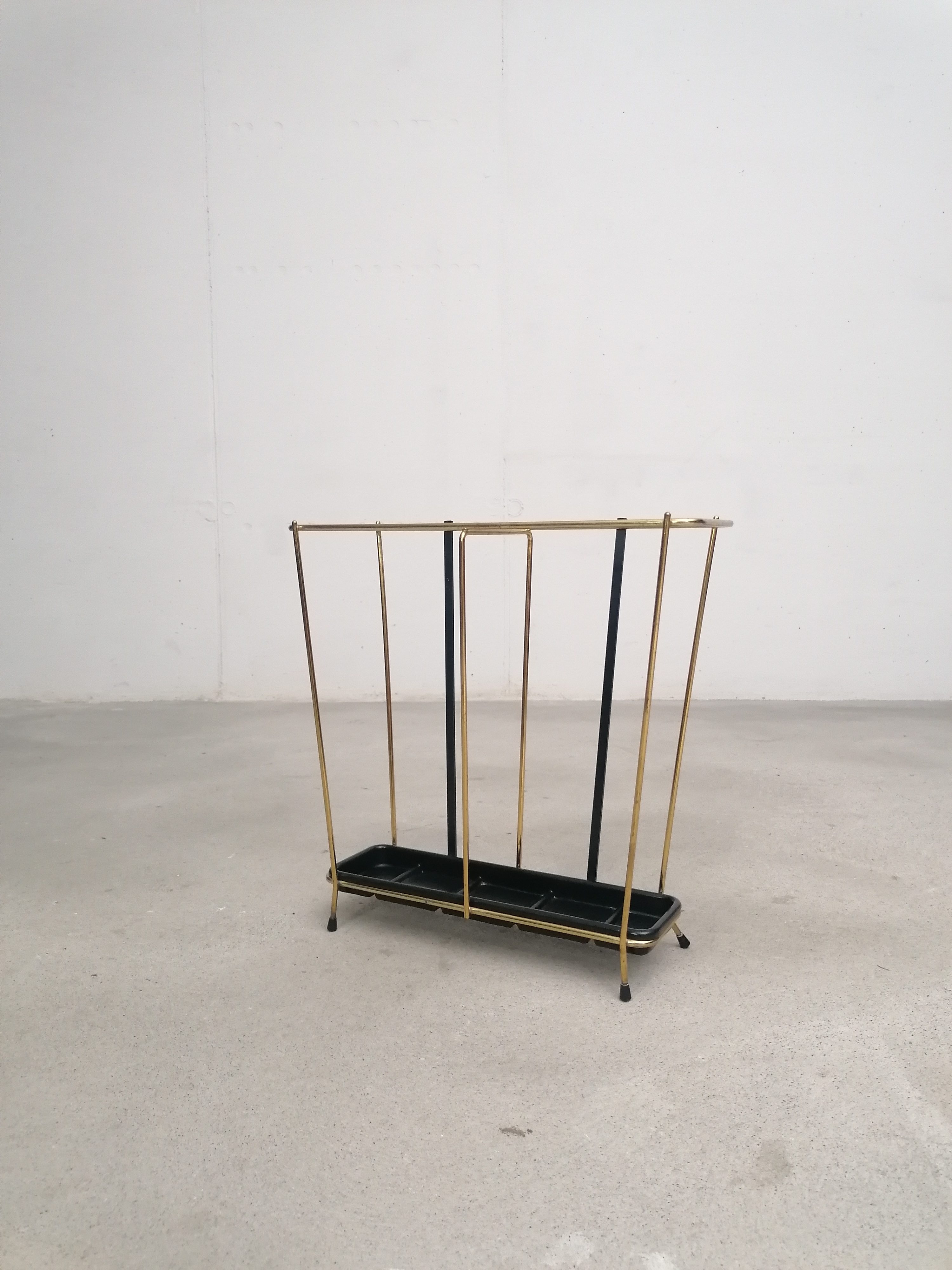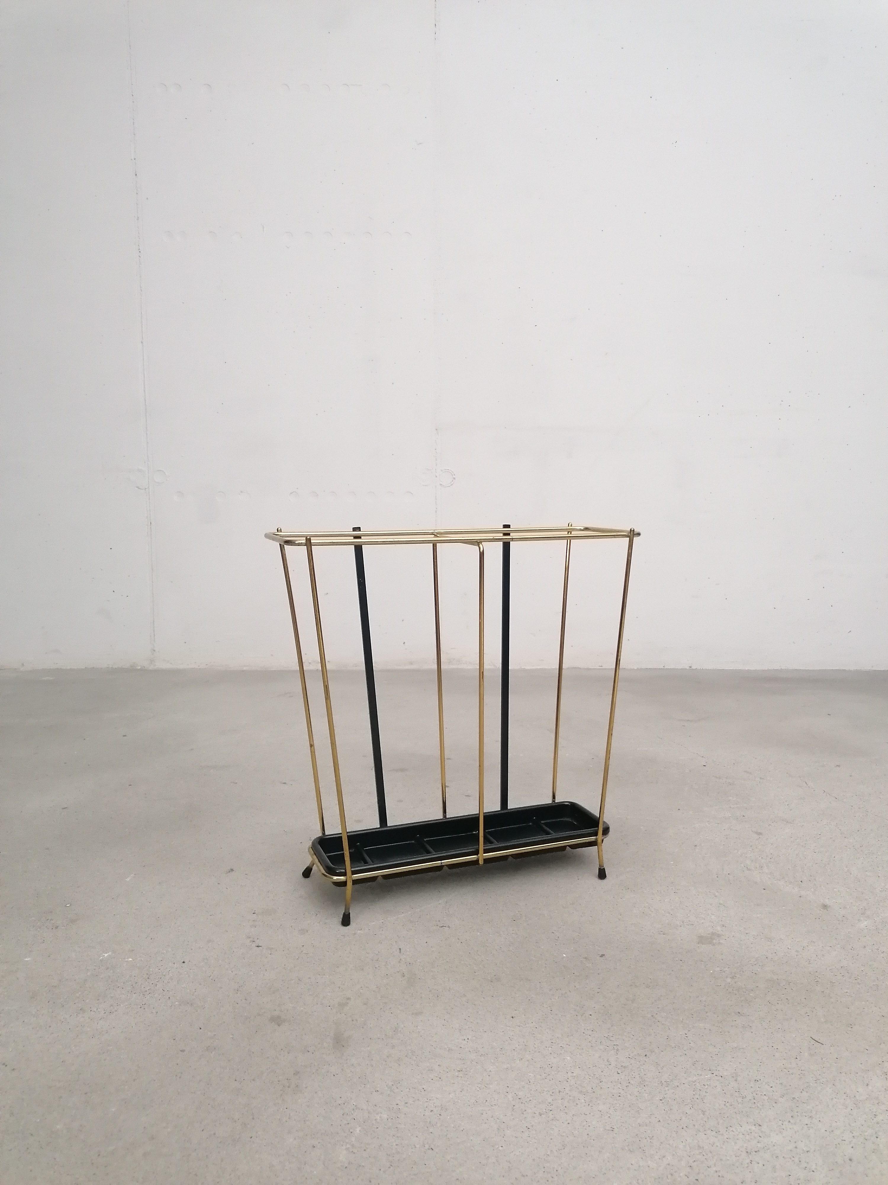 Porte-parapluies vintage avec structure en métal doré et noir et bac amovible en plastique. En bon état et très élégant.