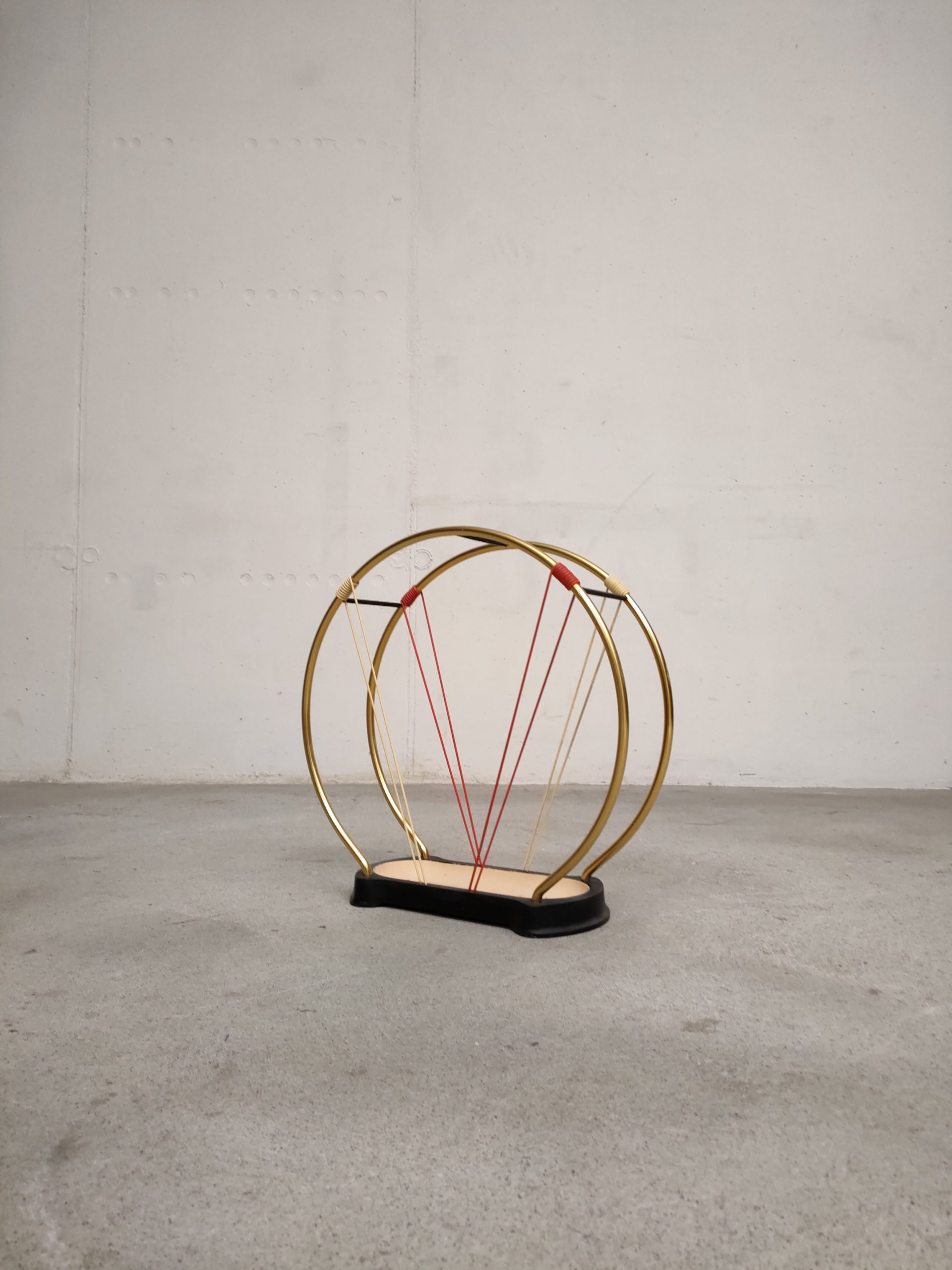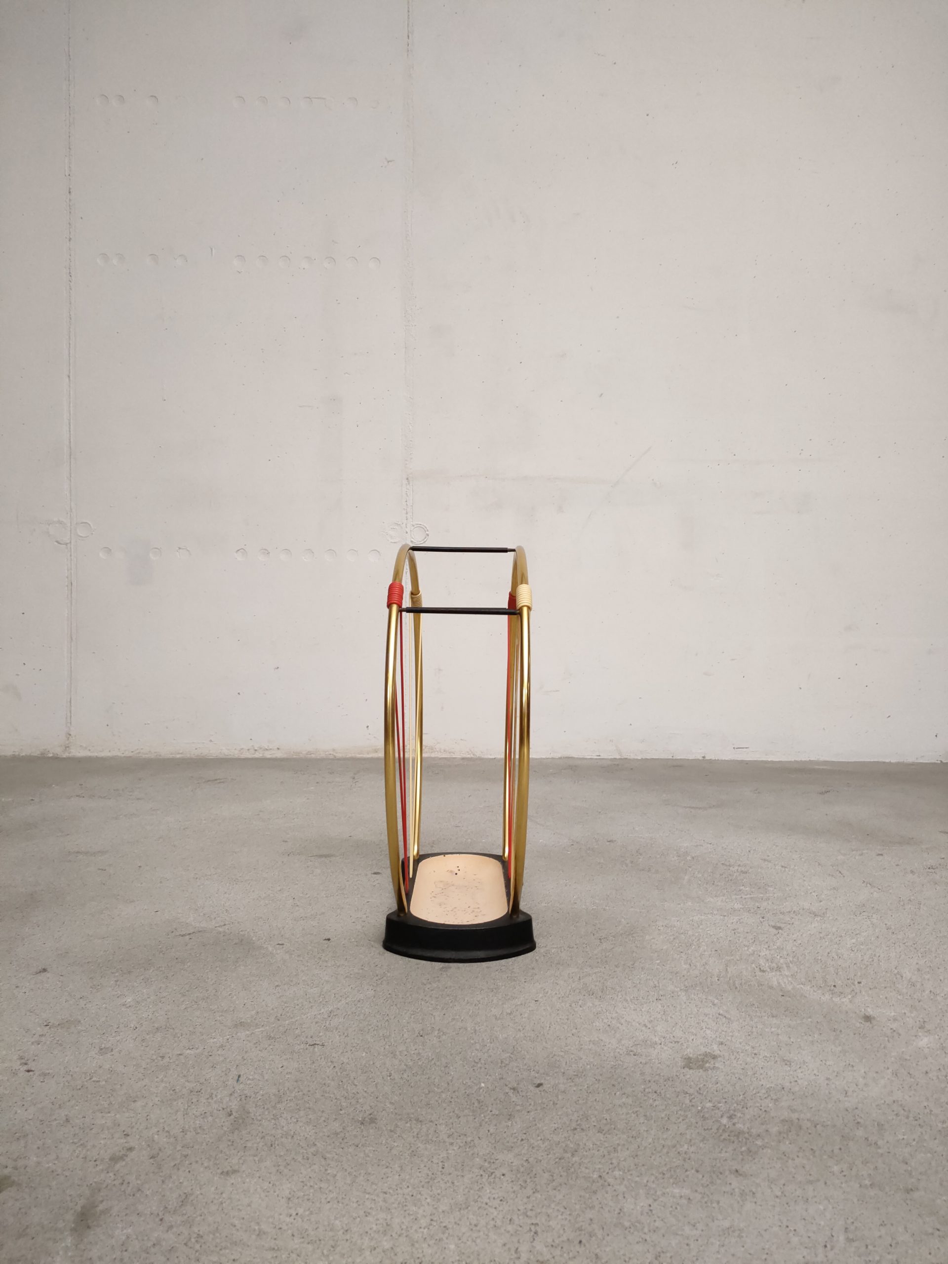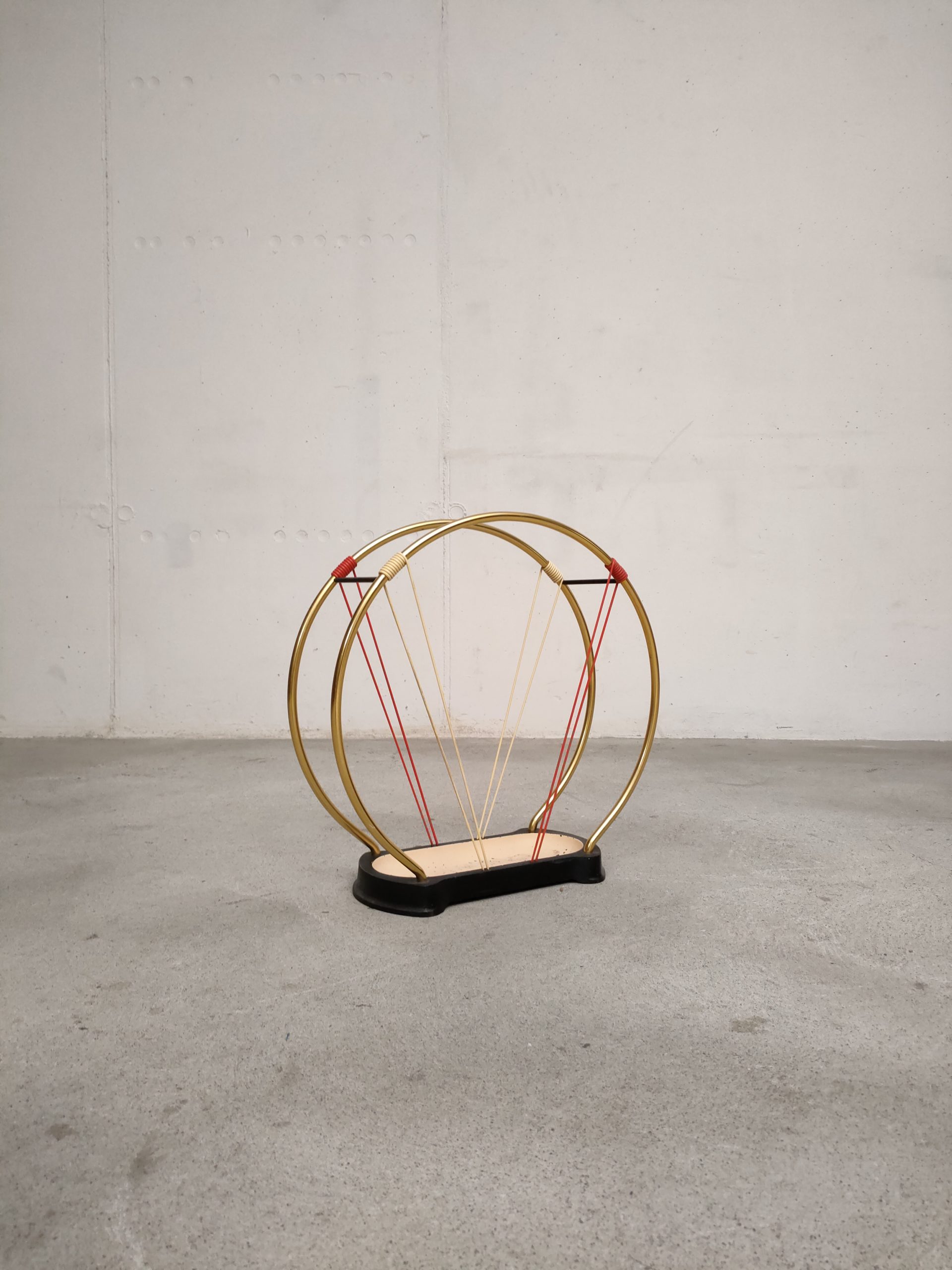 Produit venduRare porte-parapluies rond en métal doré, scoubidou et piétement en fonte des années 50.