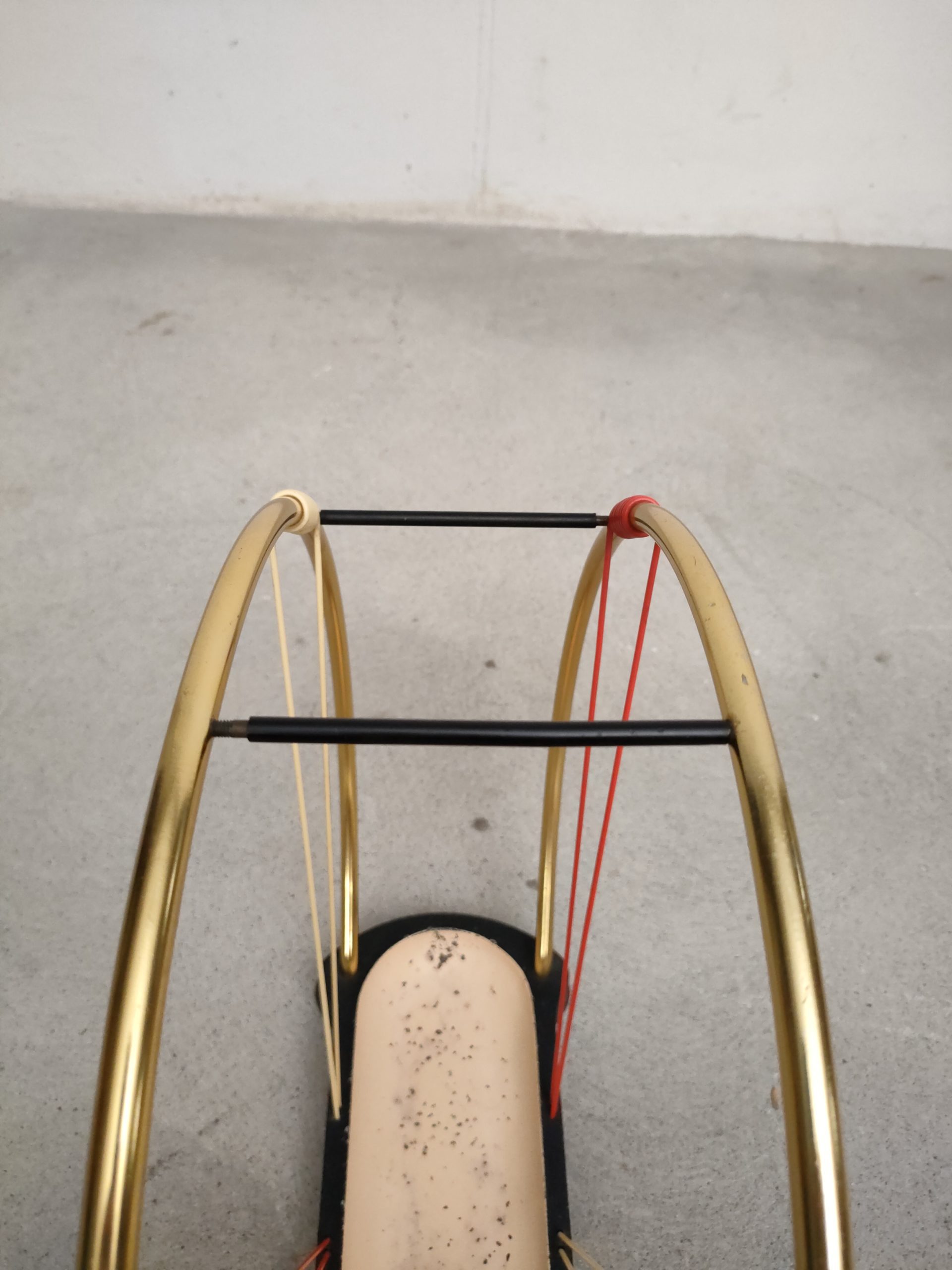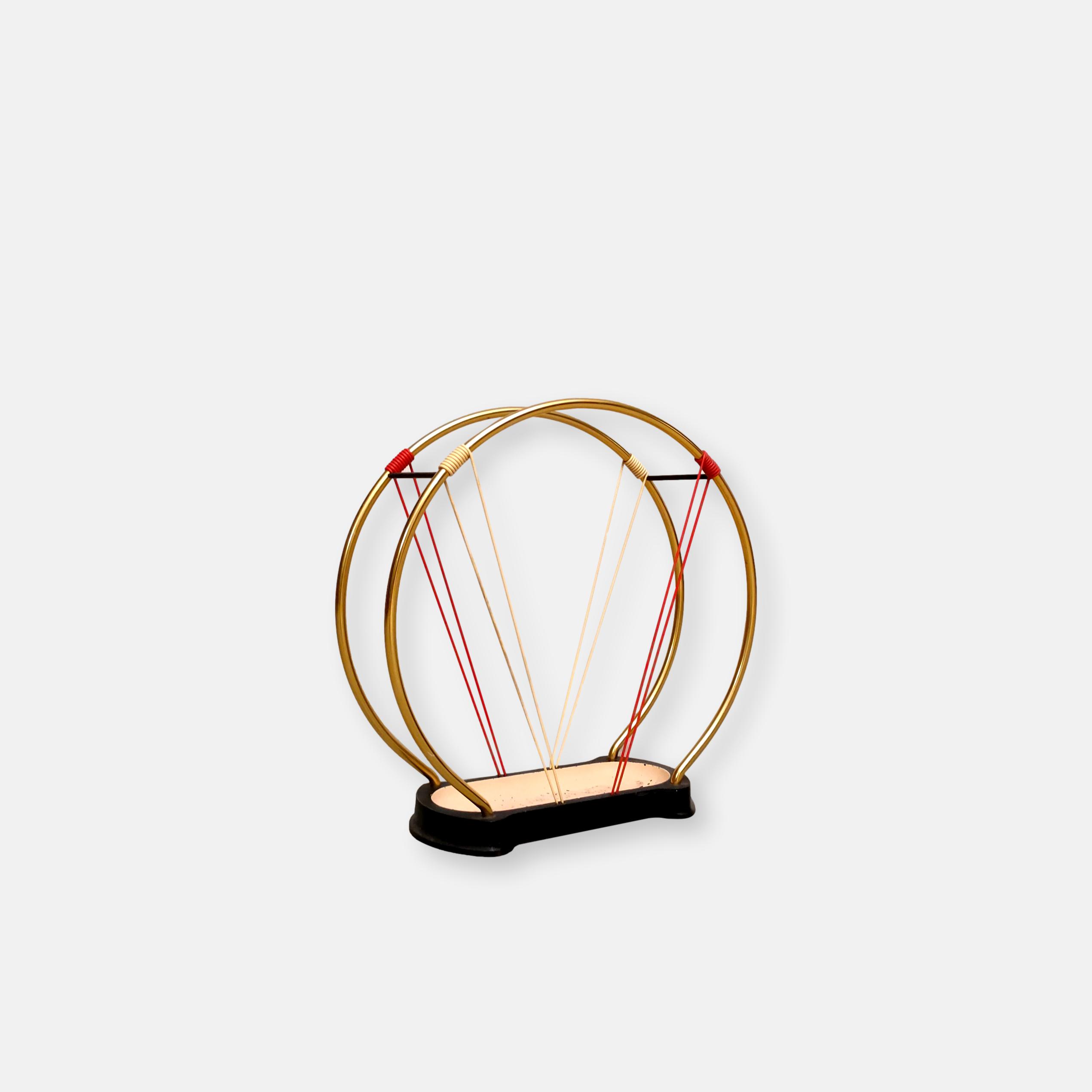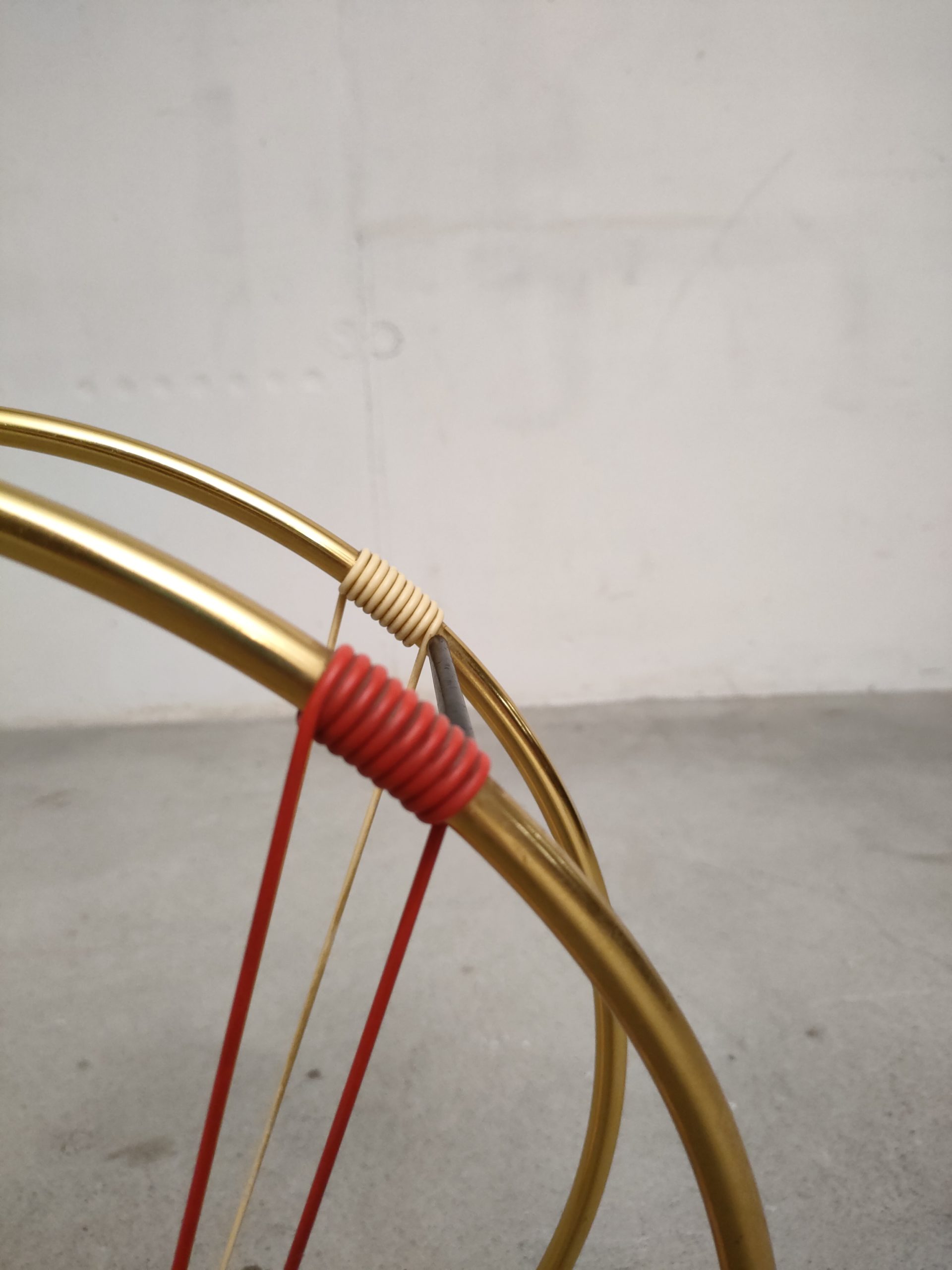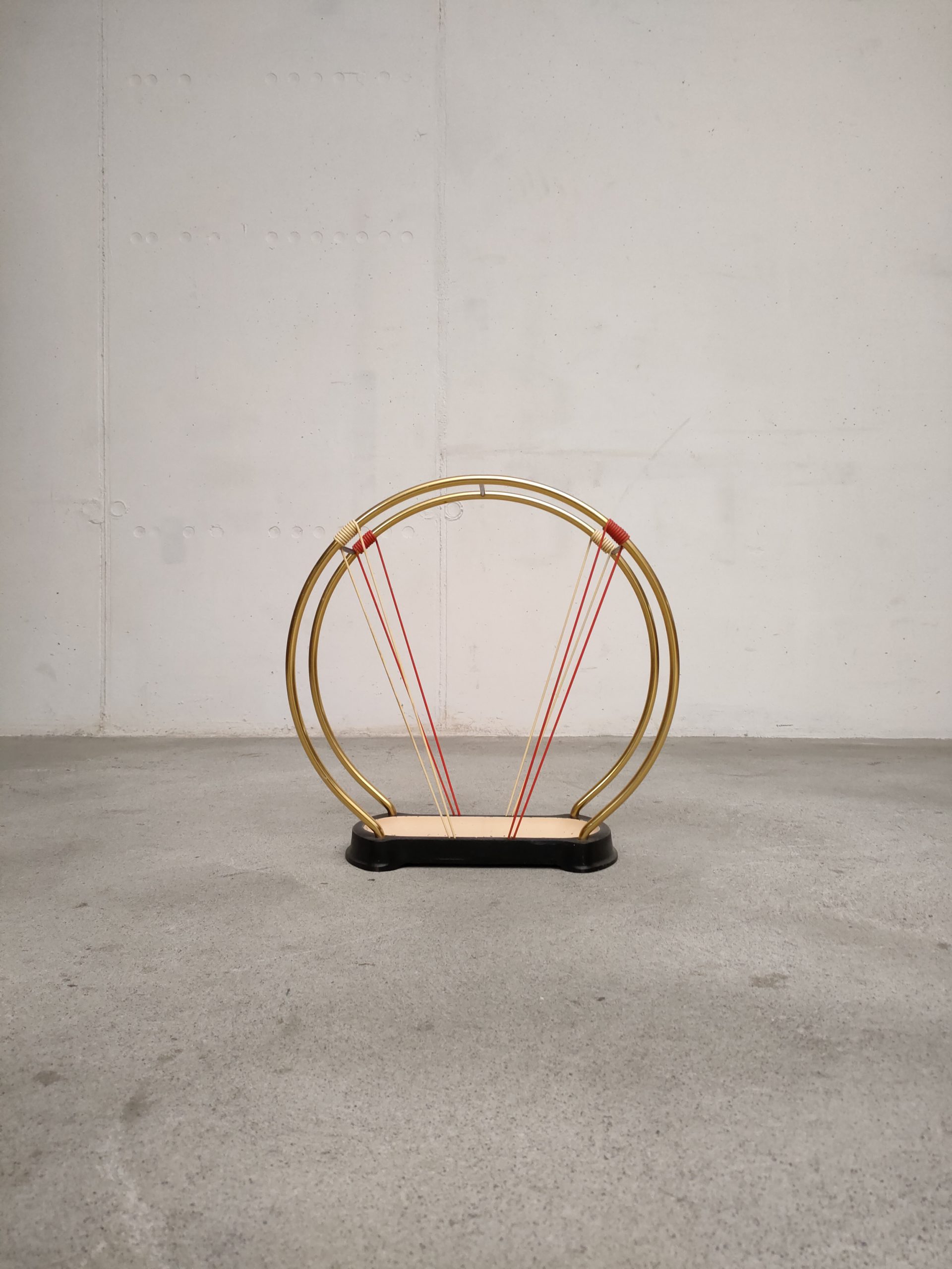 Produit venduRare porte-parapluies rond en métal doré, scoubidou et piétement en fonte des années 50.